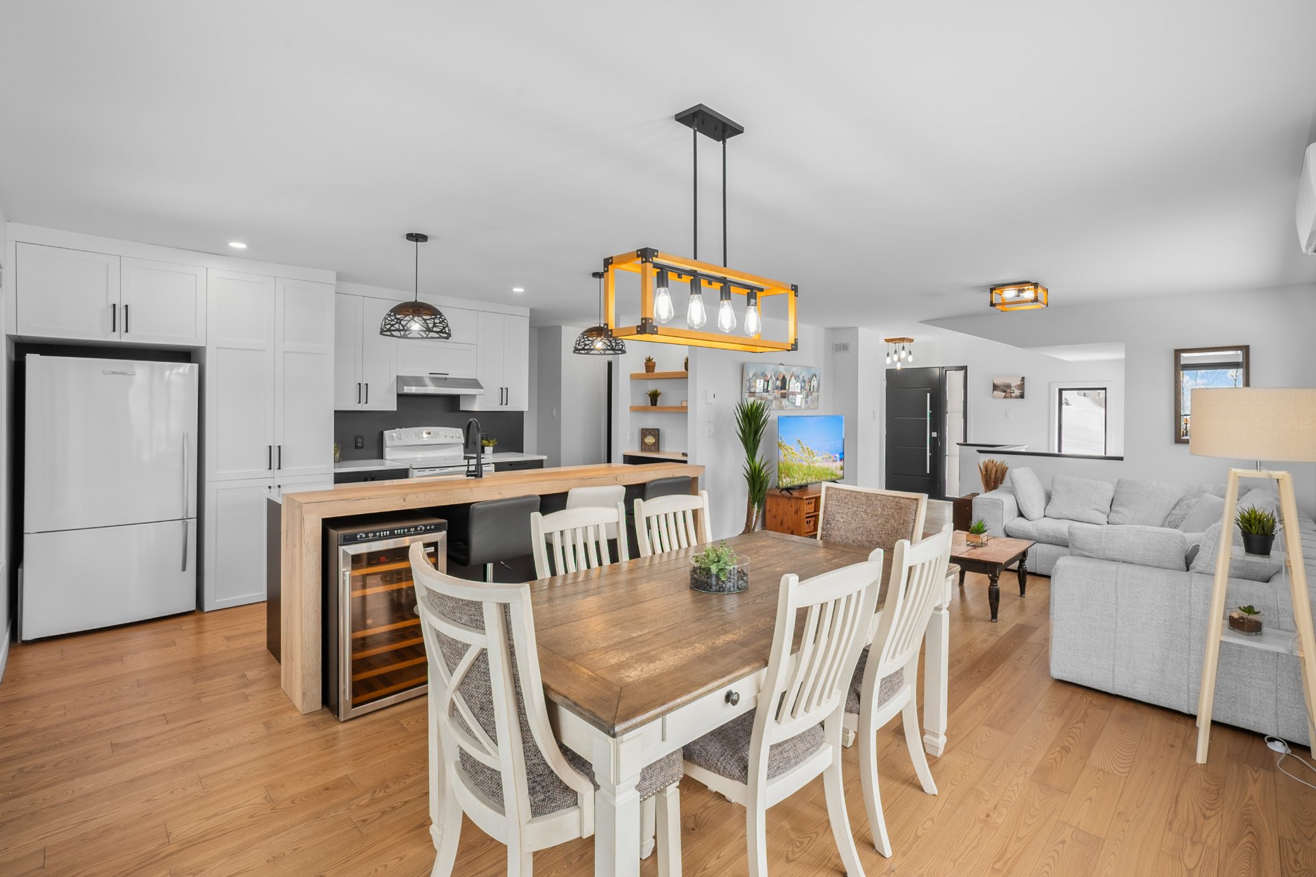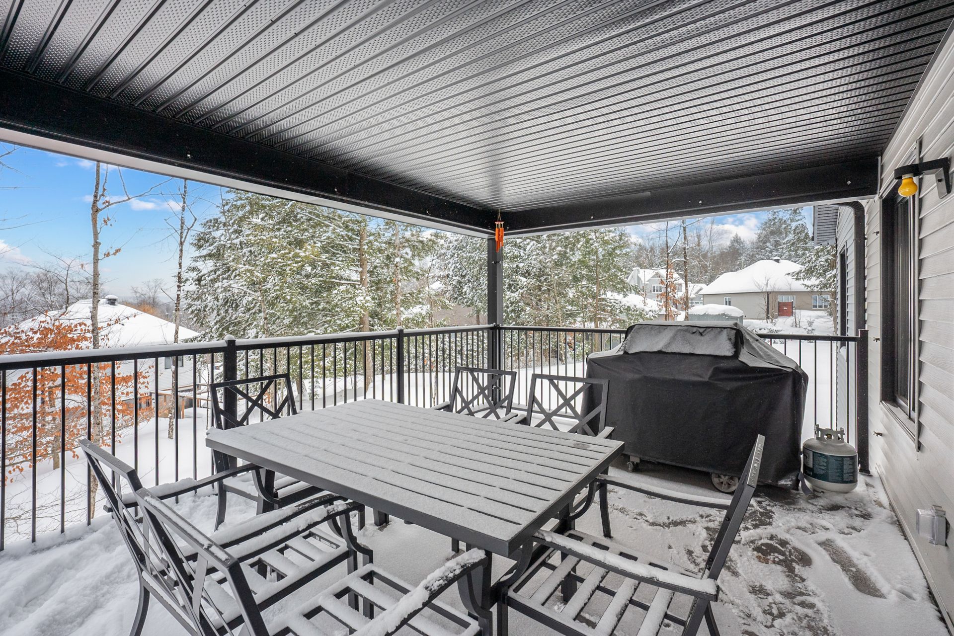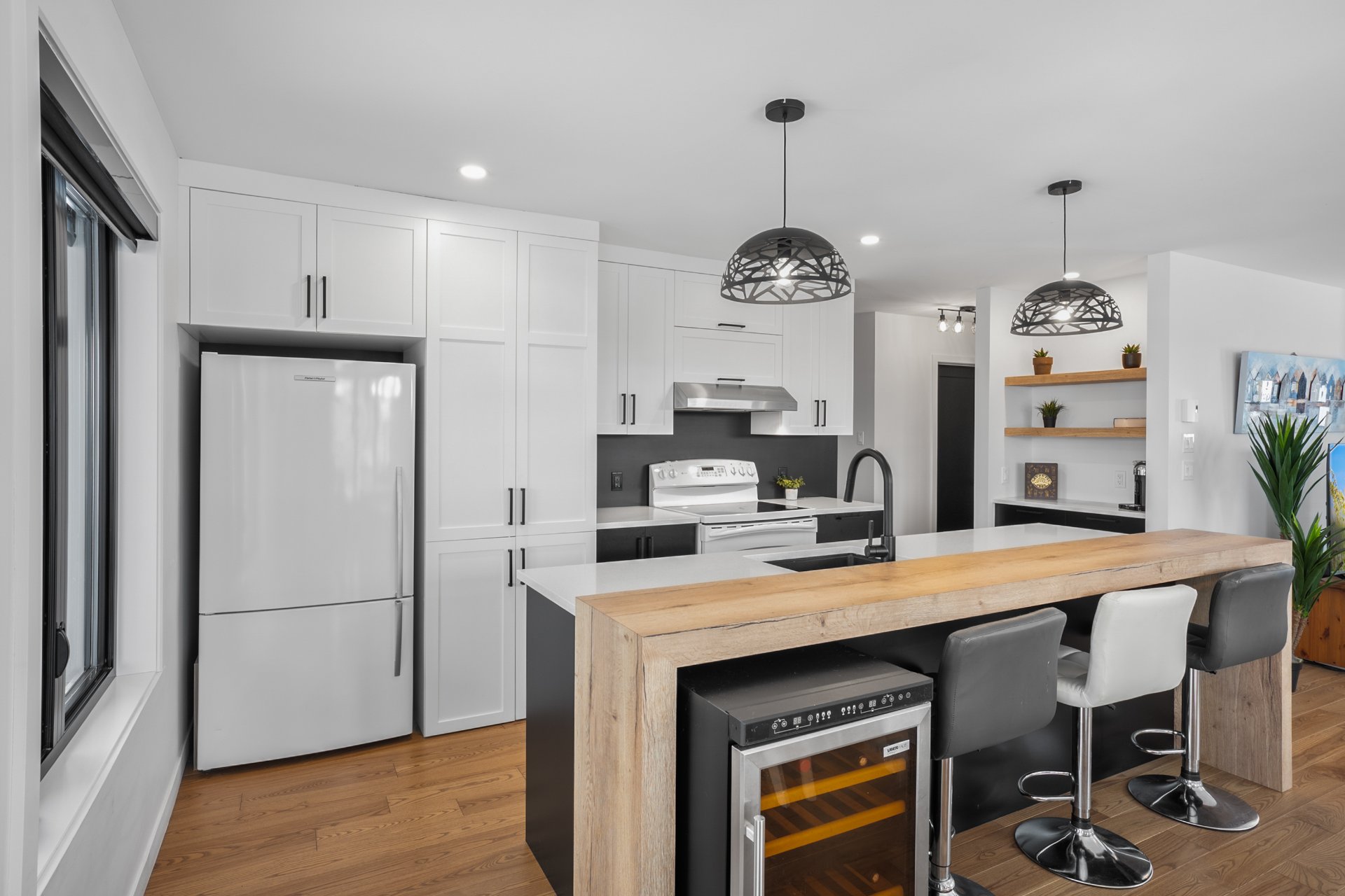 - Réfrigérateur (Ficher Paykel), Cuisinière (Profile), Lave-vaisselle (Blomberg), laveuse et sécheuse (Electrolux), luminaires, tous les stores dont 3 motorisés (salon, salle à manger et chambre principale), moustiquaires/rideaux pour patio, porte moustiquaire pour porte avant, aspirateur central et ses accessoires, échangeur d'air, balançoire extérieure, thermopompe murale, détecteur de radon numérique.