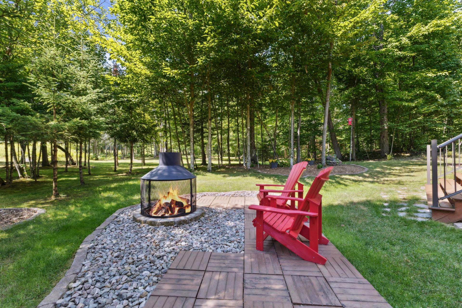 - 3 endroits pour relaxer un avec abri soleil, un avec foyer extérieur et un autre pour relaxer près du lac