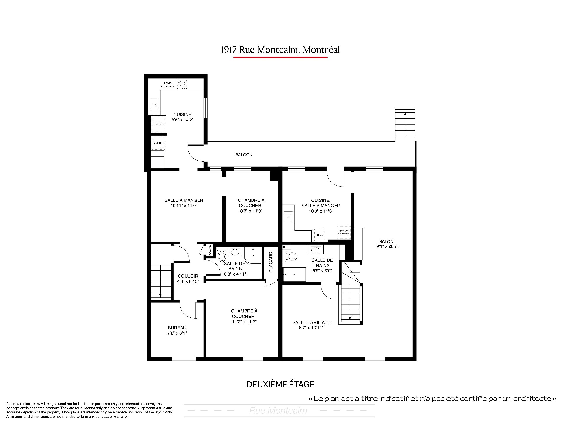 - 1915 rue Montcalm (2e étage): Un spacieux logement de deux chambres, cuisine rénovée, plus un bureau, parfait pour le télétravail ou pour les petites familles.