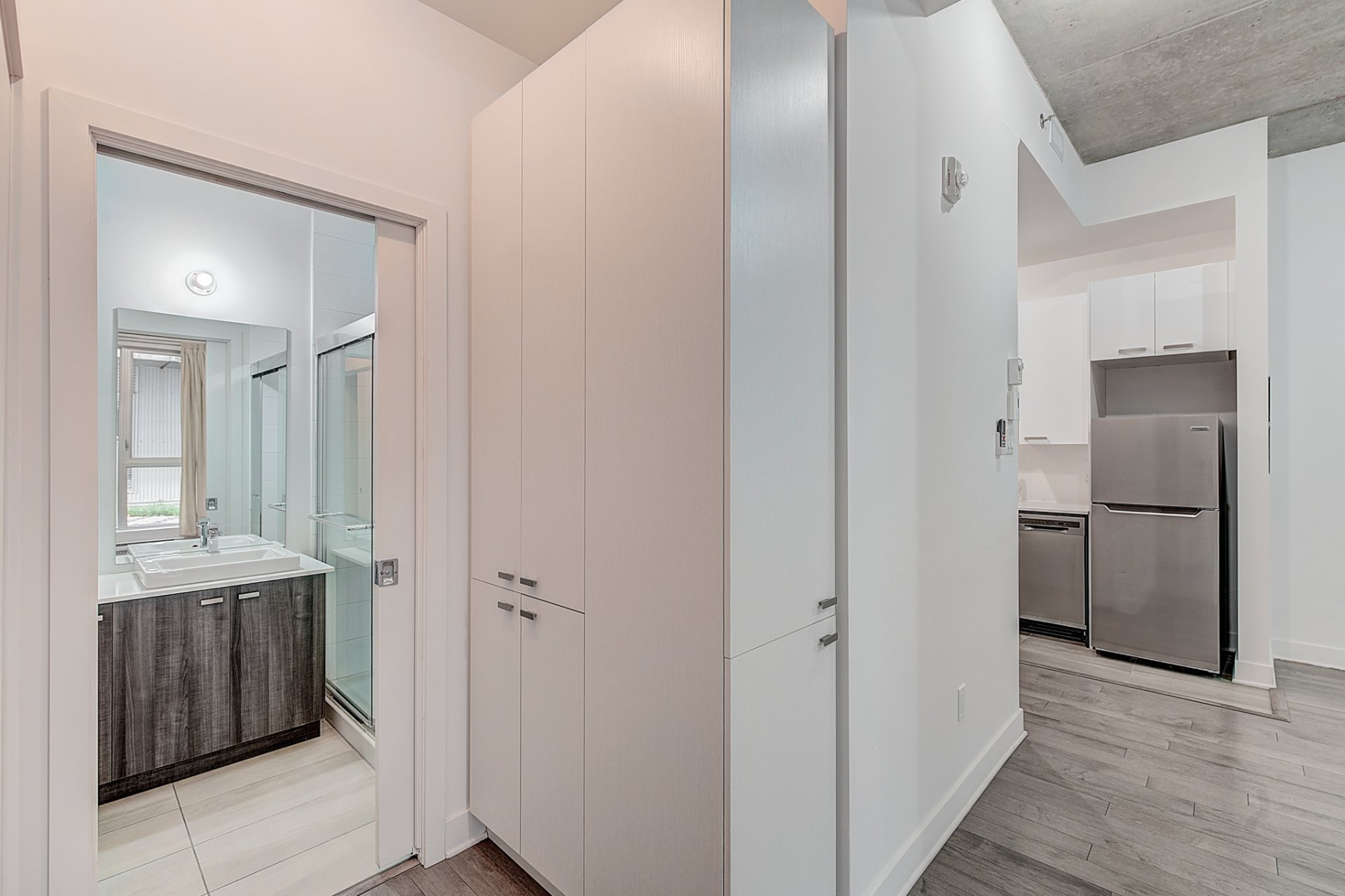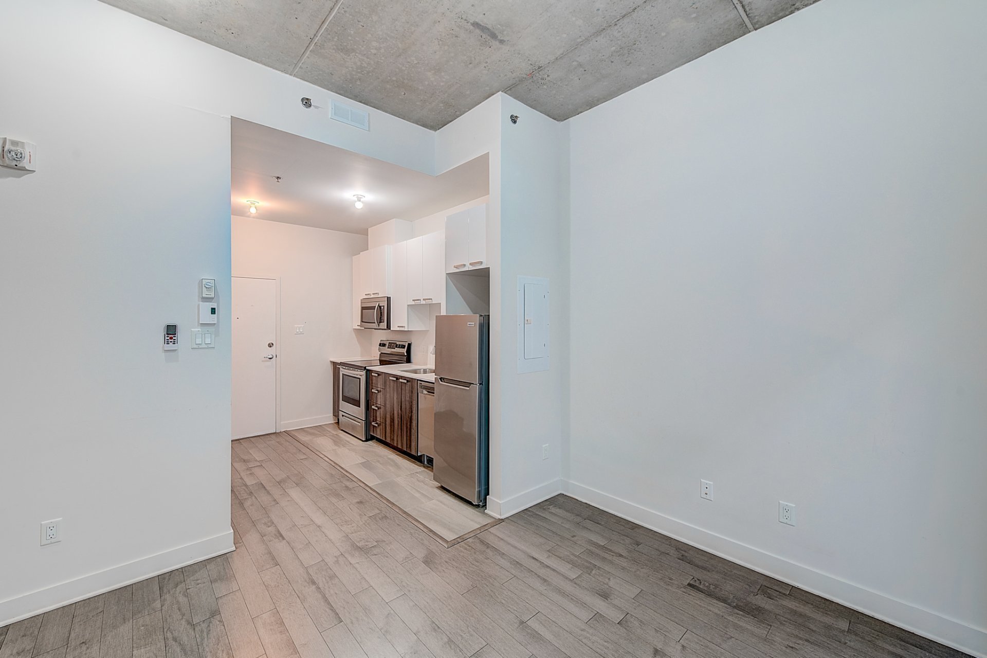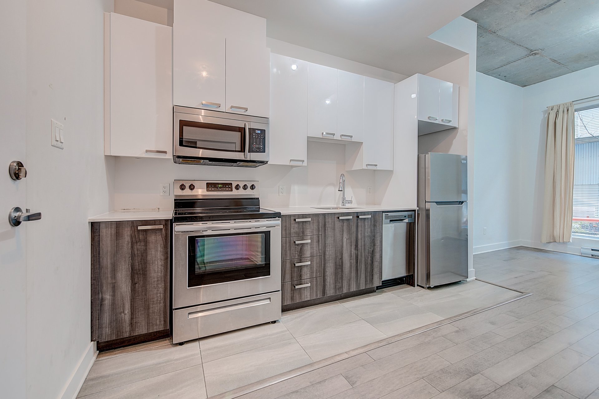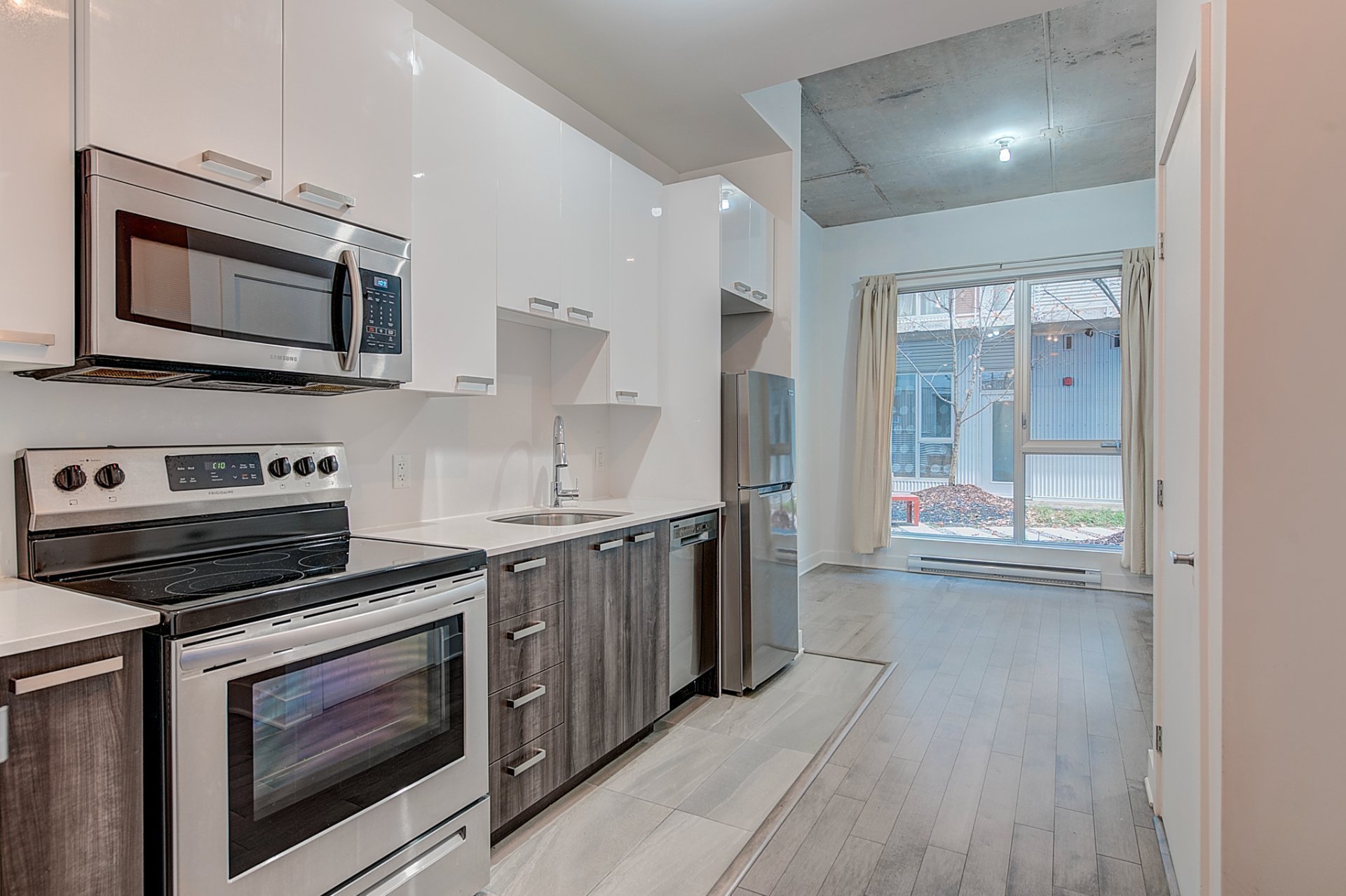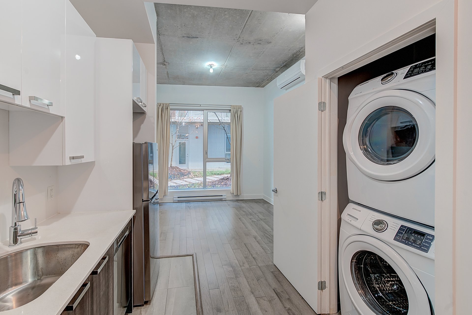 - Micro-ondes, frigo, poêle, lave-vaisselle, air climatisé murale, laveuse et sécheuse, rideaux, eau chaude, terrasse communautaire.