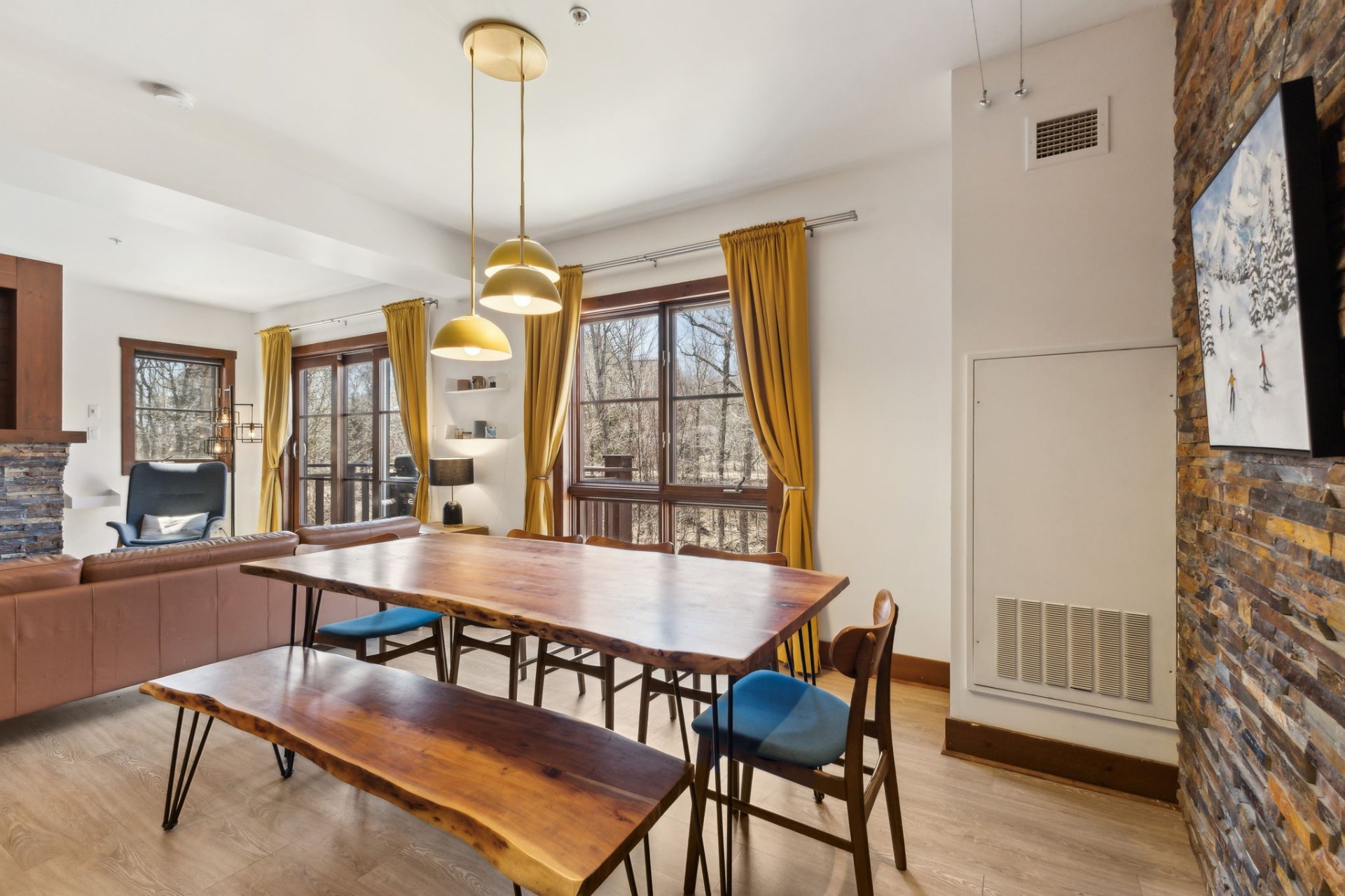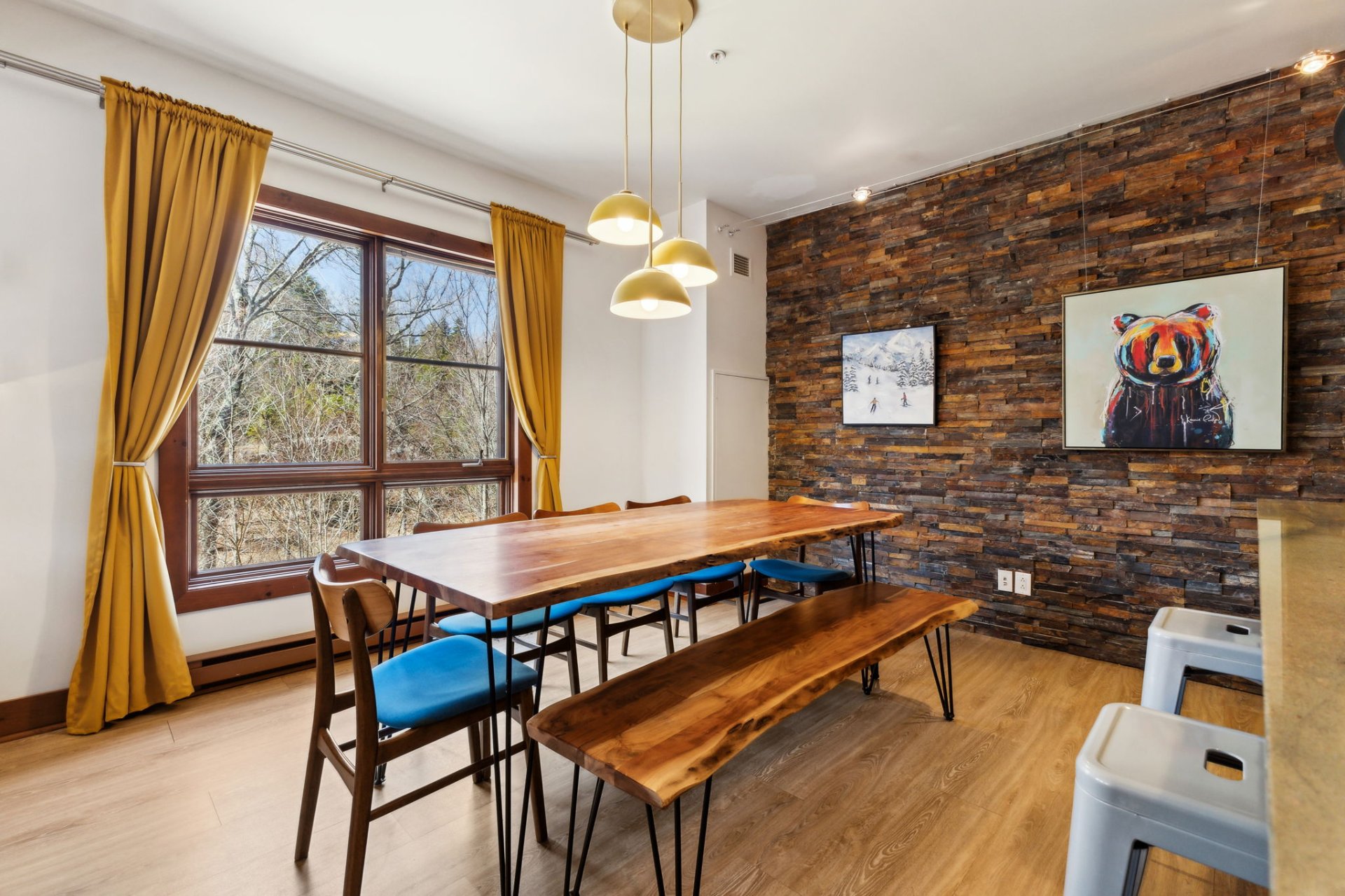 Étoile du Matin -- Magnifique condo entièrement rénové sur 2 étages, comprenant 3 chambres, 2 salles de bains et 1 salle d'eau. Situé à la base du Versant Soleil, profitez d'un emplacement exceptionnel avec accès ski-in/ski-out. Cette unité offre une entrée privée, un mudroom pratique, un grand balcon, un stationnement souterrain, ainsi que des commodités recherchées. Vivez le luxe, le confort et un accès direct aux pistes pour une expérience de villégiature incomparable!