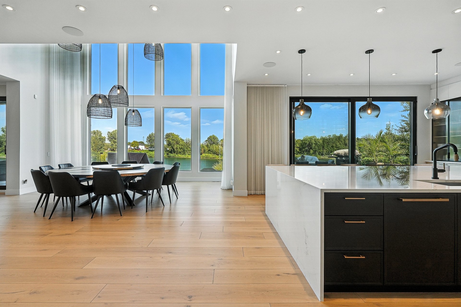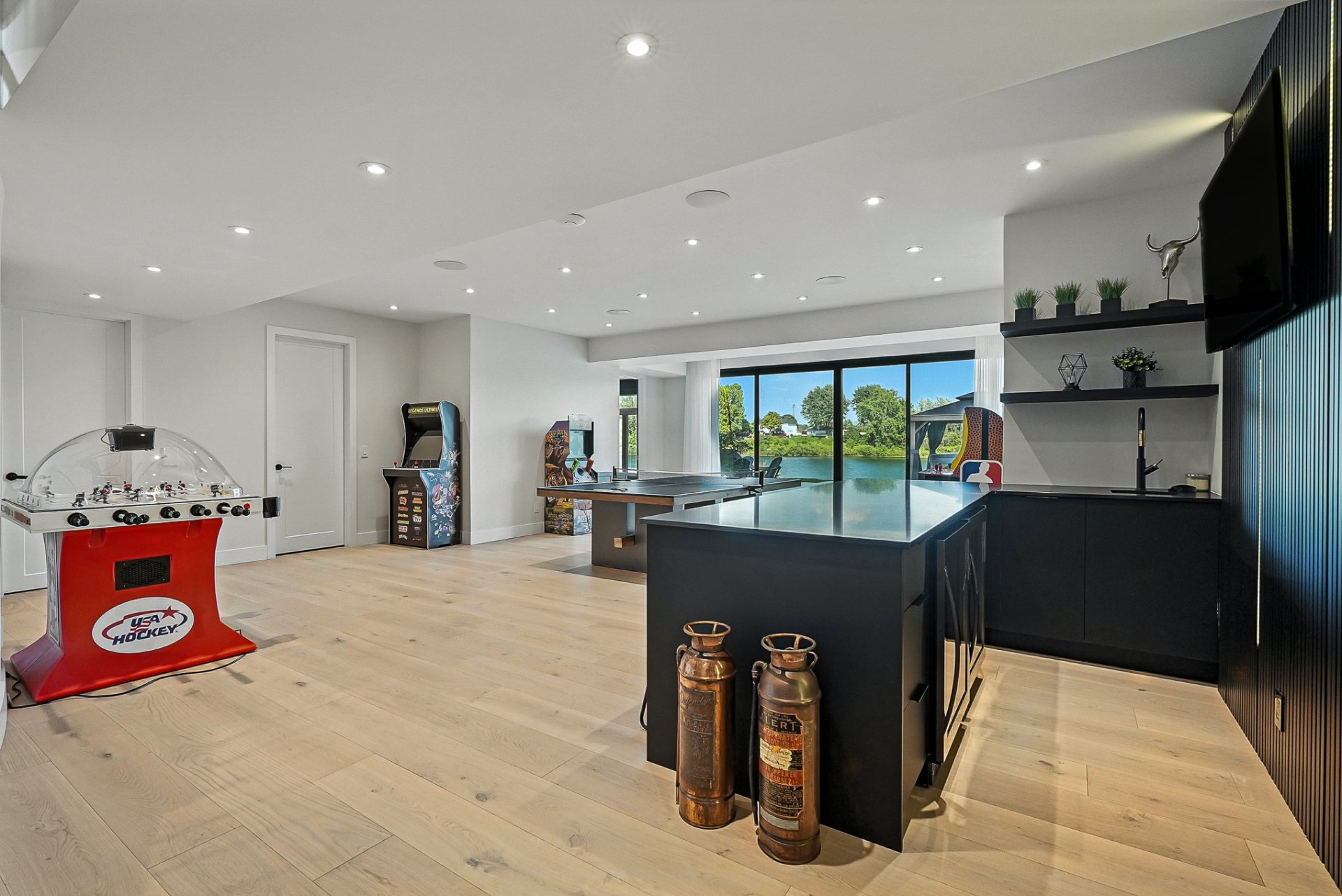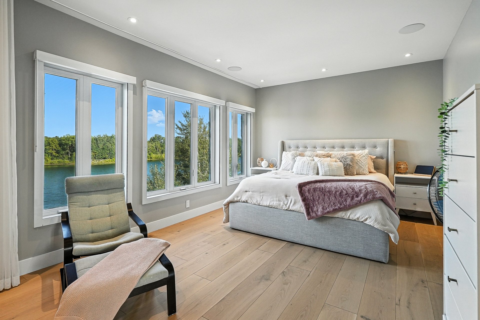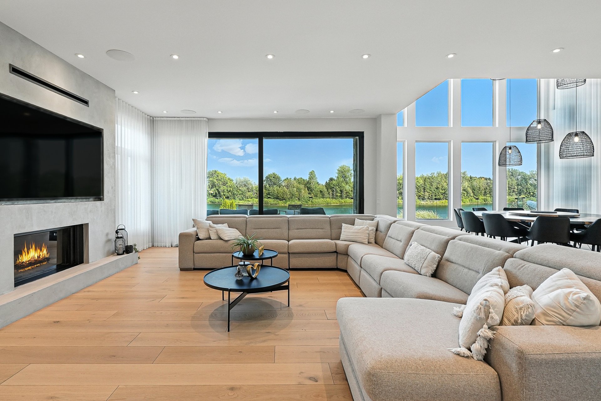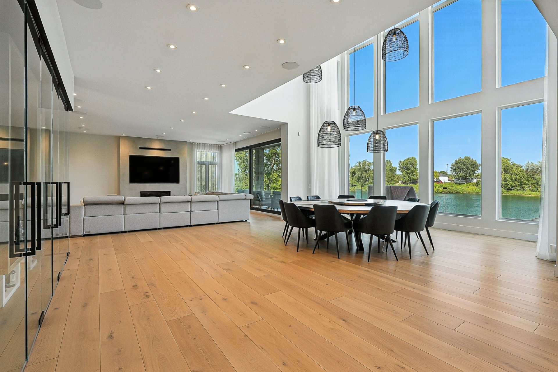 Offrez-vous un cadre de vie privilégié dans cette propriété située au coeur de Blainville-sur-le-Lac, en bordure du lac. Dès l'entrée, un hall lumineux avec de grandes portes vitrées mène à un escalier en bois desservant les trois niveaux de la maison. Le rez-de-chaussée à aire ouverte est conçu pour la vie de famille et les réceptions. On y retrouve un salon avec foyer au bois donnant sur une terrasse avec vue sur le lac, une salle à manger aux fenêtres de 30 pieds avec cellier intégré, ainsi qu'une cuisine fonctionnelle équipée d'électroménagers intégrés, pot filler, doubles éviers, garde-manger walk-in et porte-patio de 16 pieds menant à une seconde terrasse. Un bureau avec rangements, une salle d'eau et une salle de lavage complètent ce niveau. À l'étage, une passerelle surplombant la salle à manger mène aux chambres. La suite principale comprend un walk-in, une salle de bains avec vue sur l'eau et un balcon privé. Deux autres chambres partagent une salle de bains, et une pièce vitrée polyvalente -- actuellement un gym -- peut servir de bureau ou d'espace créatif. Le rez-de-jardin propose une grande salle familiale avec bar, une salle de cinéma maison et trois chambres supplémentaires, dont deux avec walk-in et salle de bains attenante. À l'extérieur, la cour comprend une piscine creusée, un spa, un cabanon, un quai privé et un accès direct au lac sur un terrain de plus de 30 000 pi². Un garage triple avec plancher en époxy, de nombreux rangements, un vaste stationnement, un système d'irrigation, une borne de recharge, le chauffage au gaz naturel et des planchers chauffants complètent l'ensemble. La propriété a bénéficié de plusieurs rénovations au fil des ans. À proximité des écoles, garderies, parcs, transports et axes routiers, cette résidence combine confort et qualité de vie.