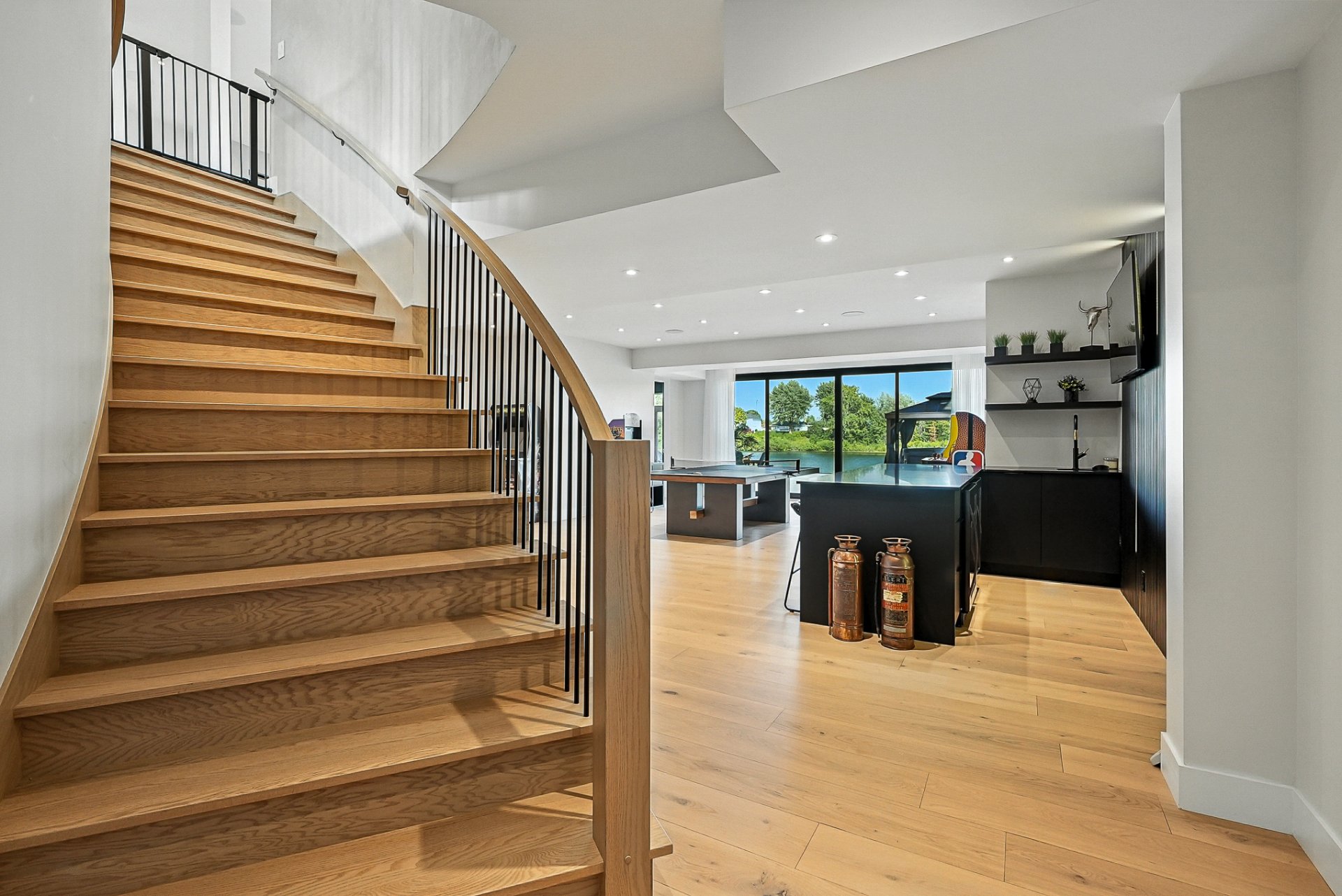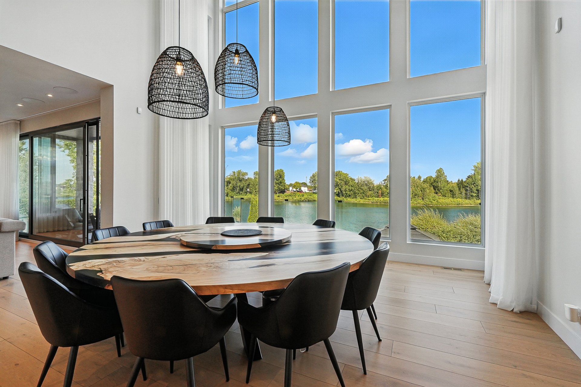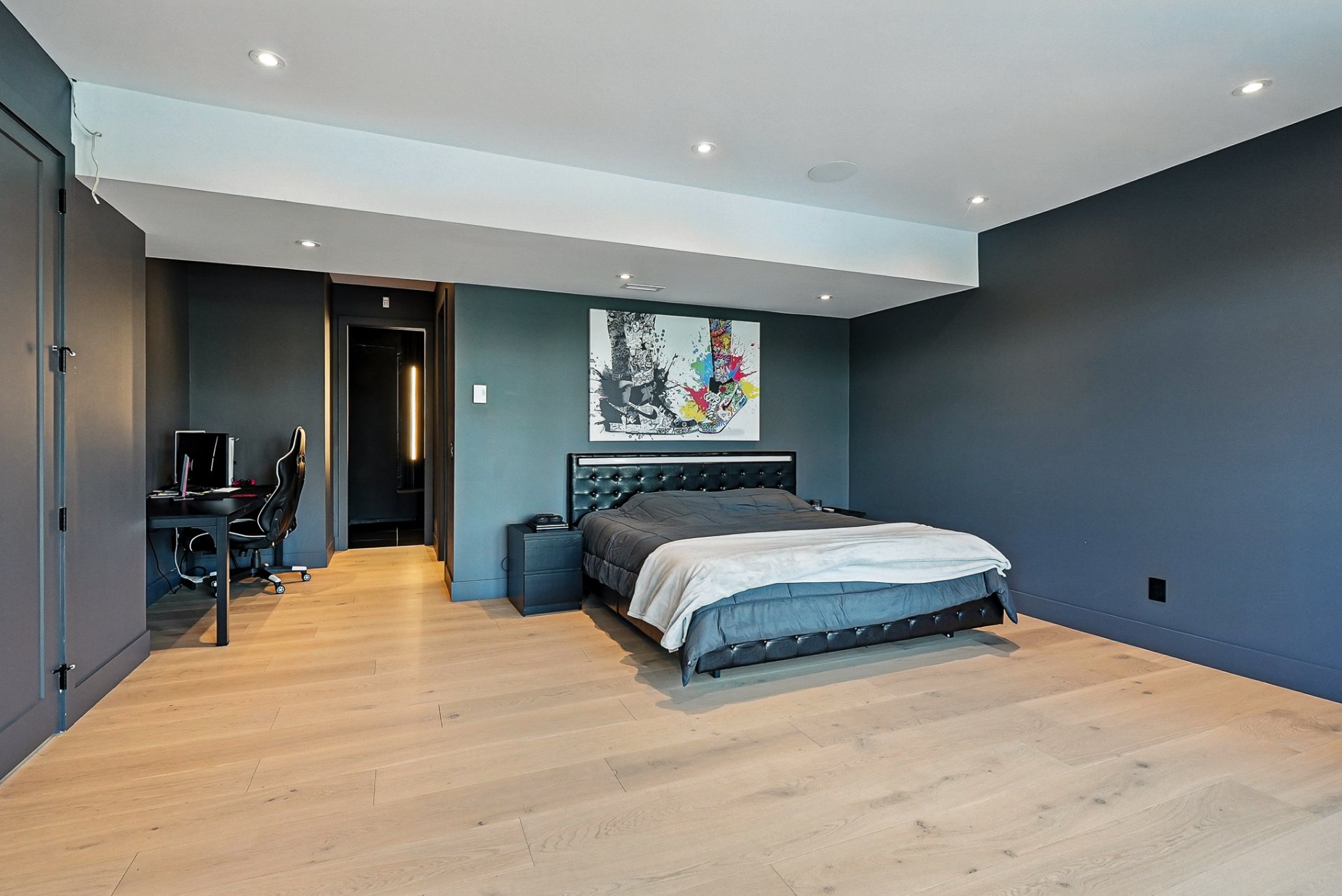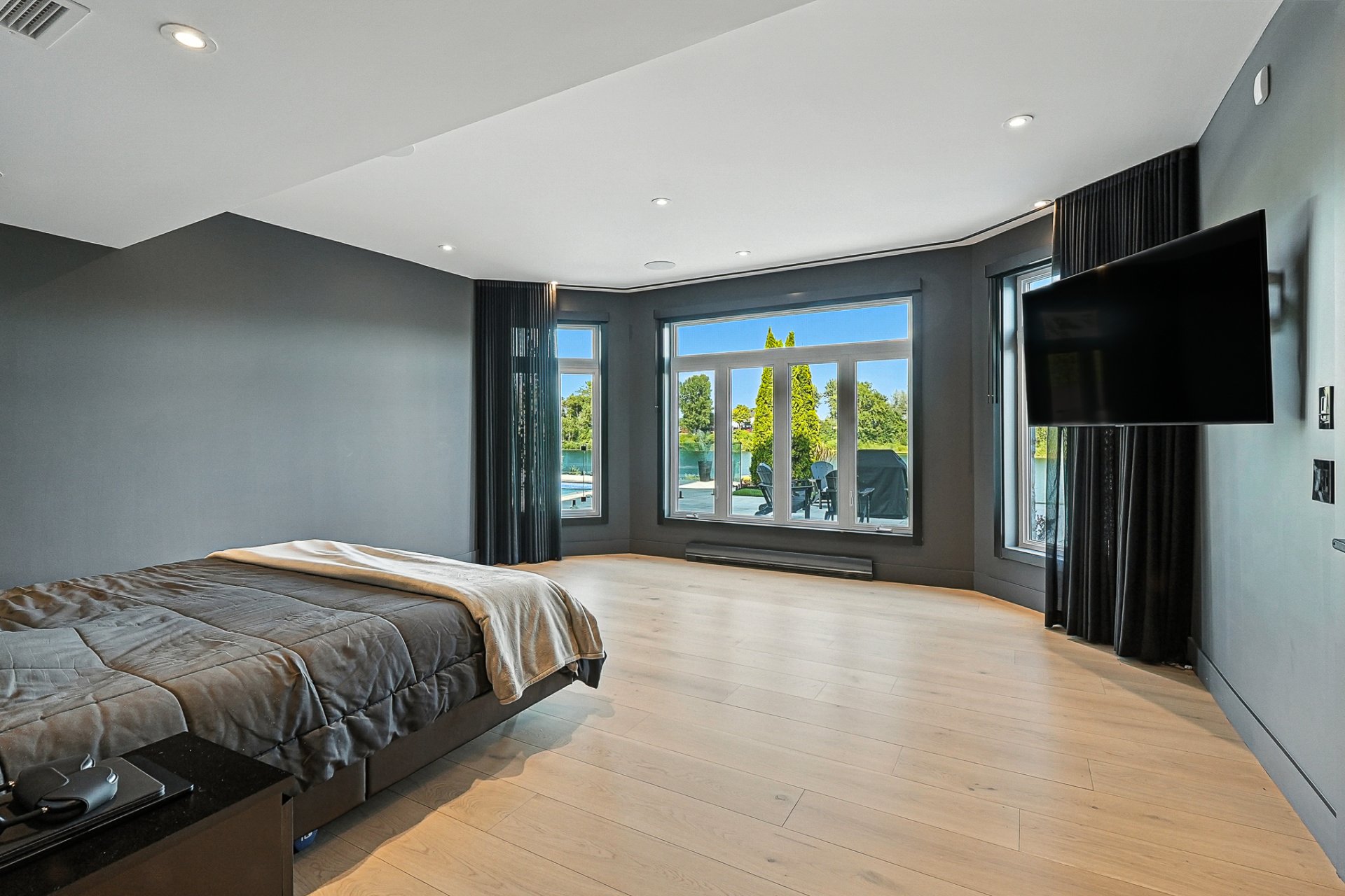 Offrez-vous un cadre de vie privilégié dans cette propriété située au coeur de Blainville-sur-le-Lac, en bordure du lac. Dès l'entrée, un hall lumineux avec de grandes portes vitrées mène à un escalier en bois desservant les trois niveaux de la maison. Le rez-de-chaussée à aire ouverte est conçu pour la vie de famille et les réceptions. On y retrouve un salon avec foyer au bois donnant sur une terrasse avec vue sur le lac, une salle à manger aux fenêtres de 30 pieds avec cellier intégré, ainsi qu'une cuisine fonctionnelle équipée d'électroménagers intégrés, pot filler, doubles éviers, garde-manger walk-in et porte-patio de 16 pieds menant à une seconde terrasse. Un bureau avec rangements, une salle d'eau et une salle de lavage complètent ce niveau. À l'étage, une passerelle surplombant la salle à manger mène aux chambres. La suite principale comprend un walk-in, une salle de bains avec vue sur l'eau et un balcon privé. Deux autres chambres partagent une salle de bains, et une pièce vitrée polyvalente -- actuellement un gym -- peut servir de bureau ou d'espace créatif. Le rez-de-jardin propose une grande salle familiale avec bar, une salle de cinéma maison et trois chambres supplémentaires, dont deux avec walk-in et salle de bains attenante. À l'extérieur, la cour comprend une piscine creusée, un spa, un cabanon, un quai privé et un accès direct au lac sur un terrain de plus de 30 000 pi². Un garage triple avec plancher en époxy, de nombreux rangements, un vaste stationnement, un système d'irrigation, une borne de recharge, le chauffage au gaz naturel et des planchers chauffants complètent l'ensemble. La propriété a bénéficié de plusieurs rénovations au fil des ans. À proximité des écoles, garderies, parcs, transports et axes routiers, cette résidence combine confort et qualité de vie.