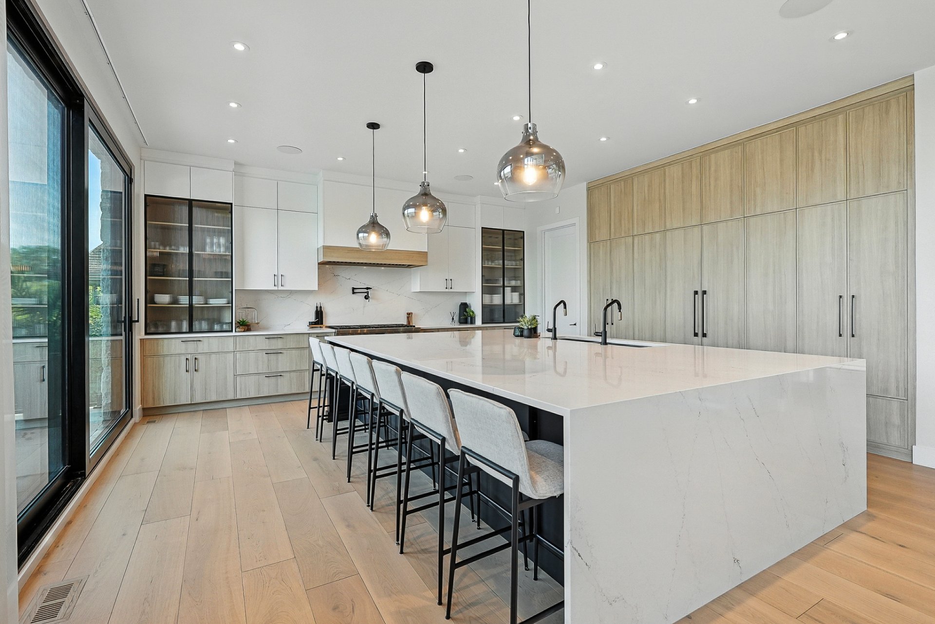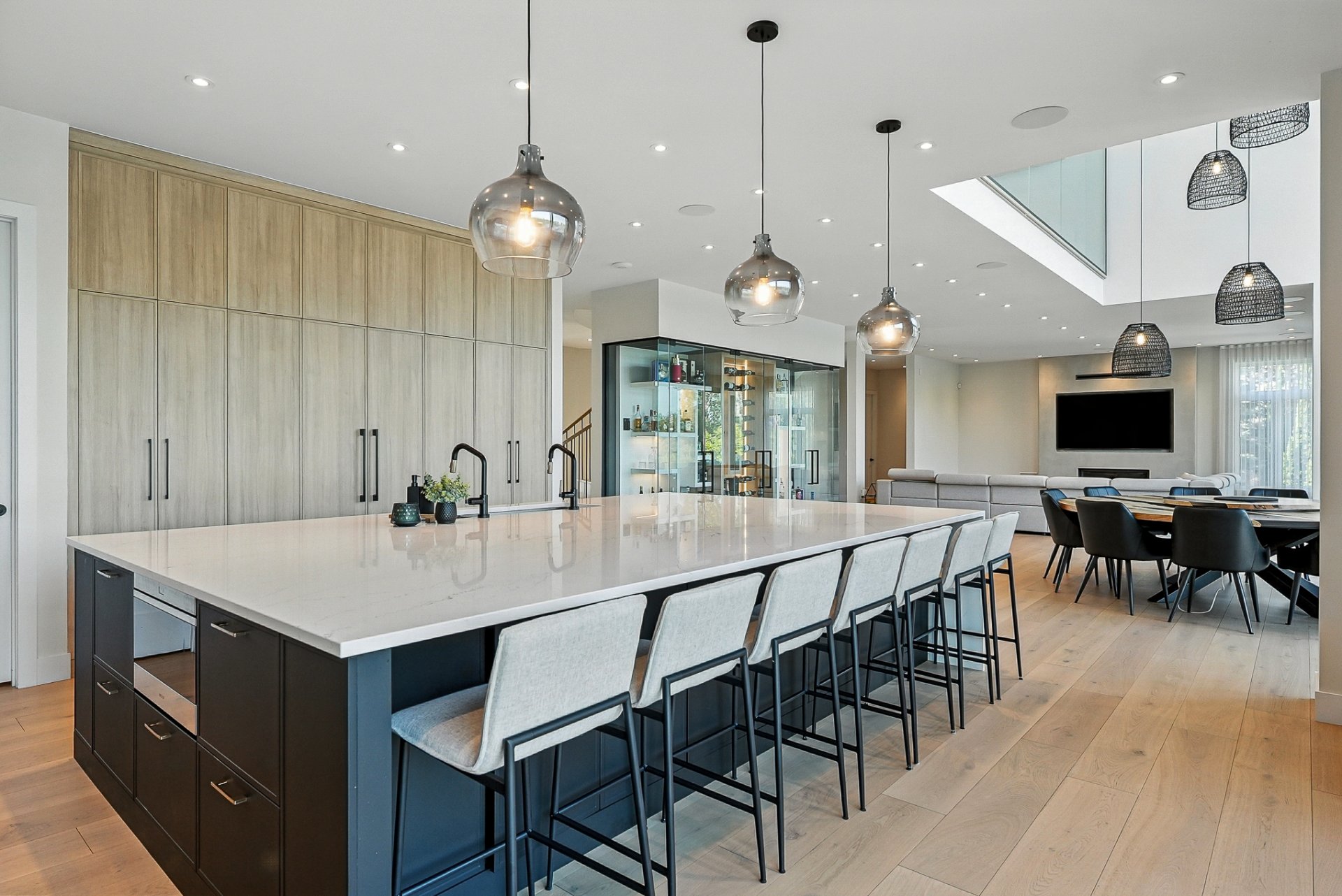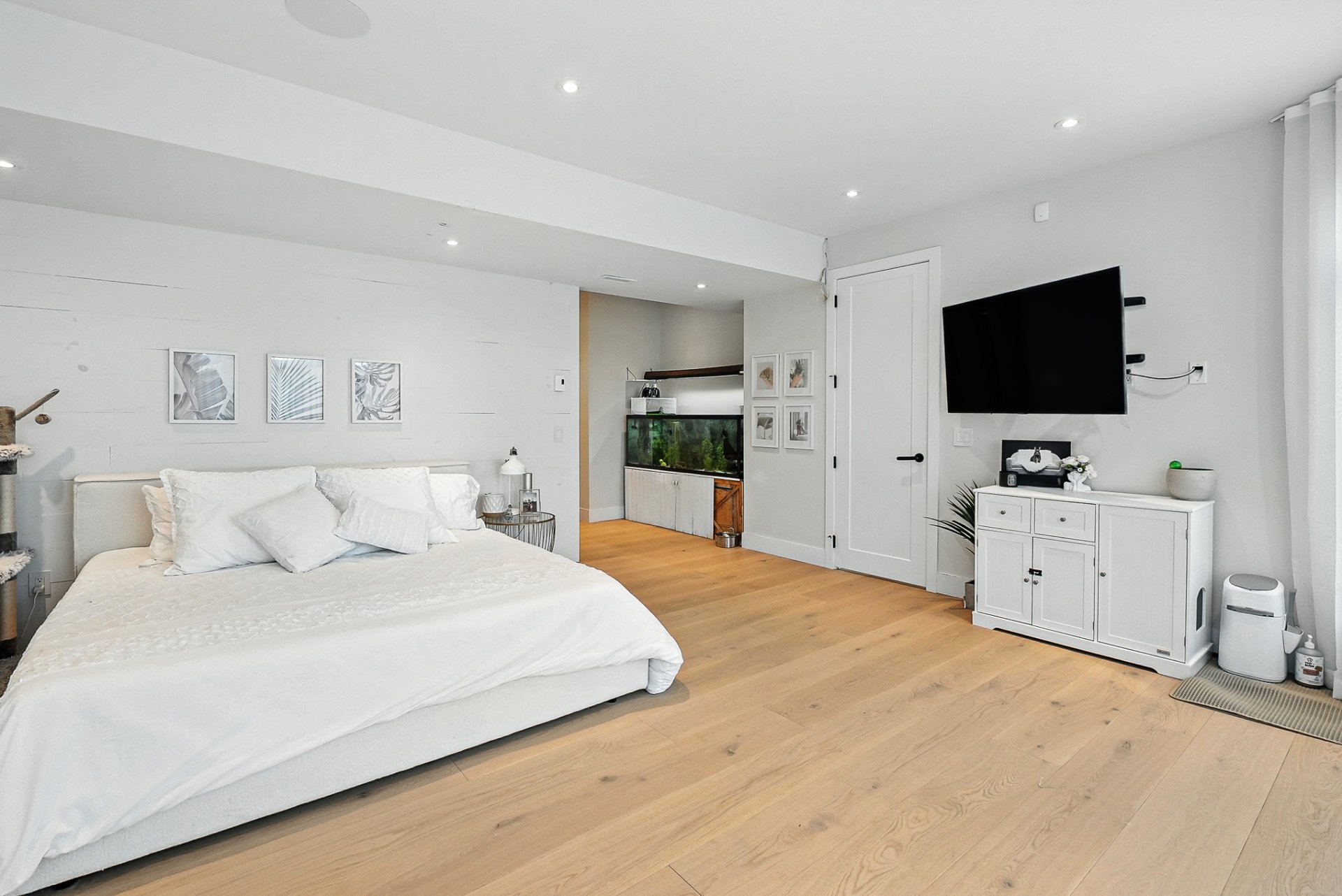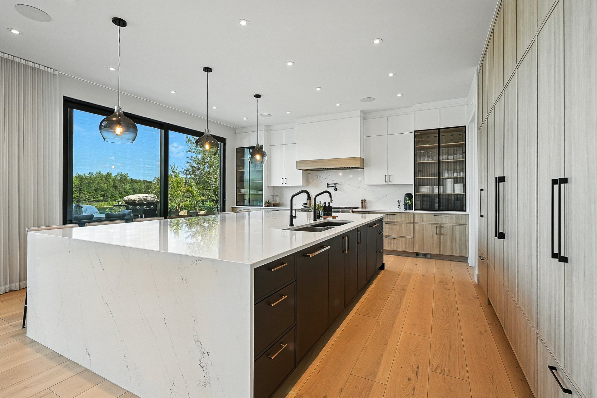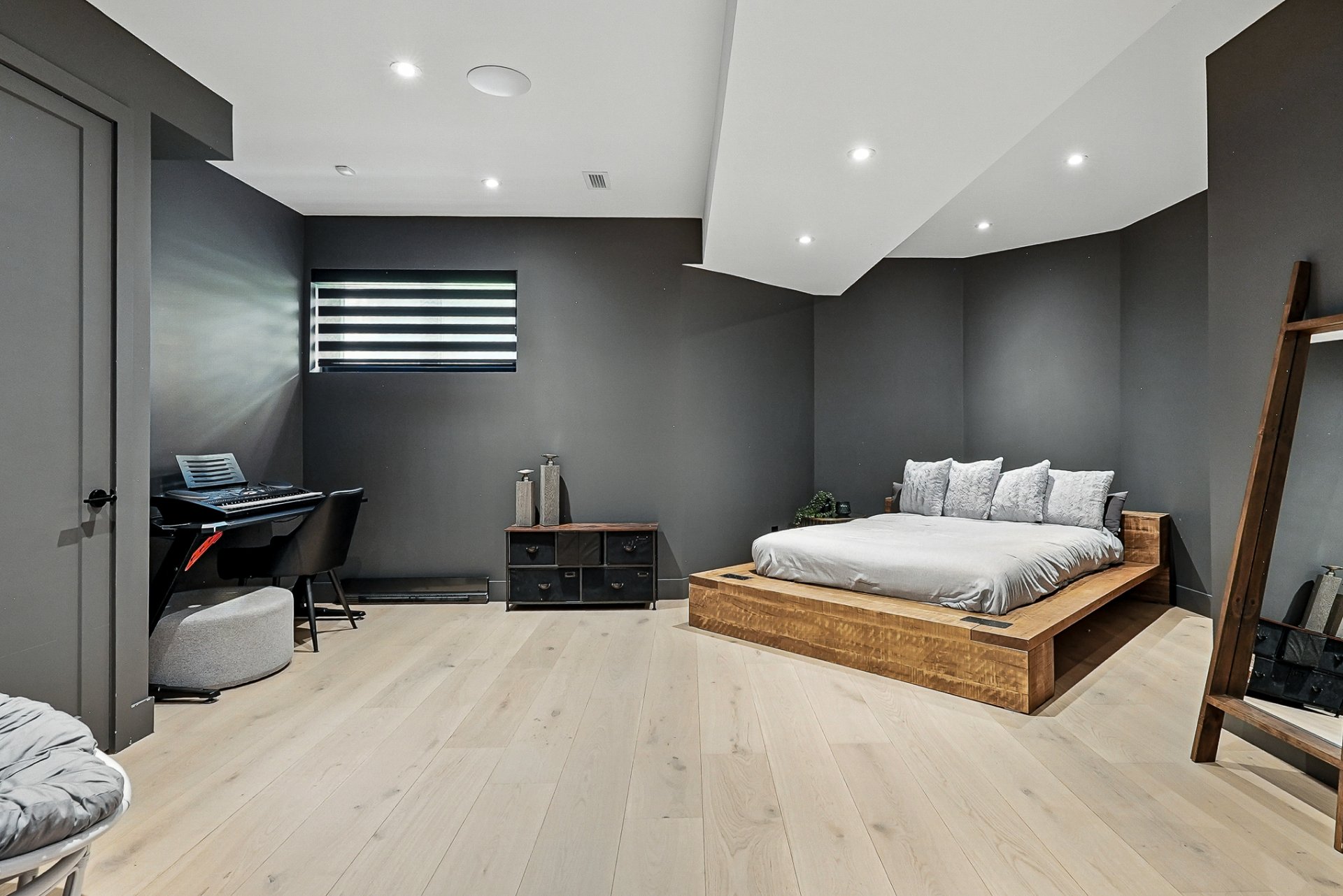 Offrez-vous un cadre de vie privilégié dans cette propriété située au coeur de Blainville-sur-le-Lac, en bordure du lac. Dès l'entrée, un hall lumineux avec de grandes portes vitrées mène à un escalier en bois desservant les trois niveaux de la maison. Le rez-de-chaussée à aire ouverte est conçu pour la vie de famille et les réceptions. On y retrouve un salon avec foyer au bois donnant sur une terrasse avec vue sur le lac, une salle à manger aux fenêtres de 30 pieds avec cellier intégré, ainsi qu'une cuisine fonctionnelle équipée d'électroménagers intégrés, pot filler, doubles éviers, garde-manger walk-in et porte-patio de 16 pieds menant à une seconde terrasse. Un bureau avec rangements, une salle d'eau et une salle de lavage complètent ce niveau. À l'étage, une passerelle surplombant la salle à manger mène aux chambres. La suite principale comprend un walk-in, une salle de bains avec vue sur l'eau et un balcon privé. Deux autres chambres partagent une salle de bains, et une pièce vitrée polyvalente -- actuellement un gym -- peut servir de bureau ou d'espace créatif. Le rez-de-jardin propose une grande salle familiale avec bar, une salle de cinéma maison et trois chambres supplémentaires, dont deux avec walk-in et salle de bains attenante. À l'extérieur, la cour comprend une piscine creusée, un spa, un cabanon, un quai privé et un accès direct au lac sur un terrain de plus de 30 000 pi². Un garage triple avec plancher en époxy, de nombreux rangements, un vaste stationnement, un système d'irrigation, une borne de recharge, le chauffage au gaz naturel et des planchers chauffants complètent l'ensemble. La propriété a bénéficié de plusieurs rénovations au fil des ans. À proximité des écoles, garderies, parcs, transports et axes routiers, cette résidence combine confort et qualité de vie.
