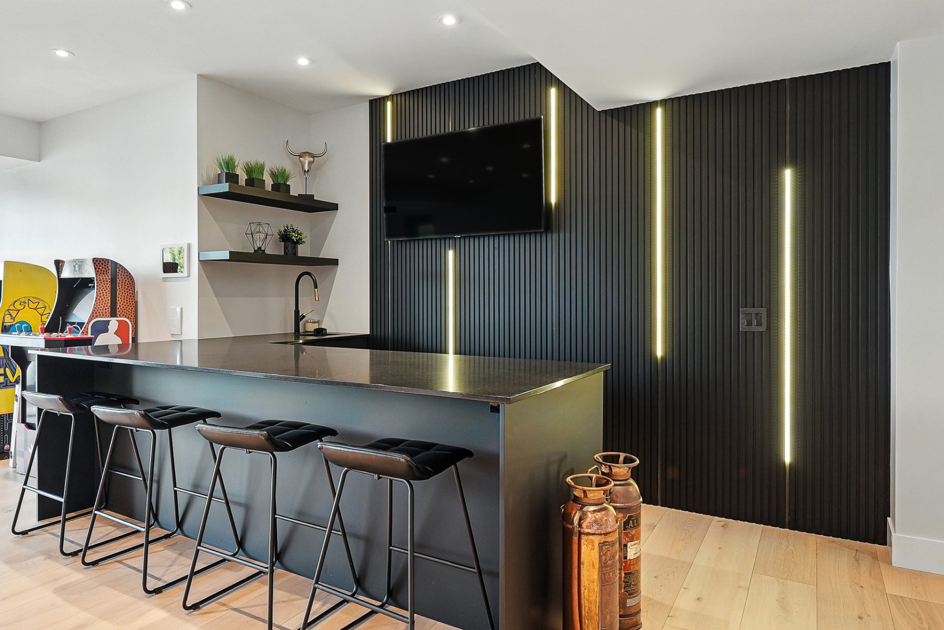 - Fixtures & luminaires, habillage des fenêtres, système domotique, système alarme, piscine et accessoires, tous les électroménagers de la cuisine, système cinéma maison (toile, hauts-parleurs et projecteur), sofas cinéma maison, miroirs, supports à TV, hauts-parleurs intégrés, quai, aspirateur centrale, cabanon, borne de recharge pour voiture.