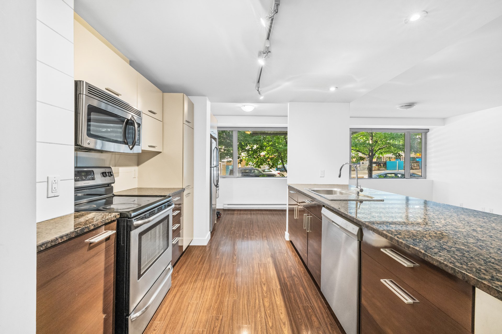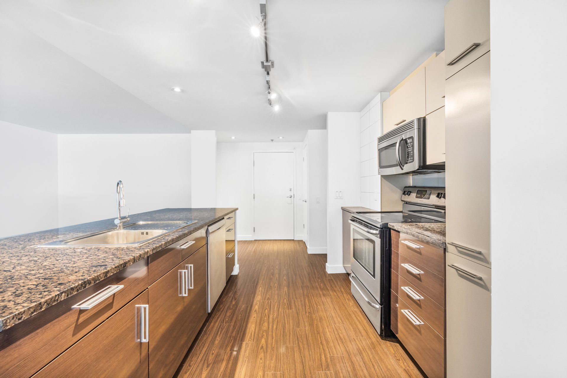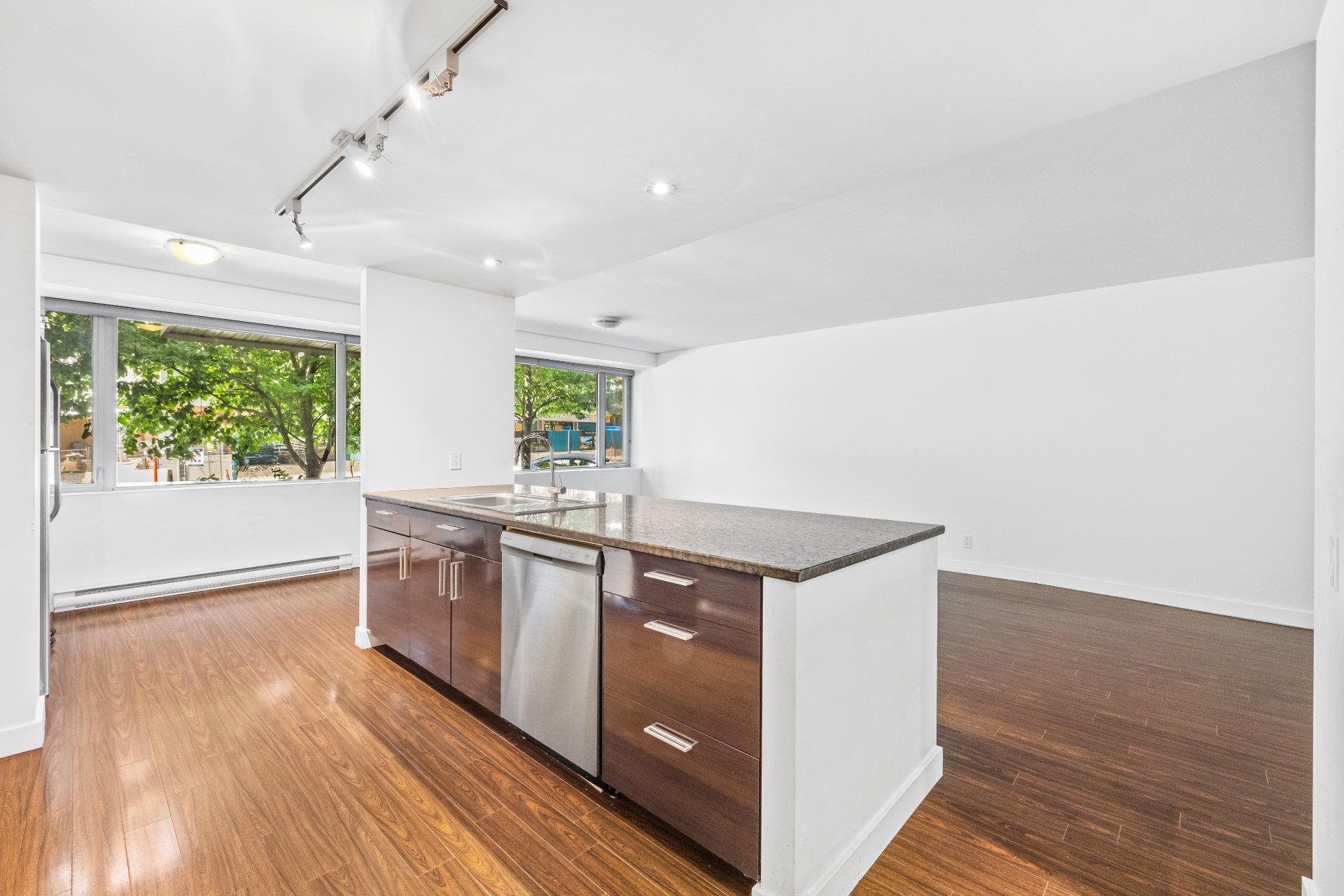 - Inclusions : Eau chaude, électroménagers haut de gamme (réfrigérateur, cuisinière, laveuse, sécheuse, lave-vaisselle), air climatisé central, accès à un gym entièrement équipé, accès saisonnier à la piscine extérieure, et service de portier 24/7 pour un confort accru.