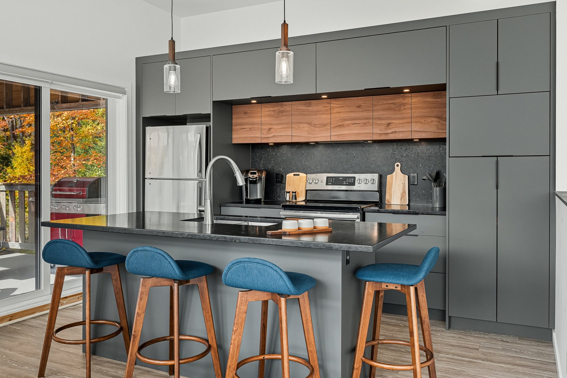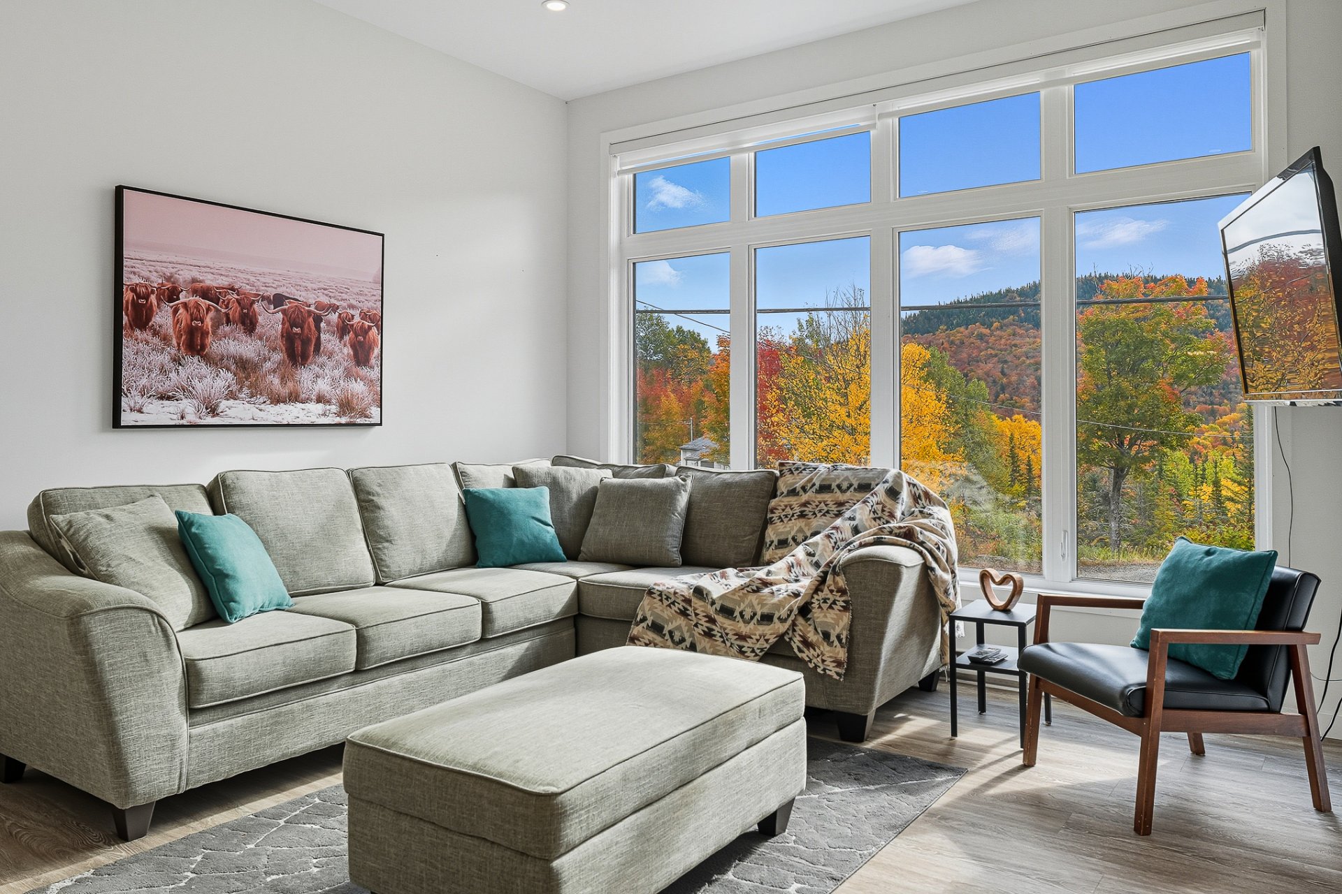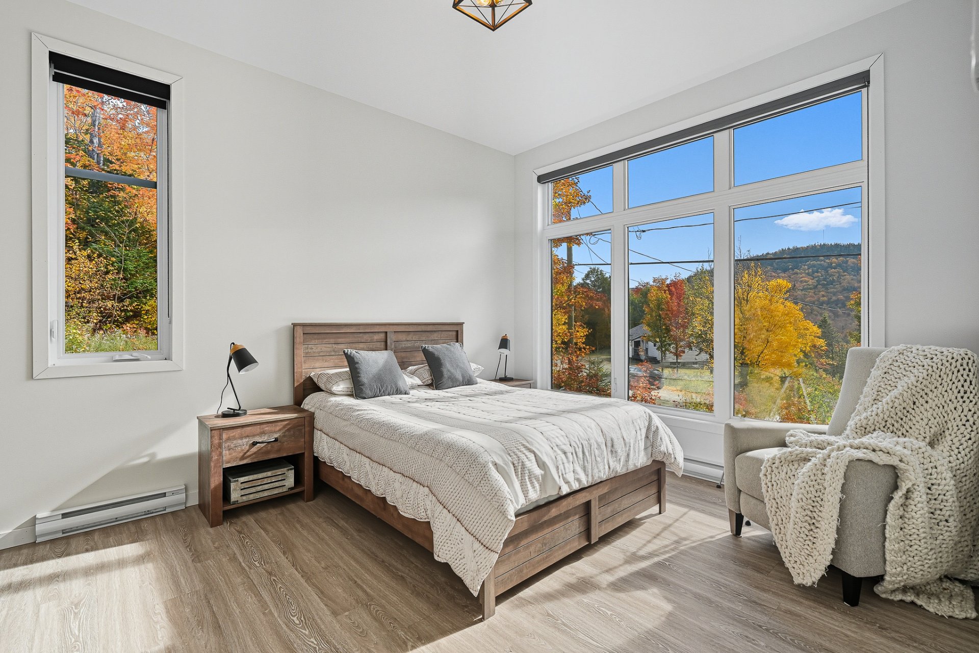 Située au pied des pentes du Massif du Sud, cette magnifique résidence contemporaine offre une expérience unique en toutes saisons. Avec ses plafonds de 10' à l'étage de vie, ses grandes fenêtres panoramiques, son design moderne et chaleureux, sa vaste terrasse couverte et son garage intégré, elle constitue autant une destination de villégiature qu'un investissement clé en main. Idéale pour se ressourcer après une journée de ski, de vélo ou de randonnée, elle est entourée d'un cadre enchanteur où la forêt et la montagne se transforment au fil des saisons. Permis touristique disponible sur demande.