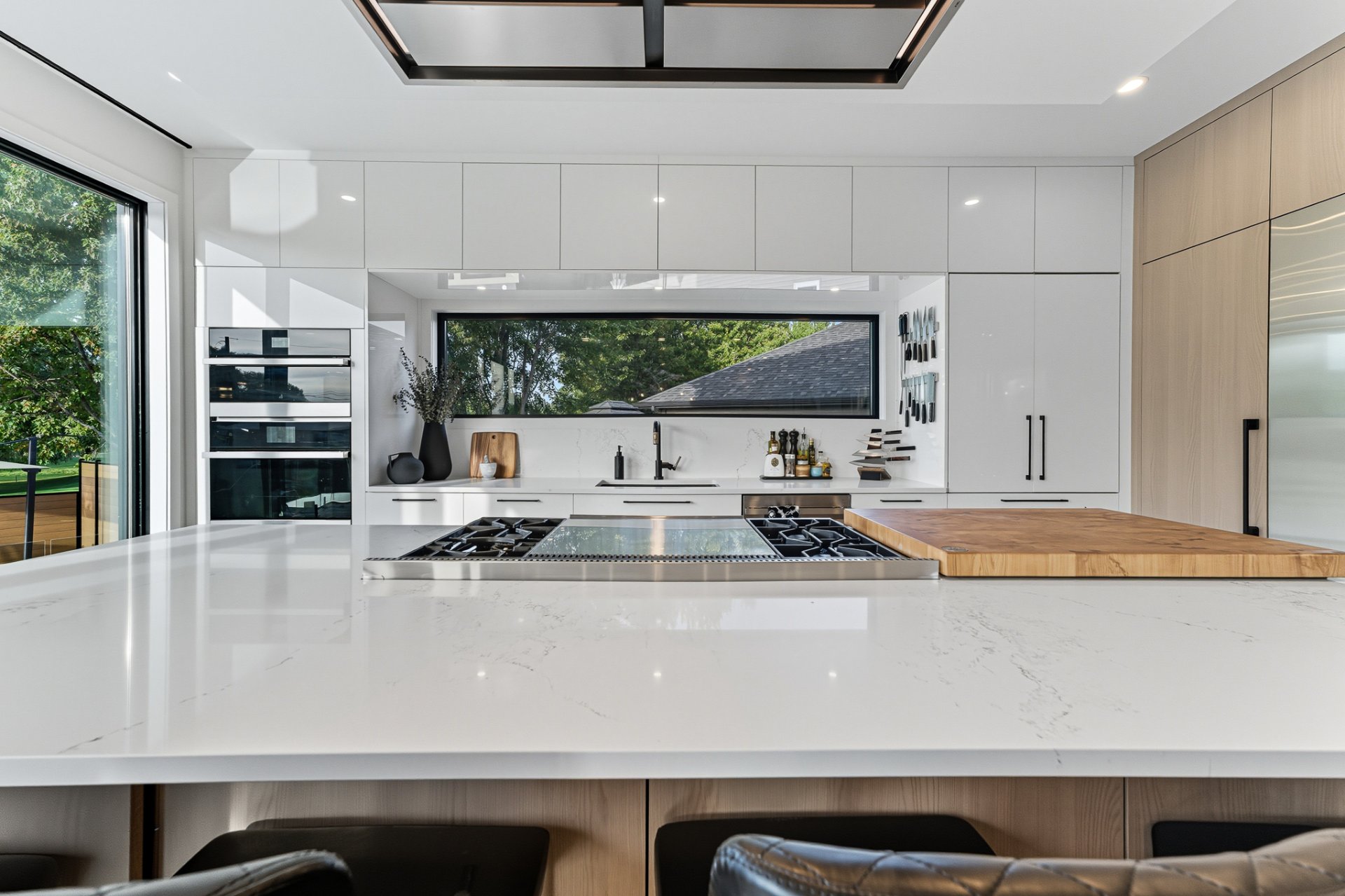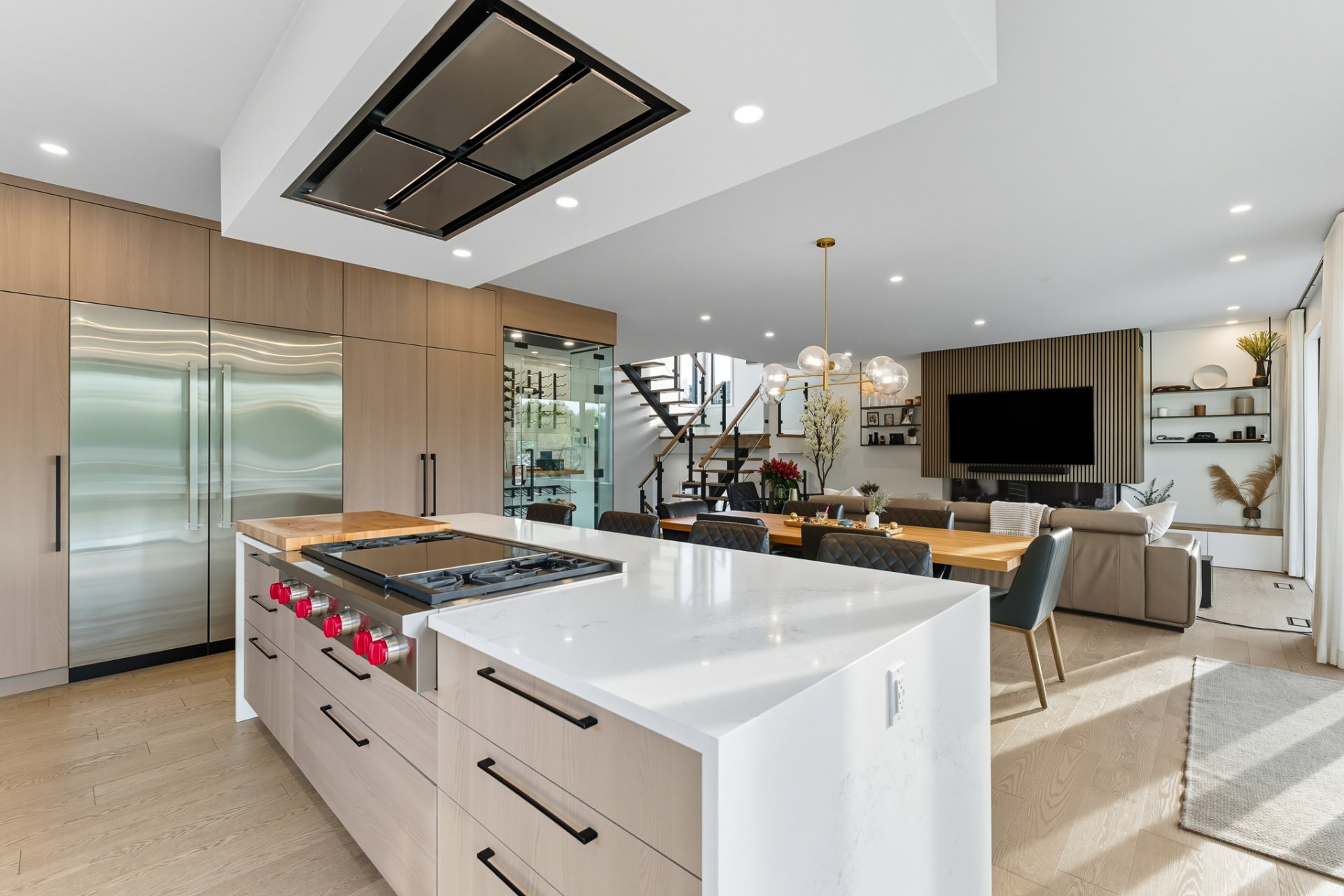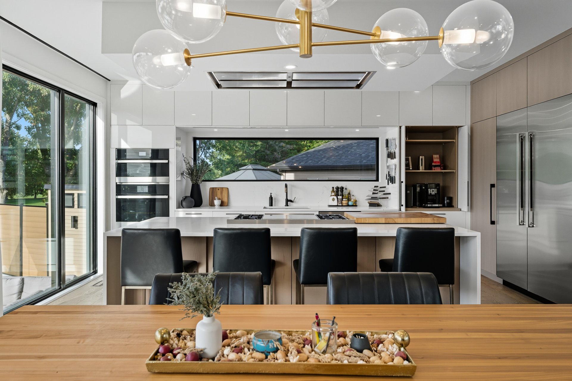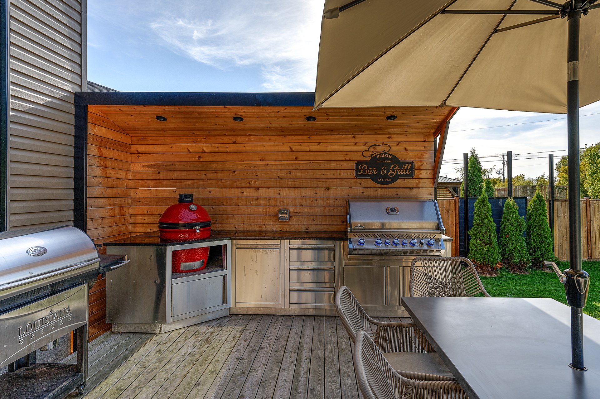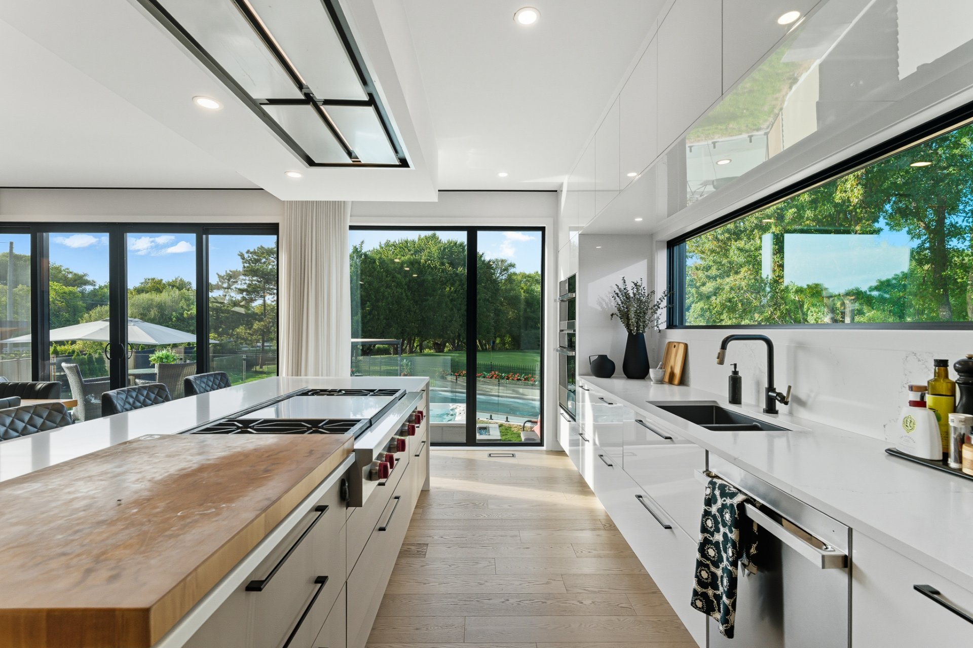 - Réfrigérateur Jenn-Air, cuisinière au gaz Wolf, four encastré Jenn-Air, lave-vaisselle Jenn-Air, micro-ondes/four Jenn-Air, revêtements de fenêtres, toiles et rideaux électriques, fixtures d'éclairage, alarme, aspirateur central et acc., équipements et thermopompe de piscine, ouvre-porte de garage, ameublement de bureau dans CAC au 2ème, foyer électrique Napoléon dans CCP, tous les miroirs du gym, cuisine ext.: meubles et BBQ Napoléon, toutes les plantes ext., pergola.
