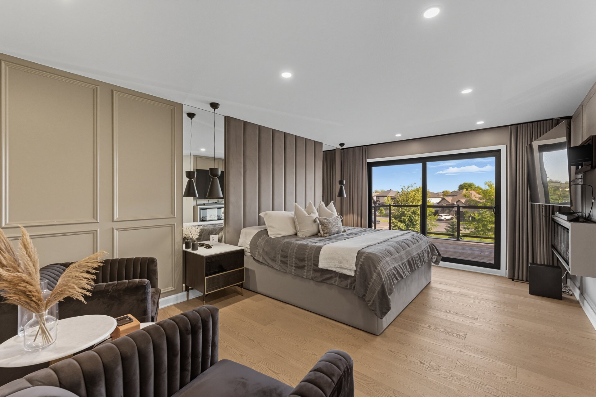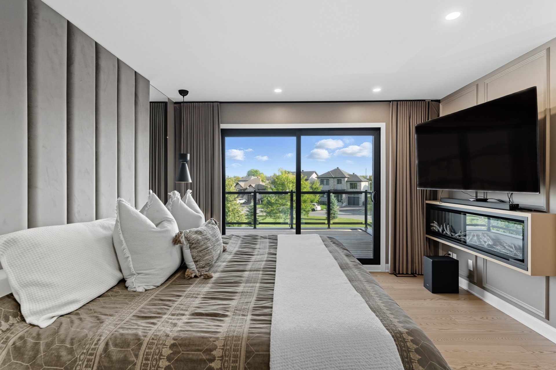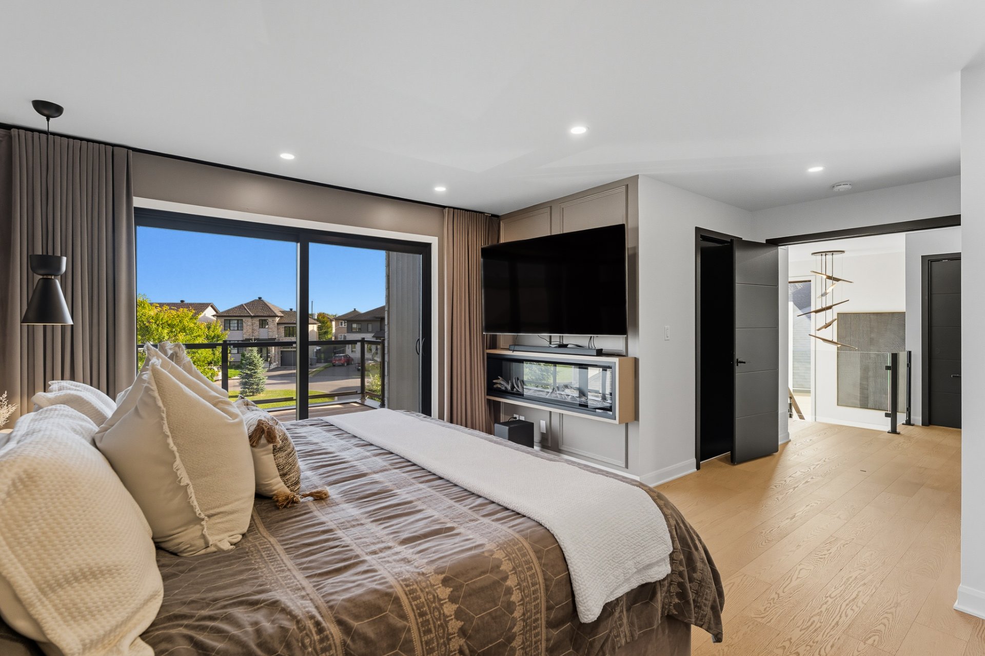 * Foyer électrique de marque Napoleon dans la chambre des maîtres;
