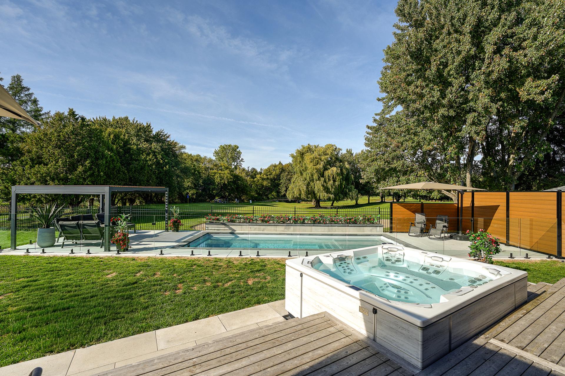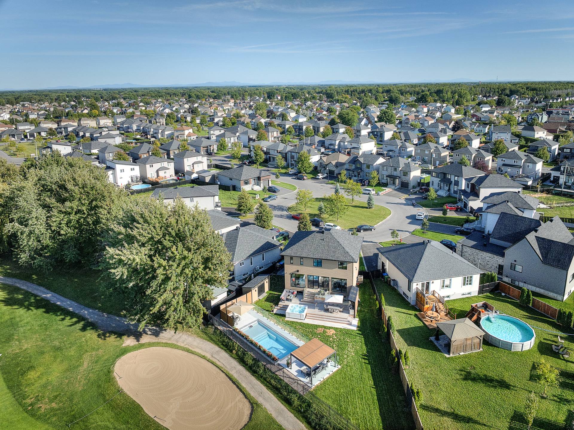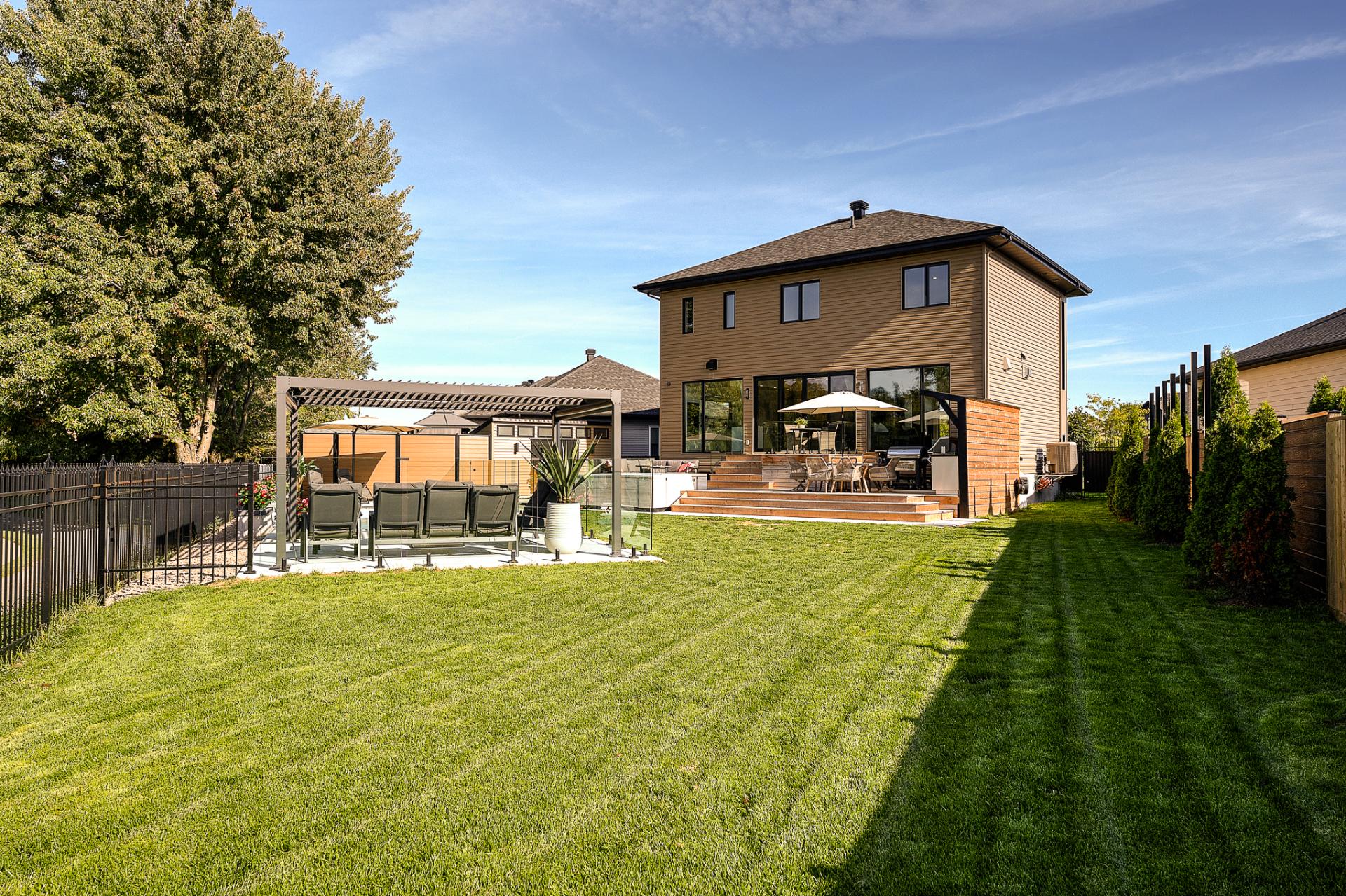Emplacement de choix dans un quartier paisible et familial en plein essor, cette magnifique propriété est adossée au terrain de golf de Saint-Jean . Le rez-de-chaussée à aire ouverte offre une atmosphère invitante et les immenses fenêtres apportent une superbe luminosité et une vue magnifique. La cuisine est équipée d'électros-ménagers hauts-de-gamme, d'un cellier évaporateur pour 40 bouteilles ainsi que d'un ilôt central très convivial. Luxueuse chambre des maîtres avec accès à une terrasse et un grand walk-in adjacent. Le sous-sol est entièrement aménagé. Cour arrière magnifiquement paysagée avec coin salon, coin repas, piscine et spa.