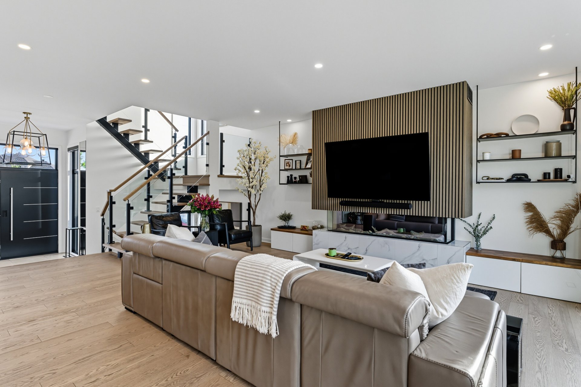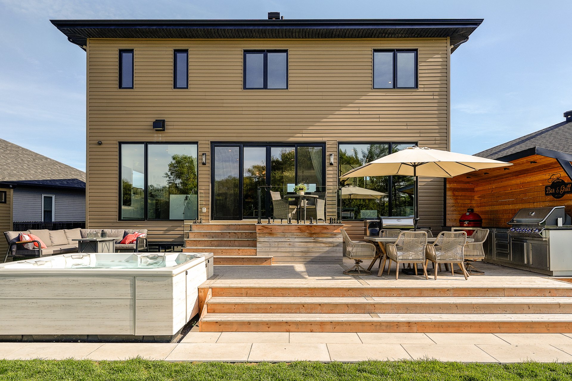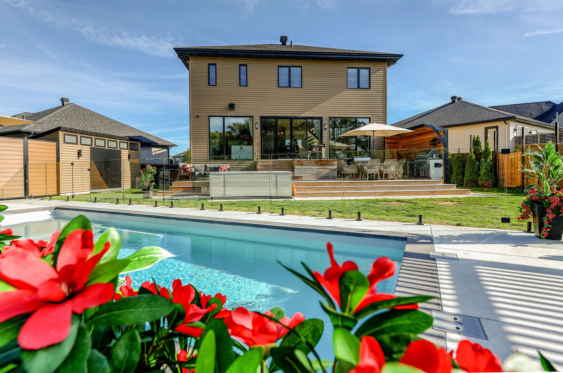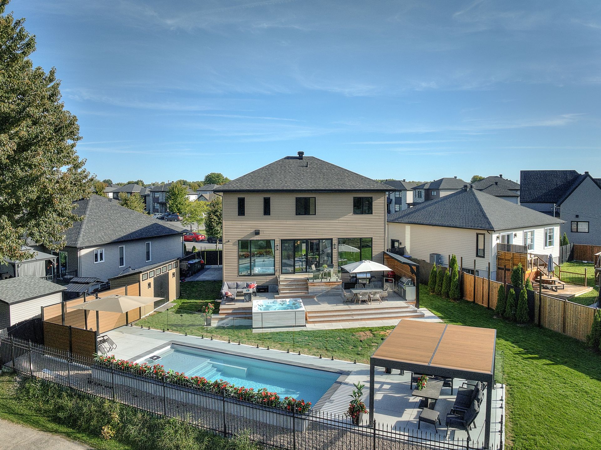 Emplacement de choix dans un quartier paisible et familial en plein essor, cette magnifique propriété est adossée au terrain de golf de Saint-Jean . Le rez-de-chaussée à aire ouverte offre une atmosphère invitante et les immenses fenêtres apportent une superbe luminosité et une vue magnifique. La cuisine est équipée d'électros-ménagers hauts-de-gamme, d'un cellier évaporateur pour 40 bouteilles ainsi que d'un ilôt central très convivial. Luxueuse chambre des maîtres avec accès à une terrasse et un grand walk-in adjacent. Le sous-sol est entièrement aménagé. Cour arrière magnifiquement paysagée avec coin salon, coin repas, piscine et spa.