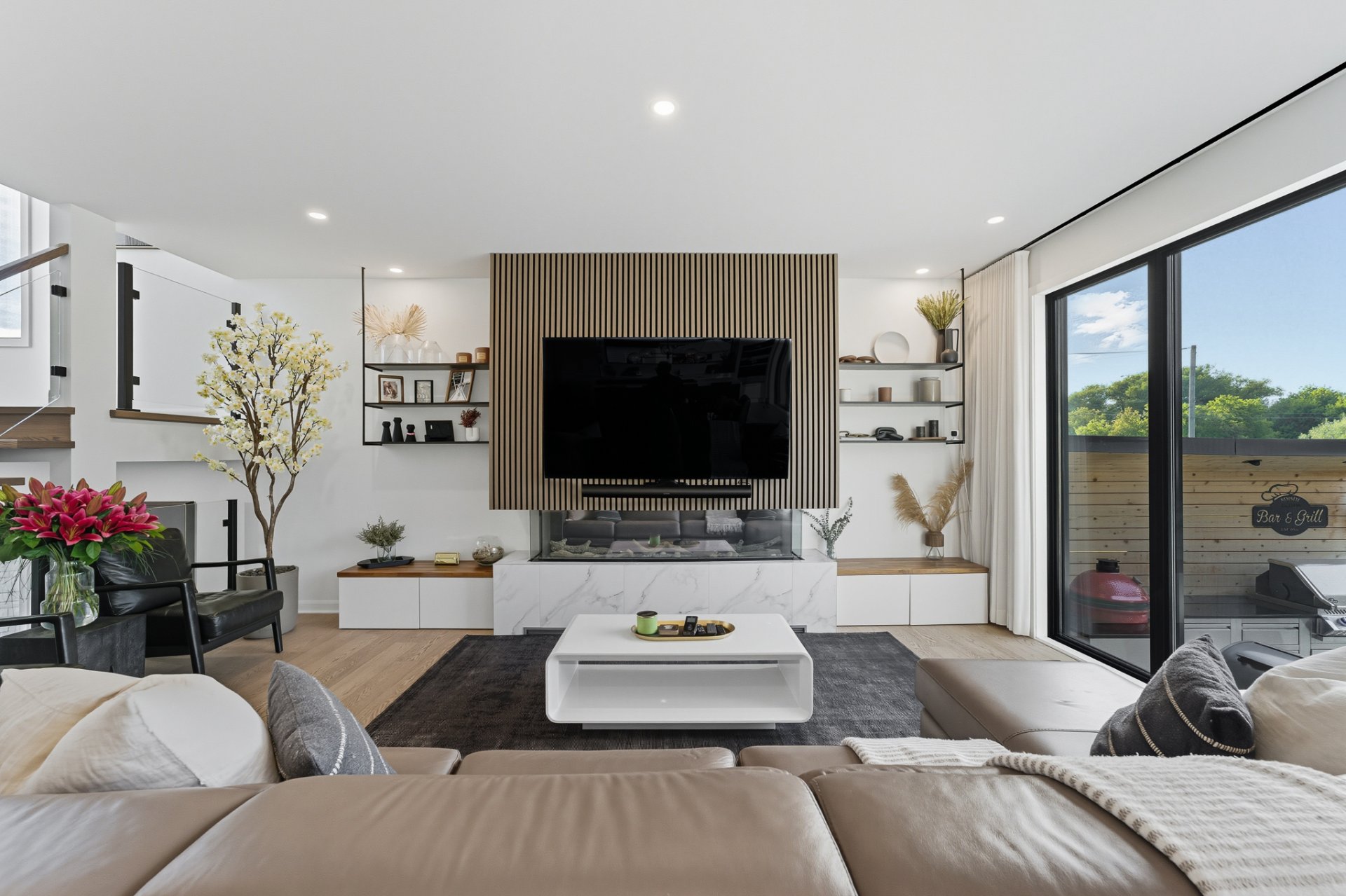 * Foyer au gaz de marque Napoleon au salon;
