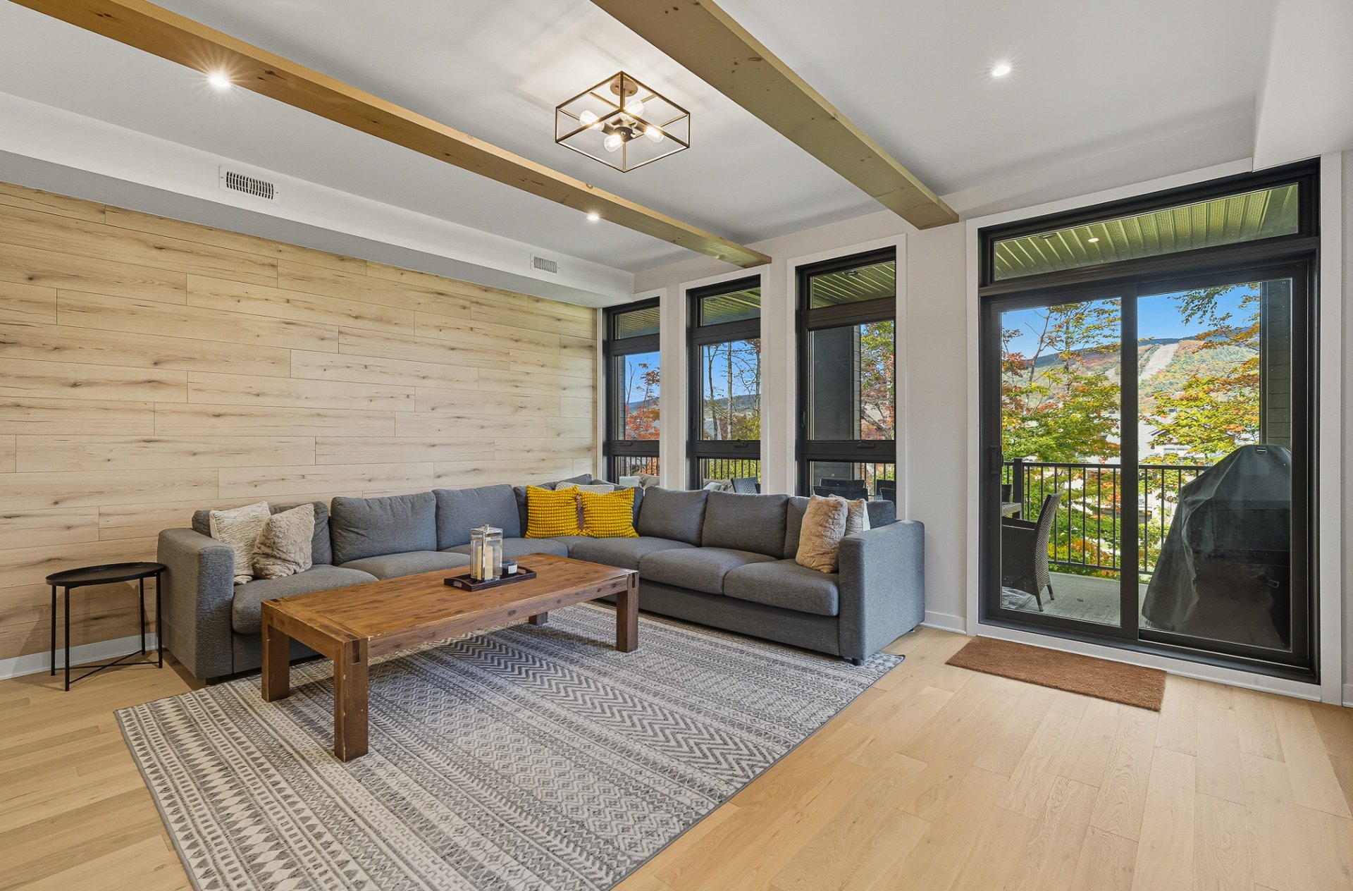 Splendide et luxueux condo d'exception du projet Verbier Tremblant avec permis de location court-terme permettant ainsi de générer des revenus intéressants, situé au versant sud du Centre de villégiature Tremblant aux abords du golf Le géant.