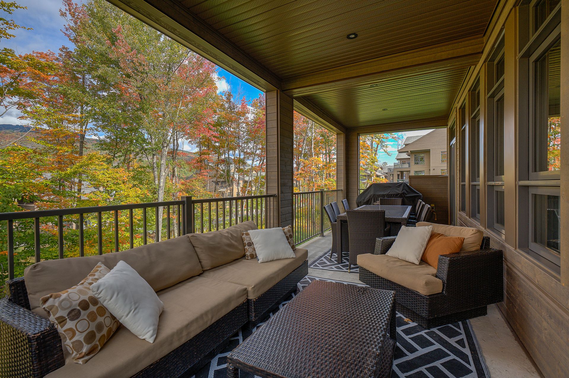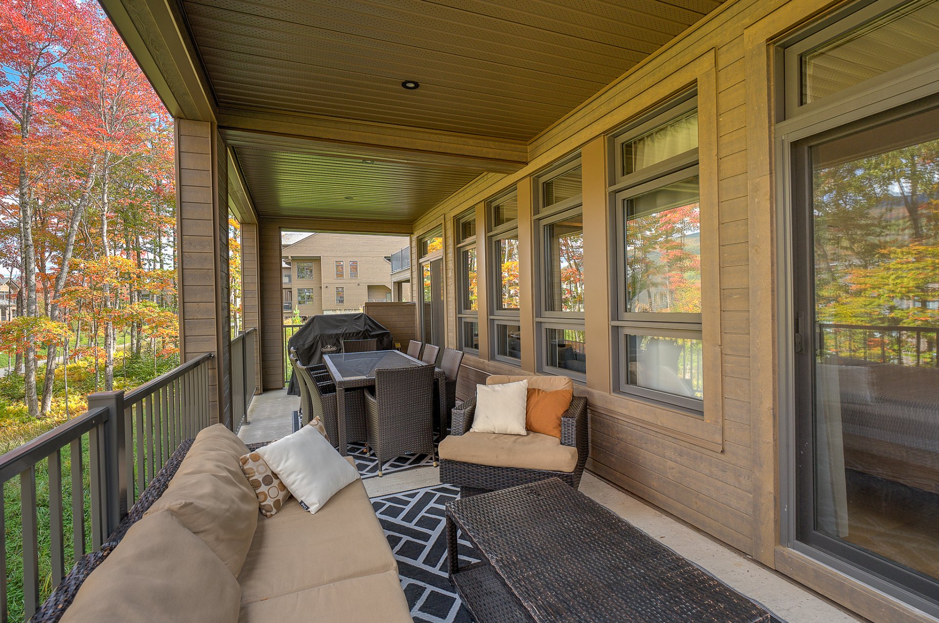 -Une grande terrasse privé vous encourage à apprécier l'extérieur, présentant l'espace idéal et une vue panoramique exceptionnelle sur la splendeur du Mont-Tremblant.