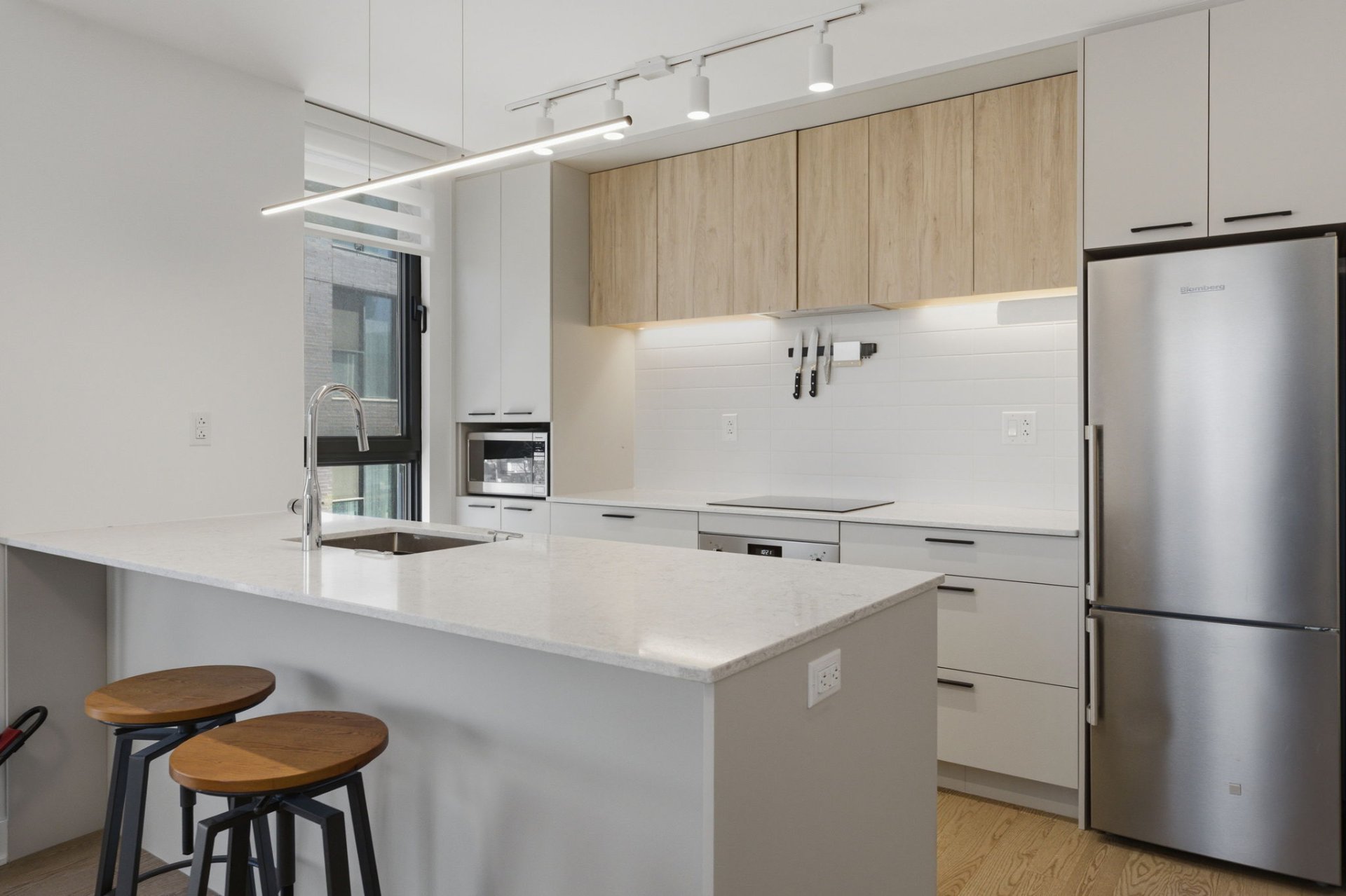 Idéalement situé au coeur de la ville, ce superbe condo d'une chambre et d'une salle de bain se distingue par son design soigné et ses espaces lumineux. L'aire de vie à aire ouverte, élégante et conviviale, s'harmonise parfaitement avec une cuisine moderne et bien équipée, dotée d'un grand îlot et de finitions contemporaines. La chambre spacieuse, comprend un walk-in offrant un rangement optimal, tandis que le balcon privé permet de profiter d'un moment de détente au-dessus de l'effervescence urbaine. Un espace de rangement est inclus, et l'immeuble propose une gamme complète de commodités pour un mode de vie urbain confort.