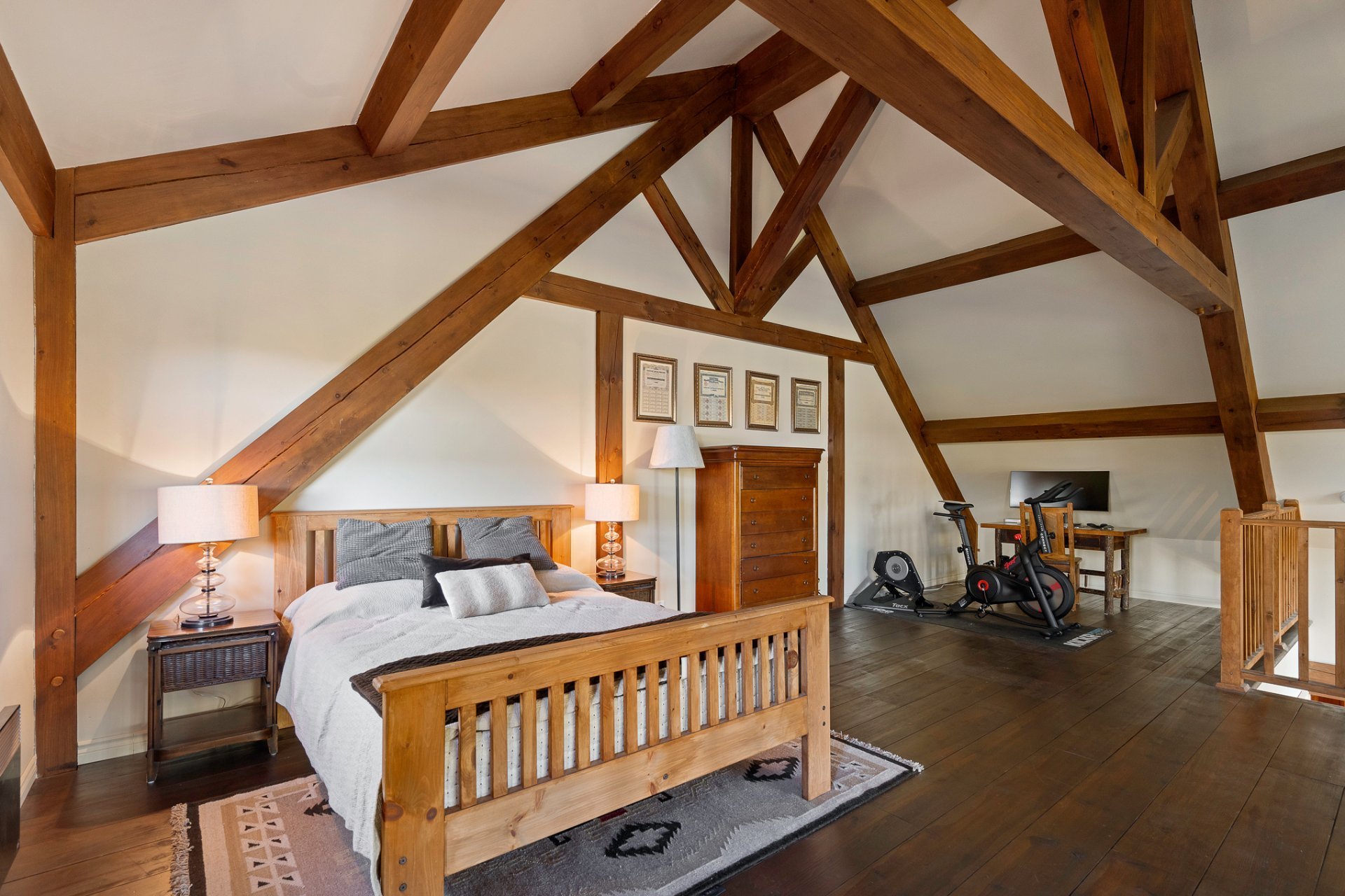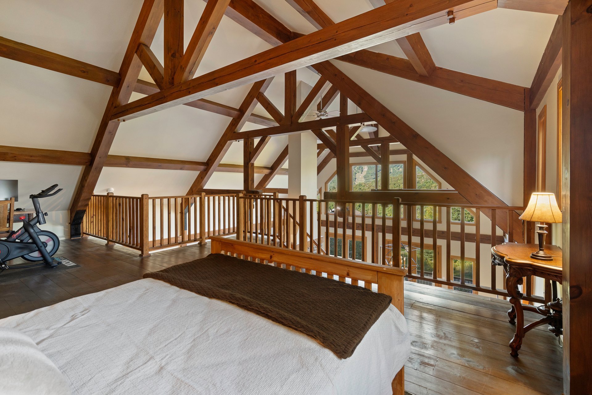 La mezzanine offre un grand espace ouvert qui peut servir de quatrième chambre, de bureau ou de boudoir.