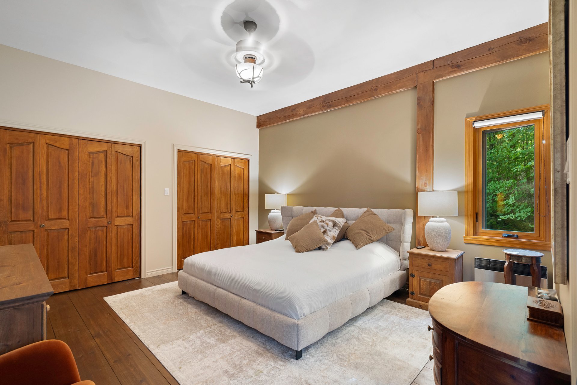 La chambre principale, située au rez-de-chaussée, dispose d'une salle de bain attenante et de garde-robes "his & hers".