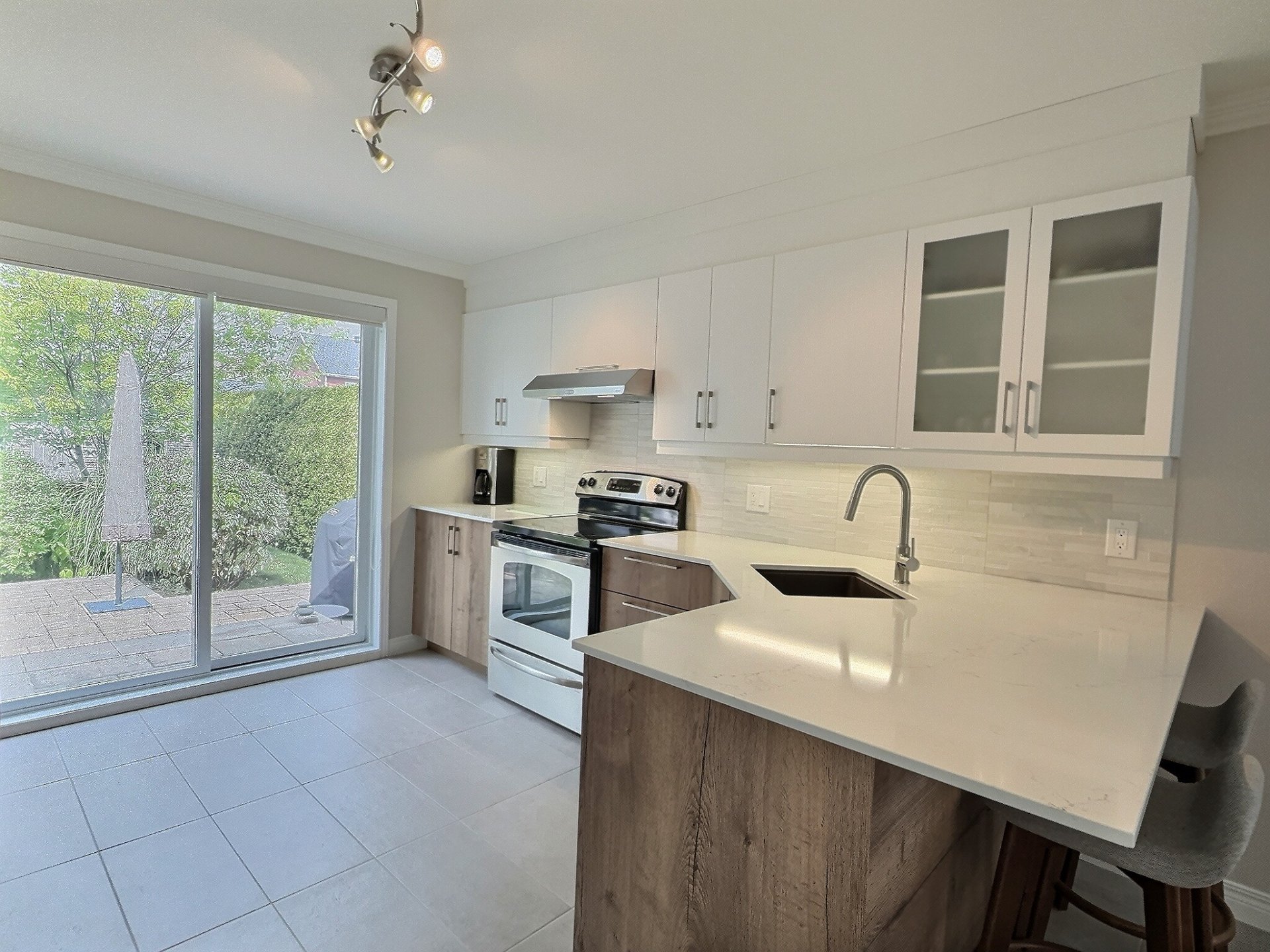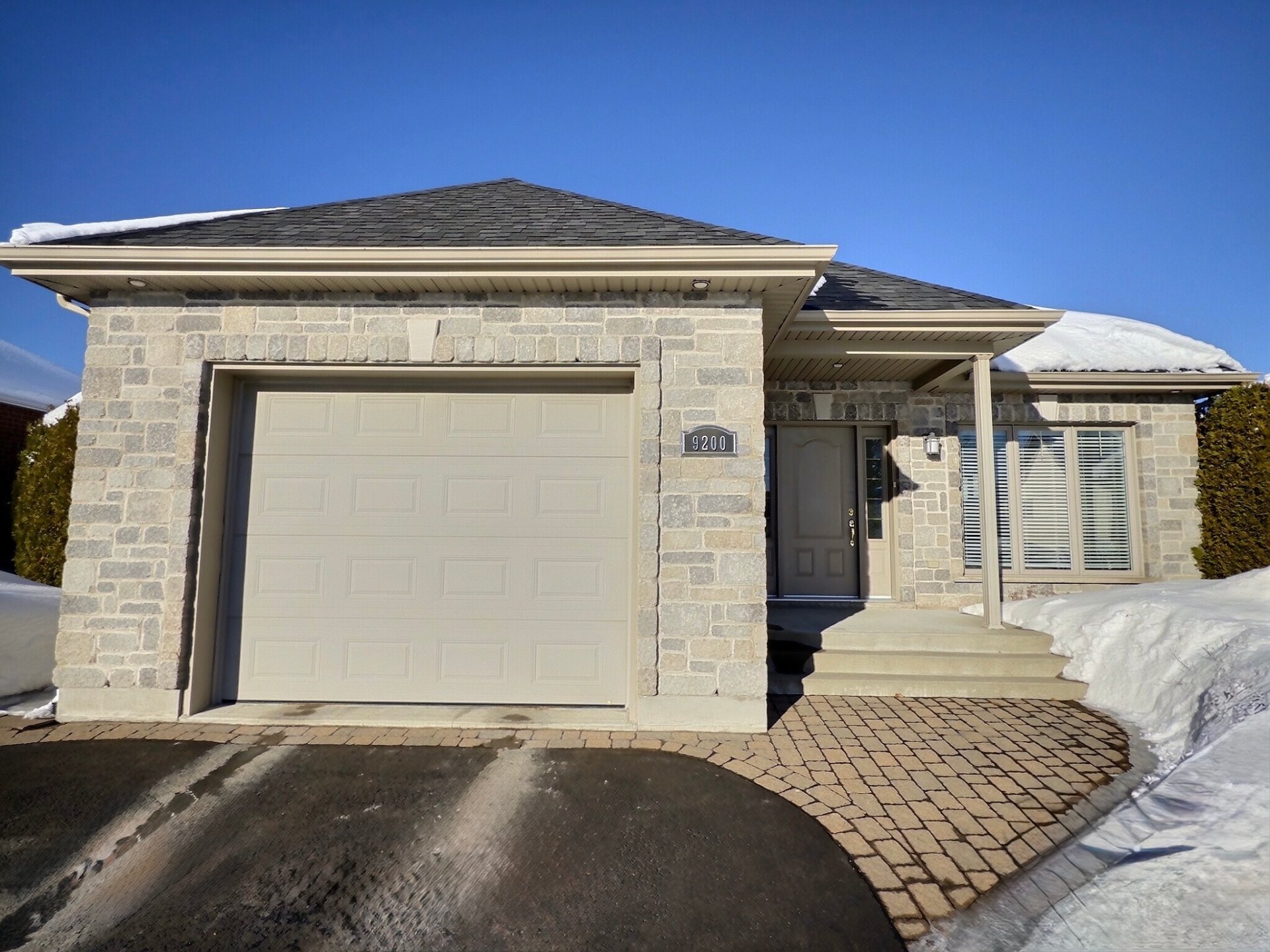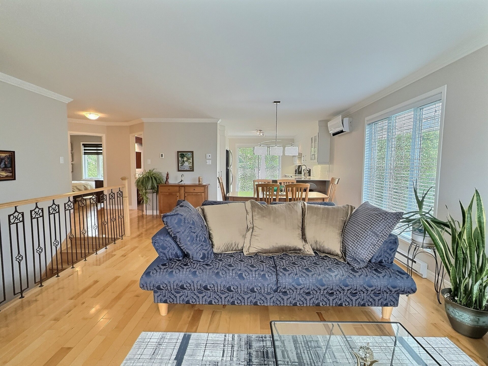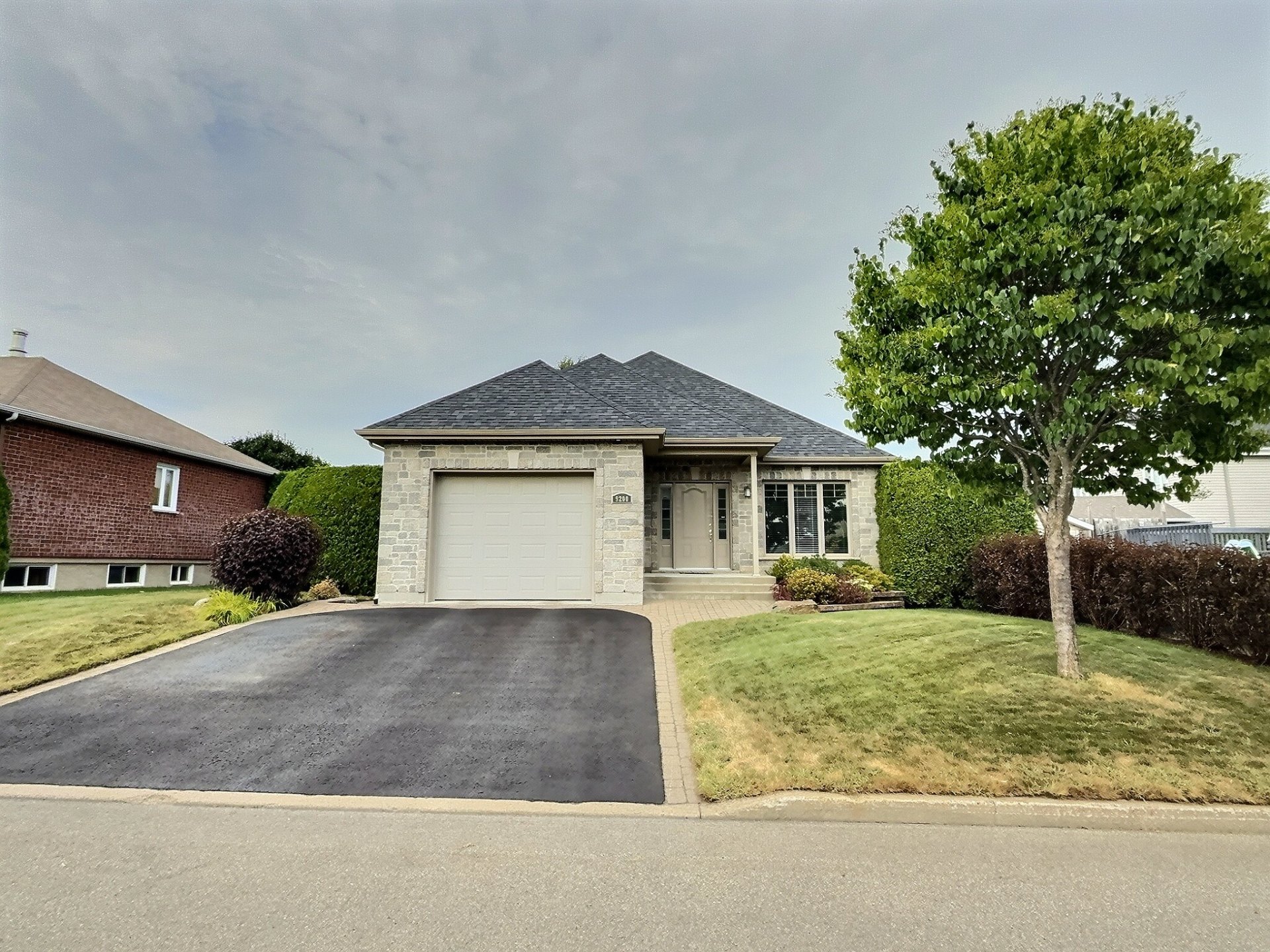 Élégant plein-pied au design soigné,agrémenté d'un garage intégré.Dès l'entrée,l'aire ouverte,sublimée de lumière naturelle,séduit par son harmonie et sa convivialité. La cuisine contemporaine s'ouvre sur une salle à manger chaleureuse et un salon accueillant, créant un cadre idéal pour recevoir. La propriété offre 2 chambres à l'étage, une chambre au sous-sol ainsi qu'un potentiel pour une quatrième. Le sous-sol aménagé propose une vaste salle familiale, une salle d'exercice et une sortie extérieure.2 salles de bain et un terrain intime bordé de haies de cèdres complètent ce lieu où confort, élégance et intimité se rencontrent.Secteur prisé.