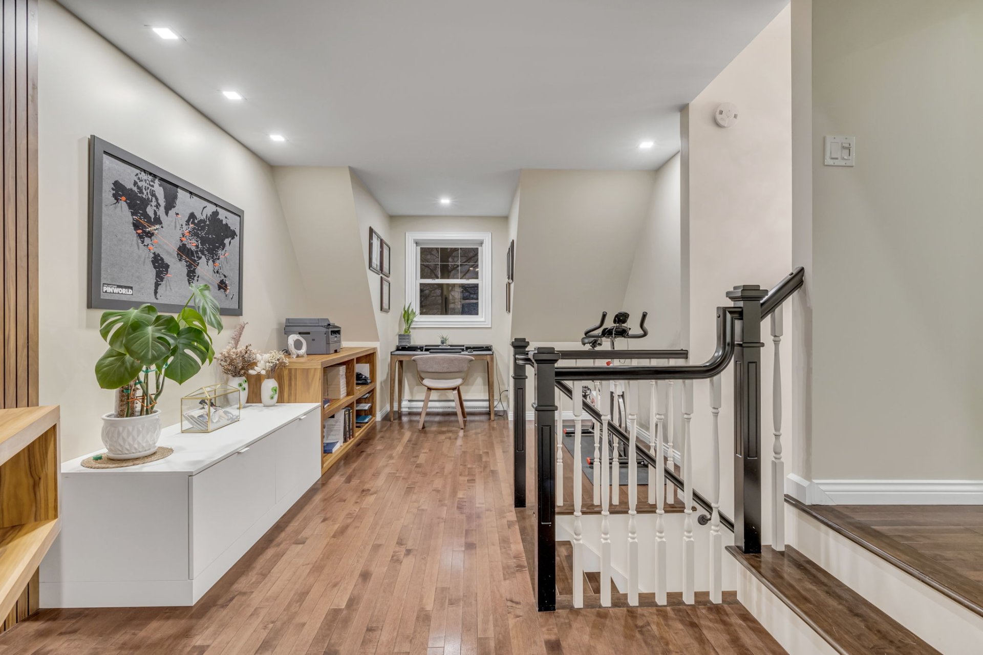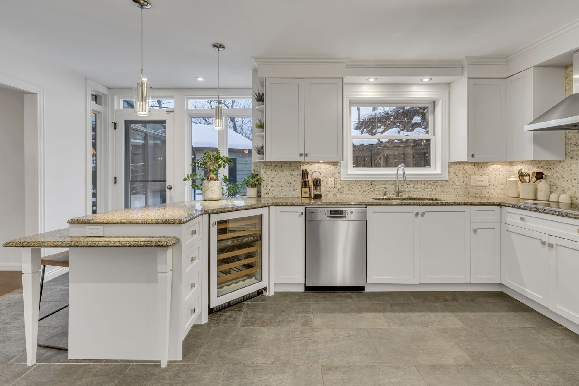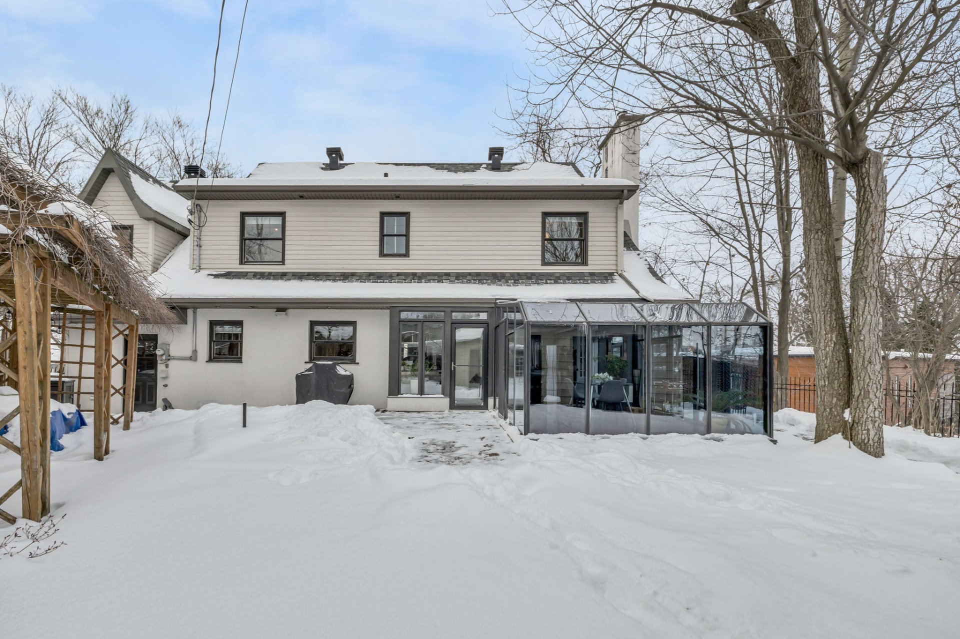 Majestueuse demeure de style canadien, cette propriété se distingue par son imposante façade de pierre naturelle et son allure intemporelle. Solidement construite sur le roc et légèrement surélevée par rapport au quartier, elle offre une rare sensation de tranquillité et l'impression unique de vivre au coeur de la cime des arbres.