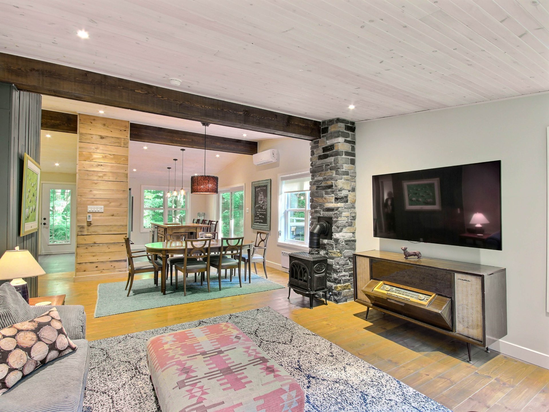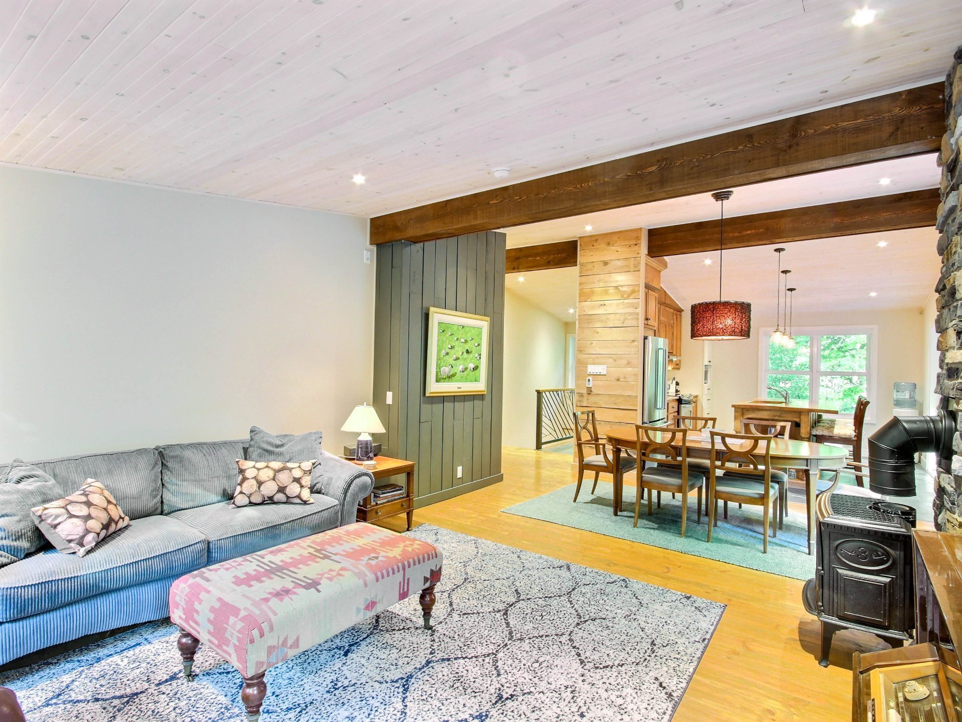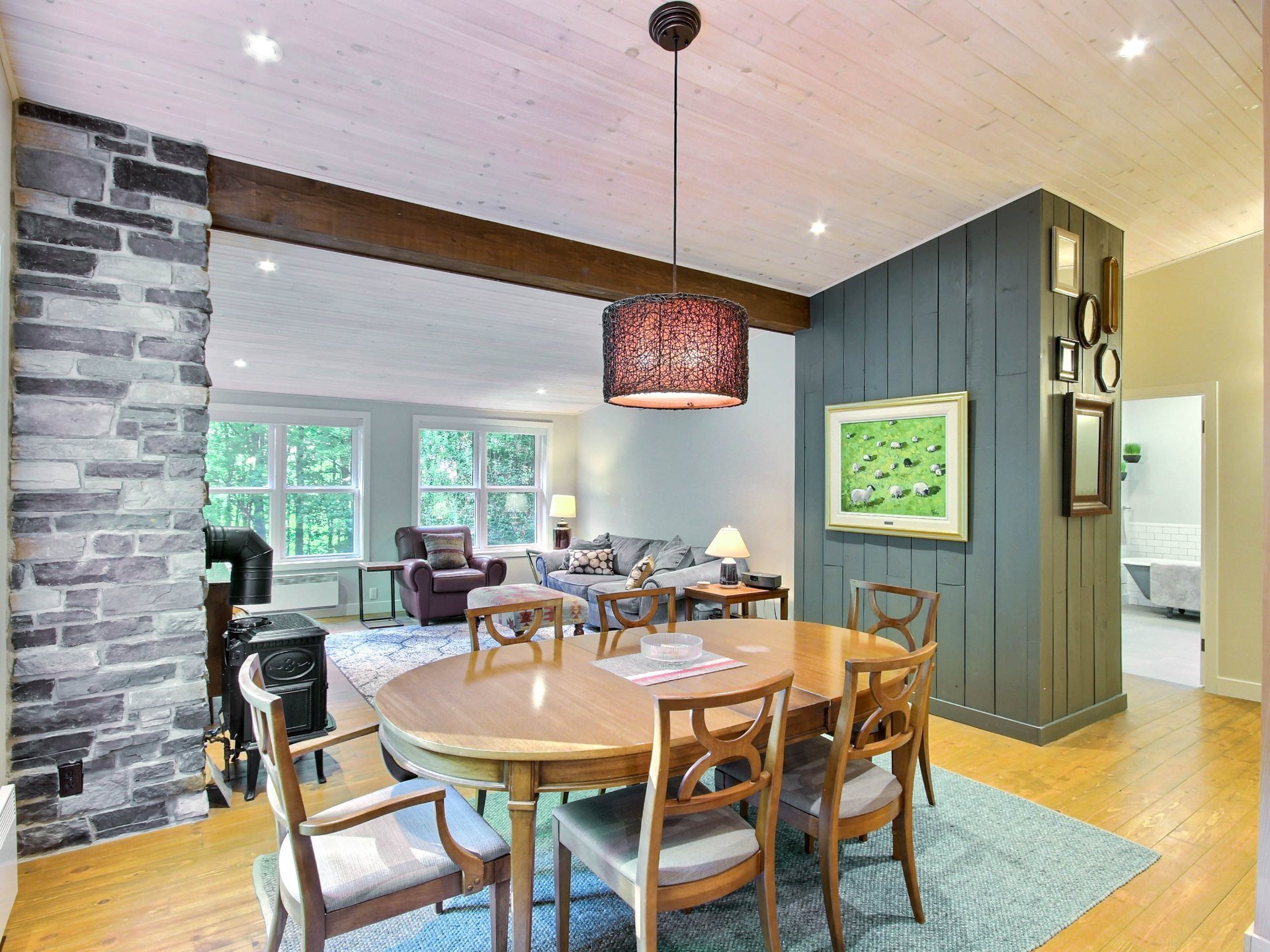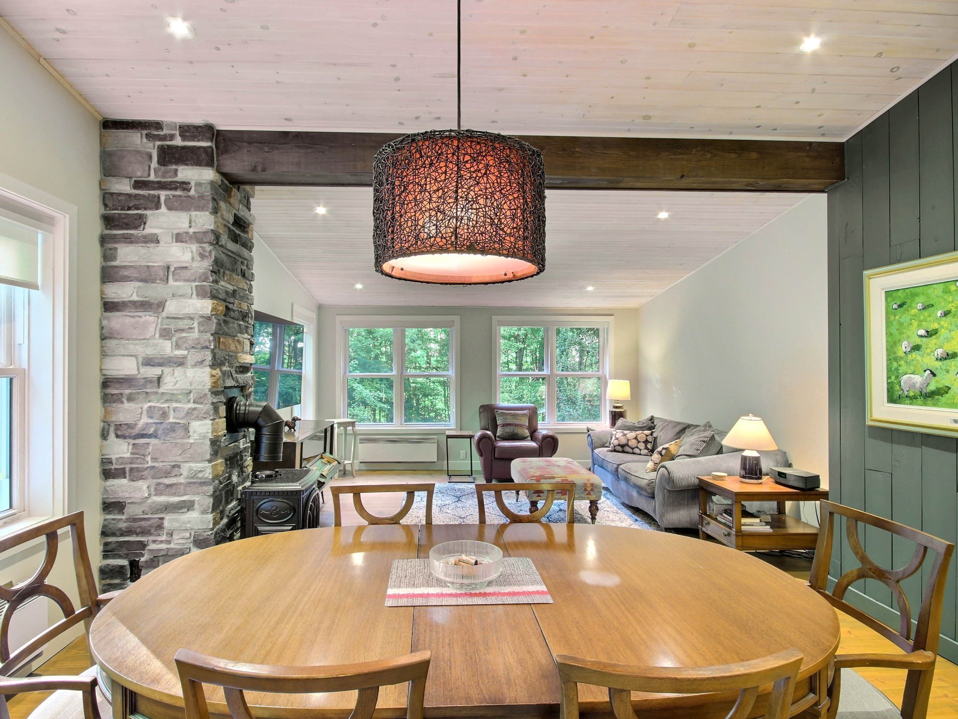 A quelques minutes de la station de ski de Bromont, des sentiers, des golfs et de l'autoroute 10, ce magnifique chalet sur un terrain boisé de 2,25 acres, boisé avec étang saura vous faire vivre un dépaysement total. Ce chalet est éloigné de la route, très privé!! Espace en location: rez-de-chausée