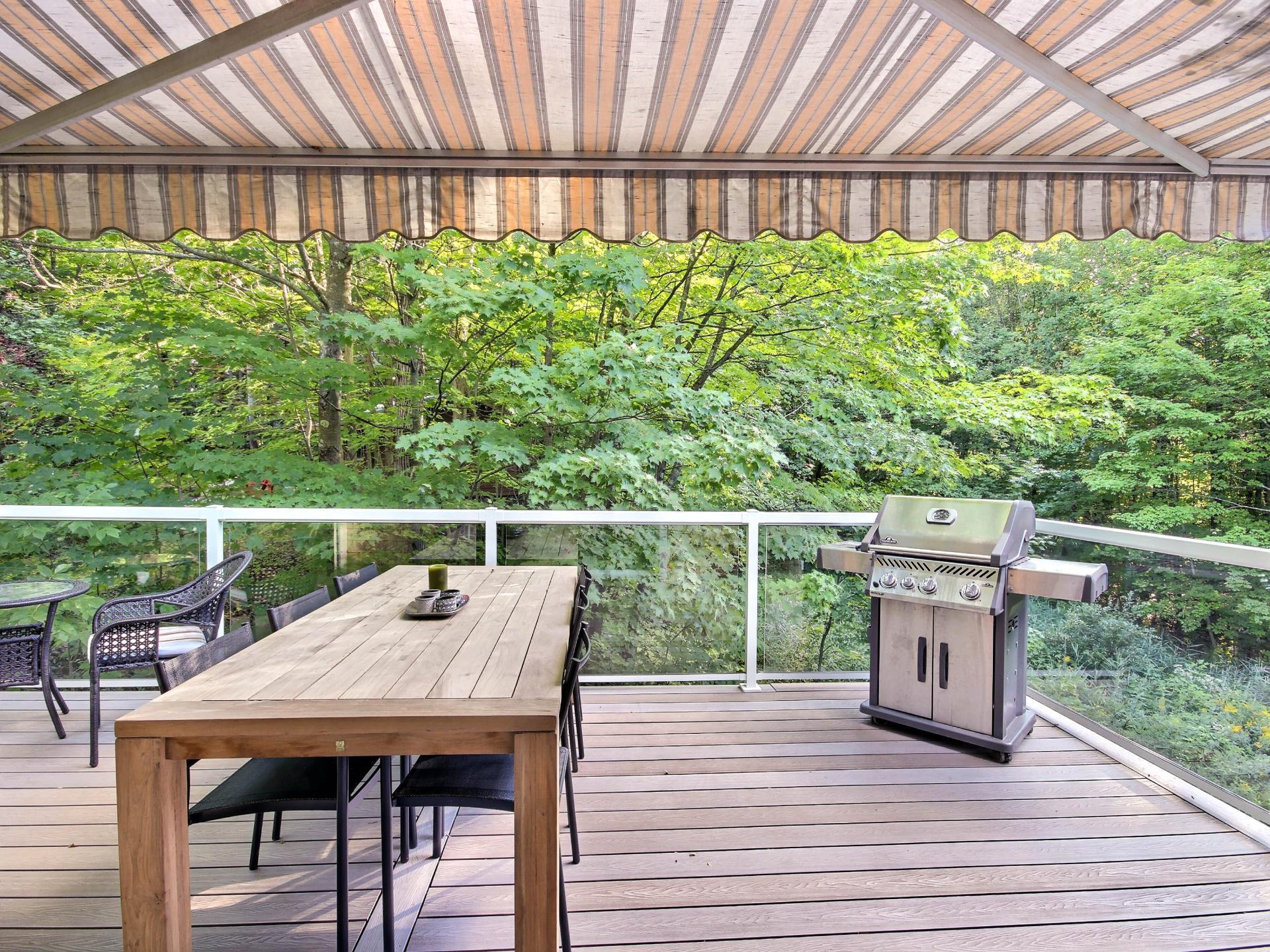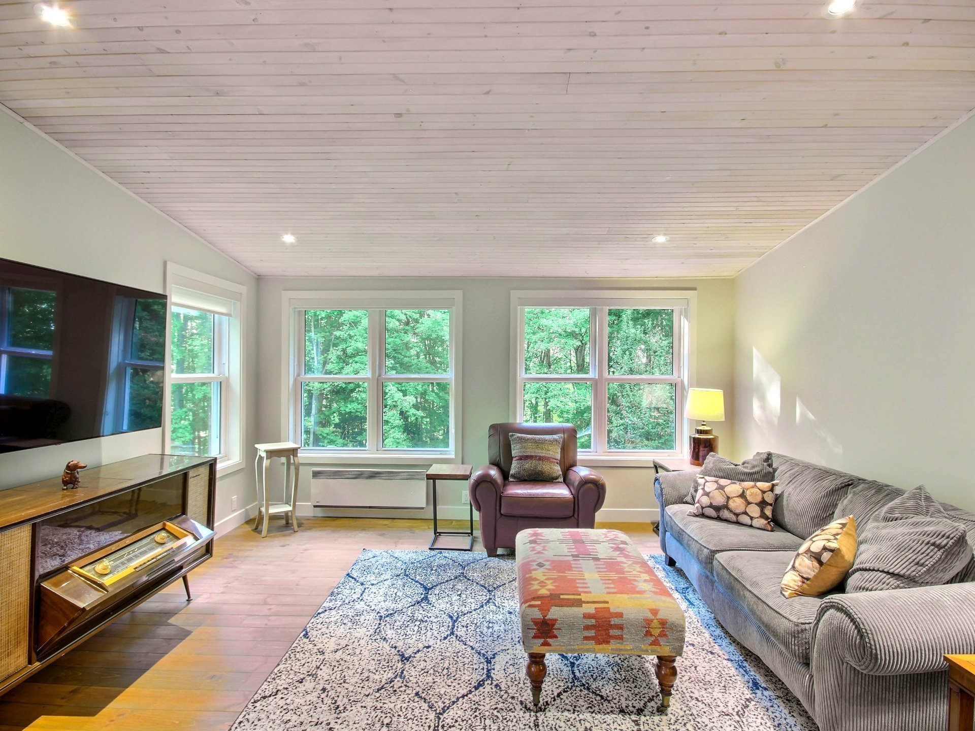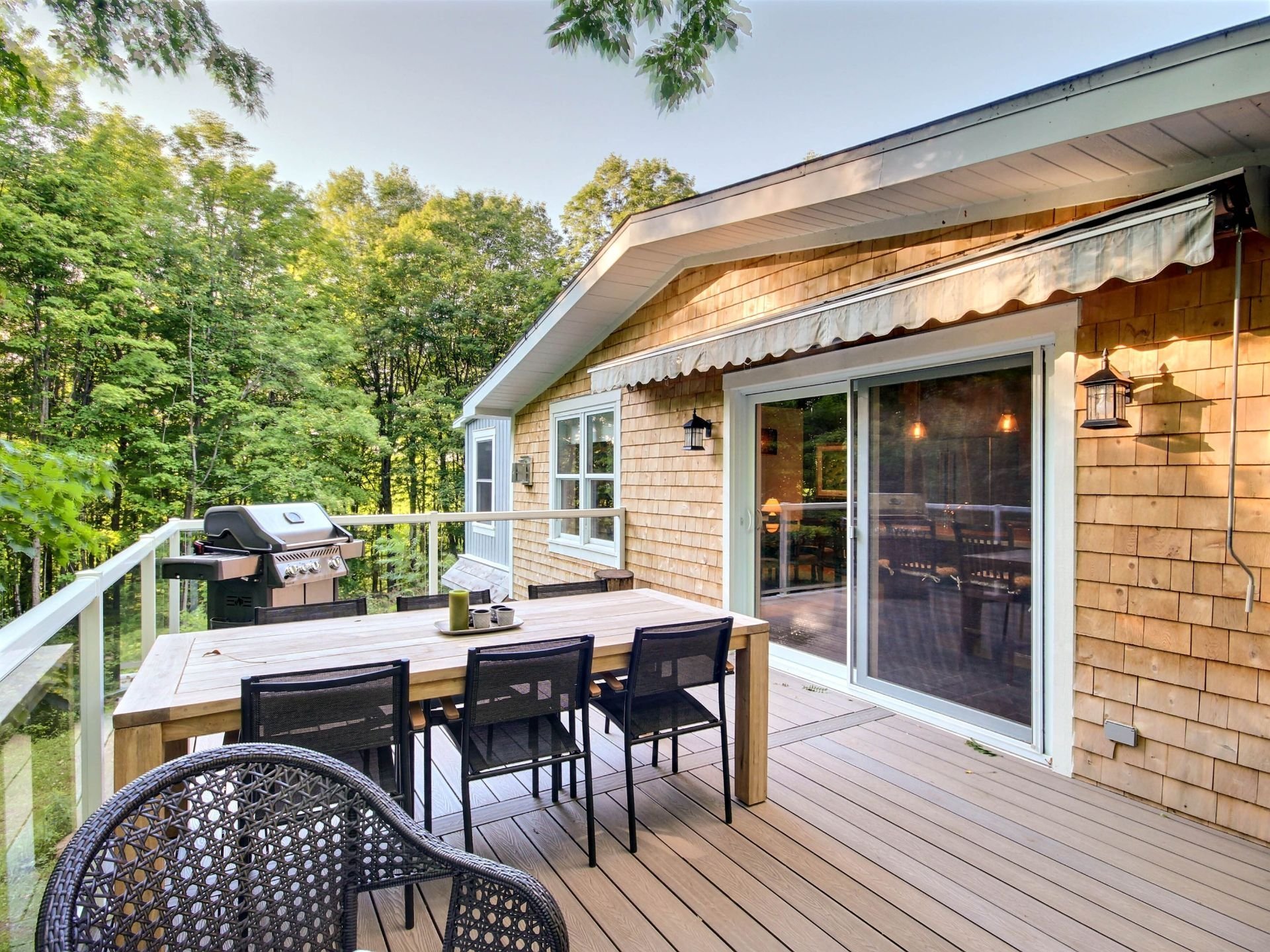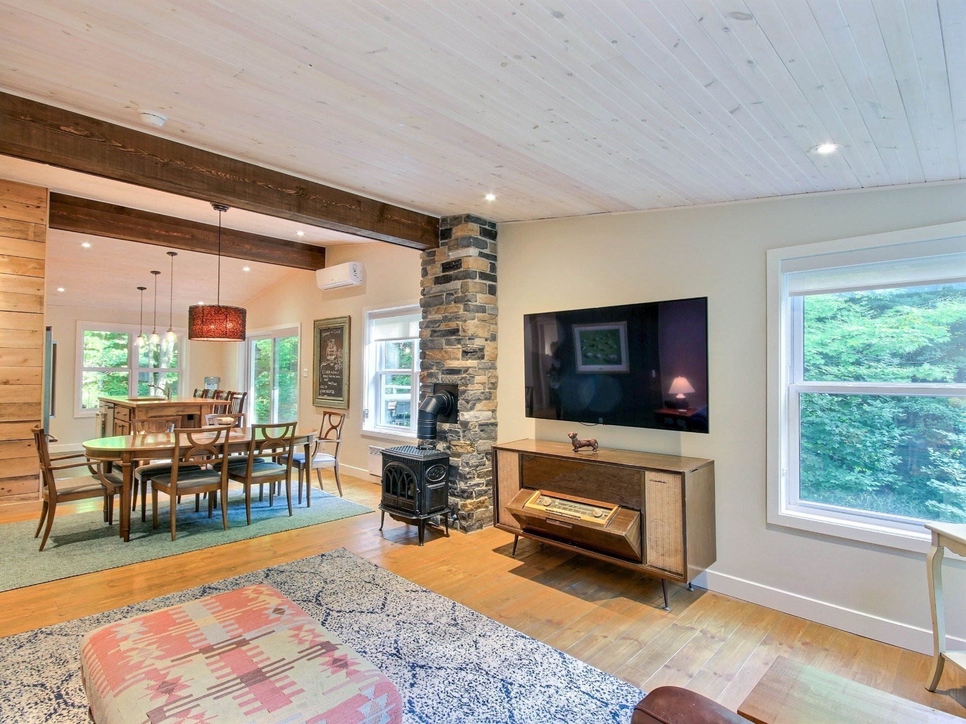 A quelques minutes de la station de ski de Bromont, des sentiers, des golfs et de l'autoroute 10, ce magnifique chalet sur un terrain boisé de 2,25 acres, boisé avec étang saura vous faire vivre un dépaysement total. Ce chalet est éloigné de la route, très privé!! Espace en location: rez-de-chausée