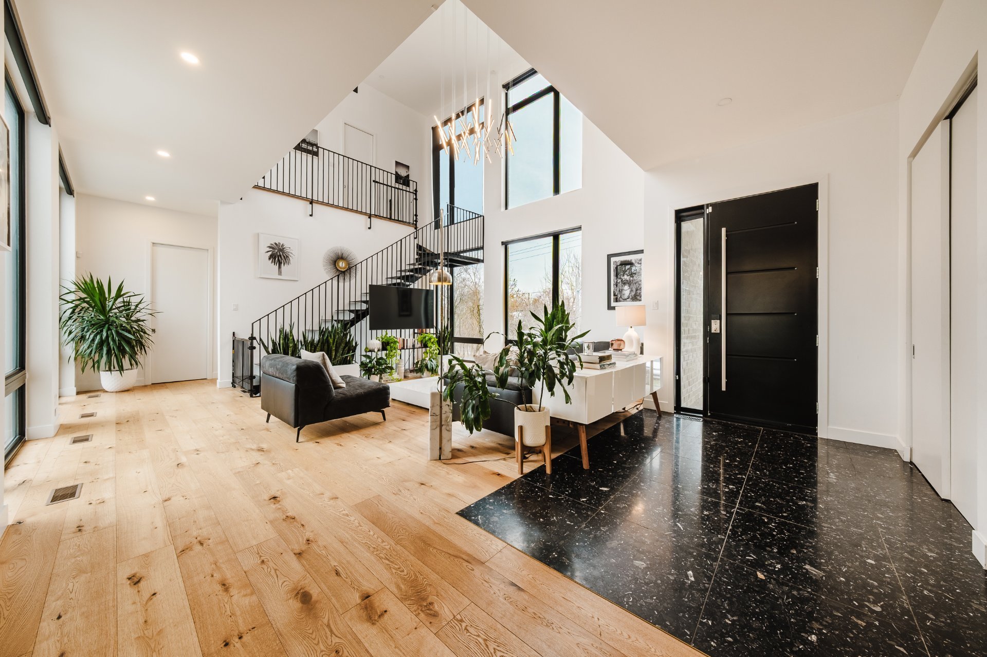 * Hall majestueux menant à un salon avec plafond cathédrale de 23 pieds et fenestration impressionnante,