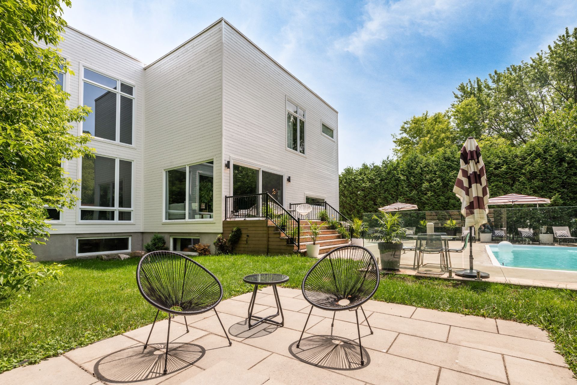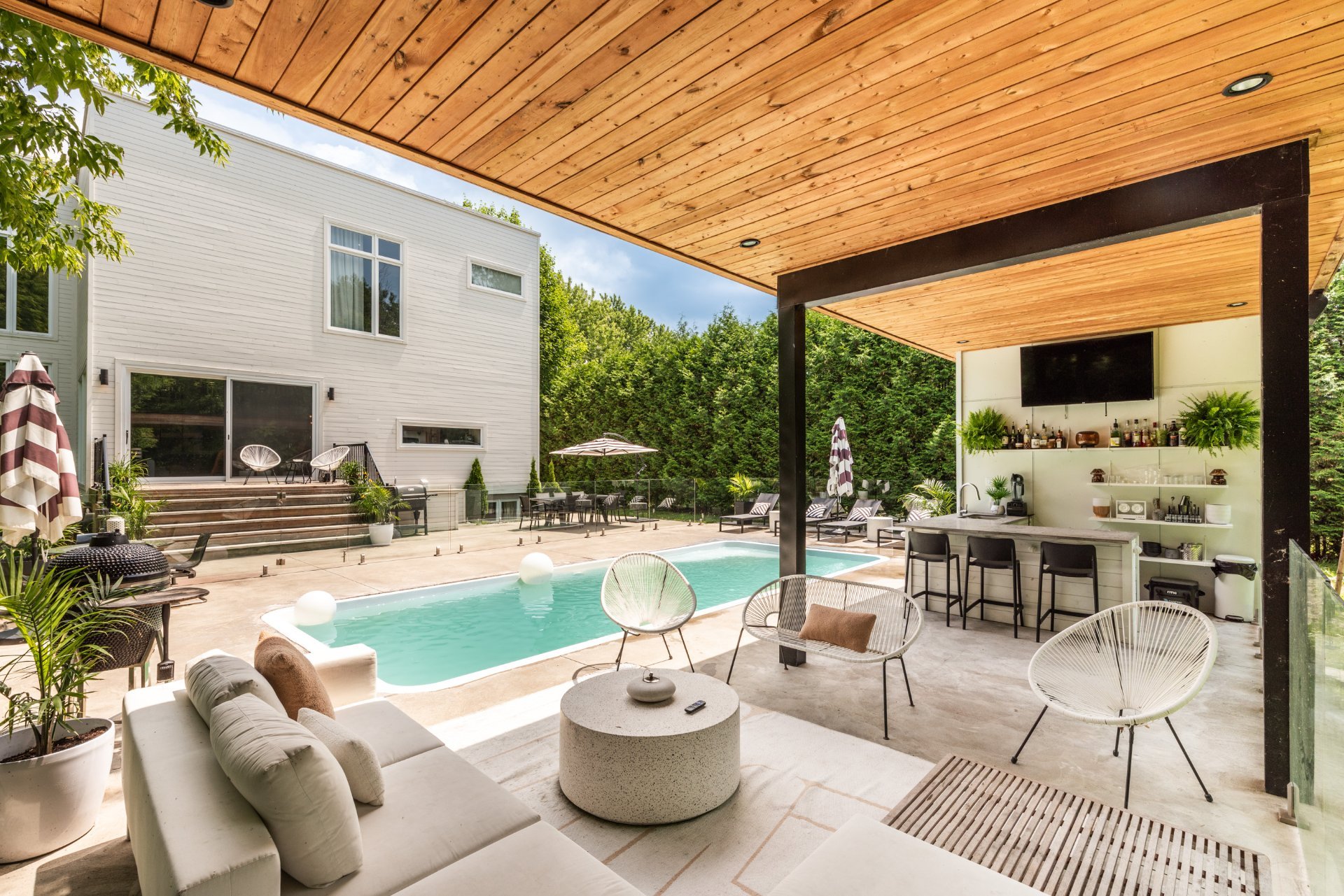 Prestigieuse propriété aux finitions haut de gamme, offrant 5 chambres, 3 salles de bain et 1 salle d'eau. Plafond cathédrale de 23 pieds et fenestration spectaculaire procurant une luminosité exceptionnelle. Cuisine luxueuse avec cellier vitré et îlot en quartz. La verrière s'ouvre sur une vue imprenable du boisé, prolongeant l'espace de vie. Cour arrière d'exception : pavillon couvert avec cuisines extérieures, piscine creusée et coin feu sur pavé, un véritable oasis privé.