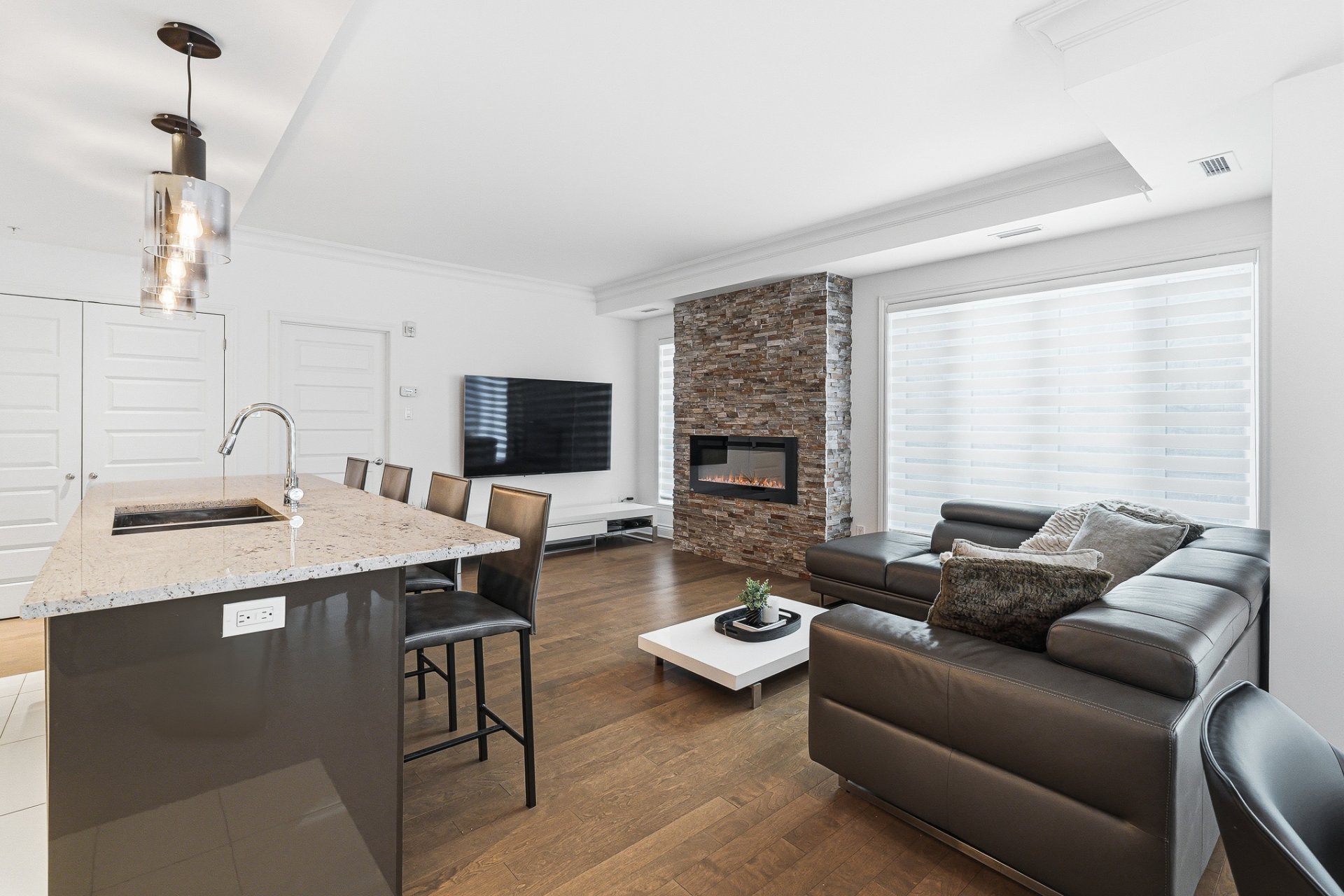 Bienvenue au 2925, avenue des Aristocrates. Ce condo de COIN est situé au 3e étage et bénéficie d'une orientation Sud-Ouest. L'unité profite d'une abondante LUMINOSITÉ naturelle en après-midi ainsi que de couchers de soleil en soirée. Le concept à aire ouverte comprend une cuisine entièrement ÉQUIPÉE avec un grand îlot, un salon avec FOYER électrique ainsi qu'une salle à manger entourée de fenêtres donnant accès à un balcon. L'espace de vie est idéal pour se détendre devant le foyer ou pour recevoir des invités. L'unité offre deux chambres, deux salles de bain et deux stationnements intérieurs, ce qui constitue un atout.