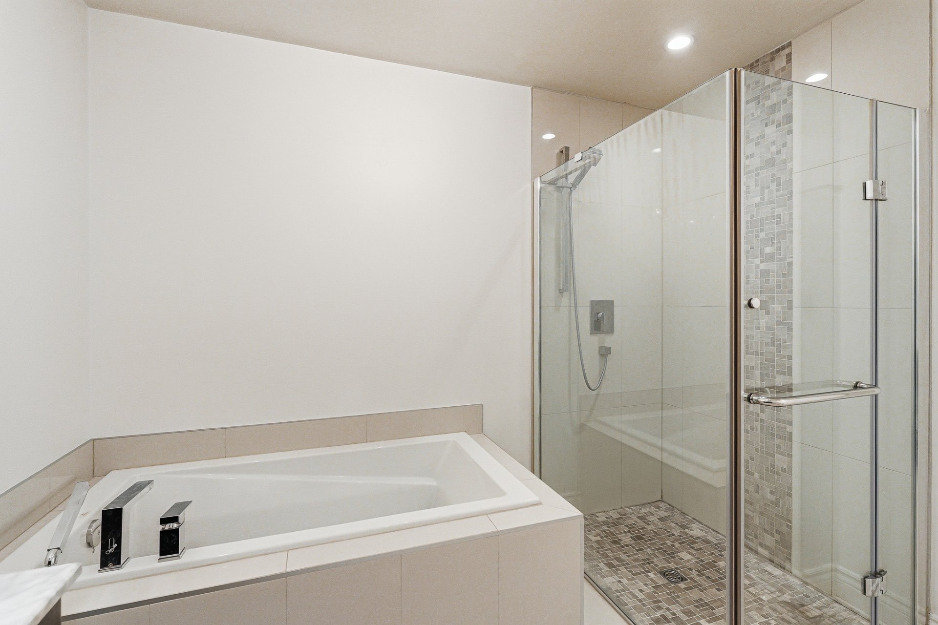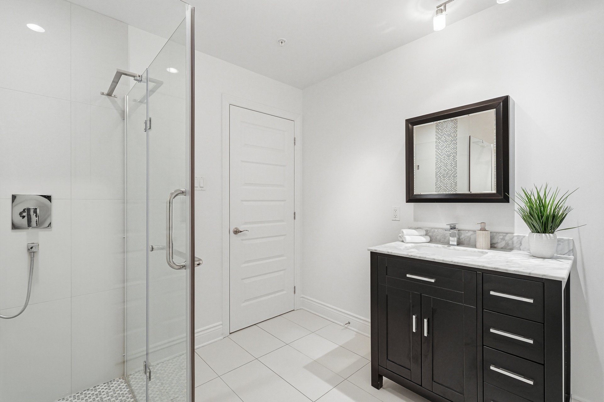Une deuxième chambre polyvalente, pouvant servir de bureau à domicile ou de chambre d'invités, ainsi qu'une deuxième salle de bain avec douche vitrée, ajoutent flexibilité et confort à l'aménagement.