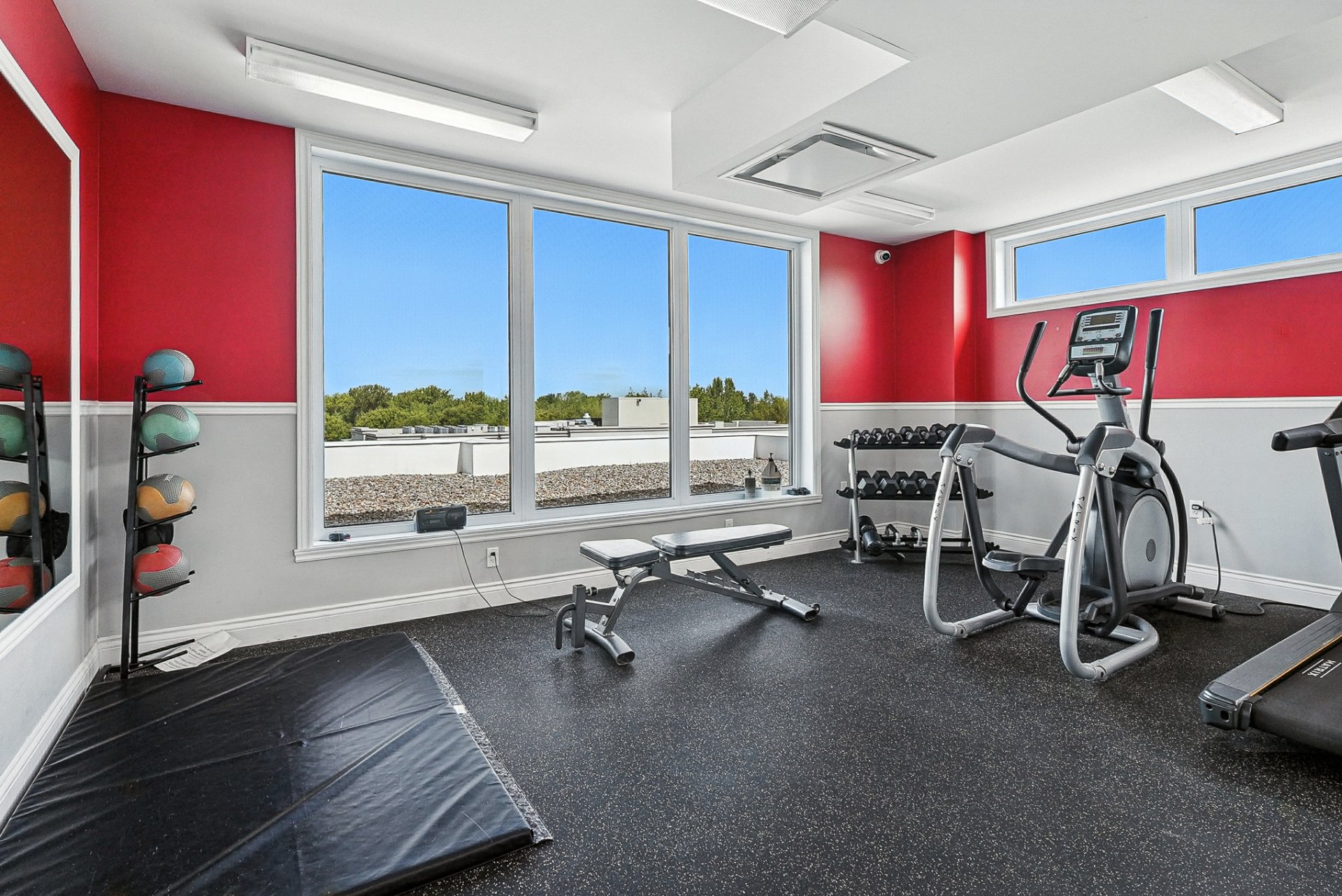 L'immeuble met également à la disposition des résidents un espace de divertissement supplémentaire au dernier étage, ainsi qu'un accès à un gym et à une terrasse sur le toit, offrant des espaces communs idéals pour l'entraînement et la détente.