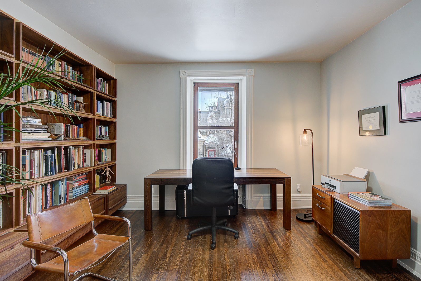 Maison de ville en pierre, rénovée et agrandie, mariant charme d'époque et confort moderne. Grandes pièces en enfilade, magnifique hauteur sous plafond et détails architecturaux raffinés. Élégante porte de vestibule ornée d'un vitrail personnalisé, foyer au gaz, et cuisine de rêve signée Treebone. Salle à manger et précieux den ouvrant sur une terrasse avec jacuzzi en cèdre. Salle d'eau au r-d-c. Suite principale avec terrasse privée, salle de bains attenante somptueuse : plancher chauffant, baignoire profonde, douche vitrée et mur d'étagères sur mesure. Un art de vivre à l'élégance européenne, au coeur d'un quartier au Walk Score de 99