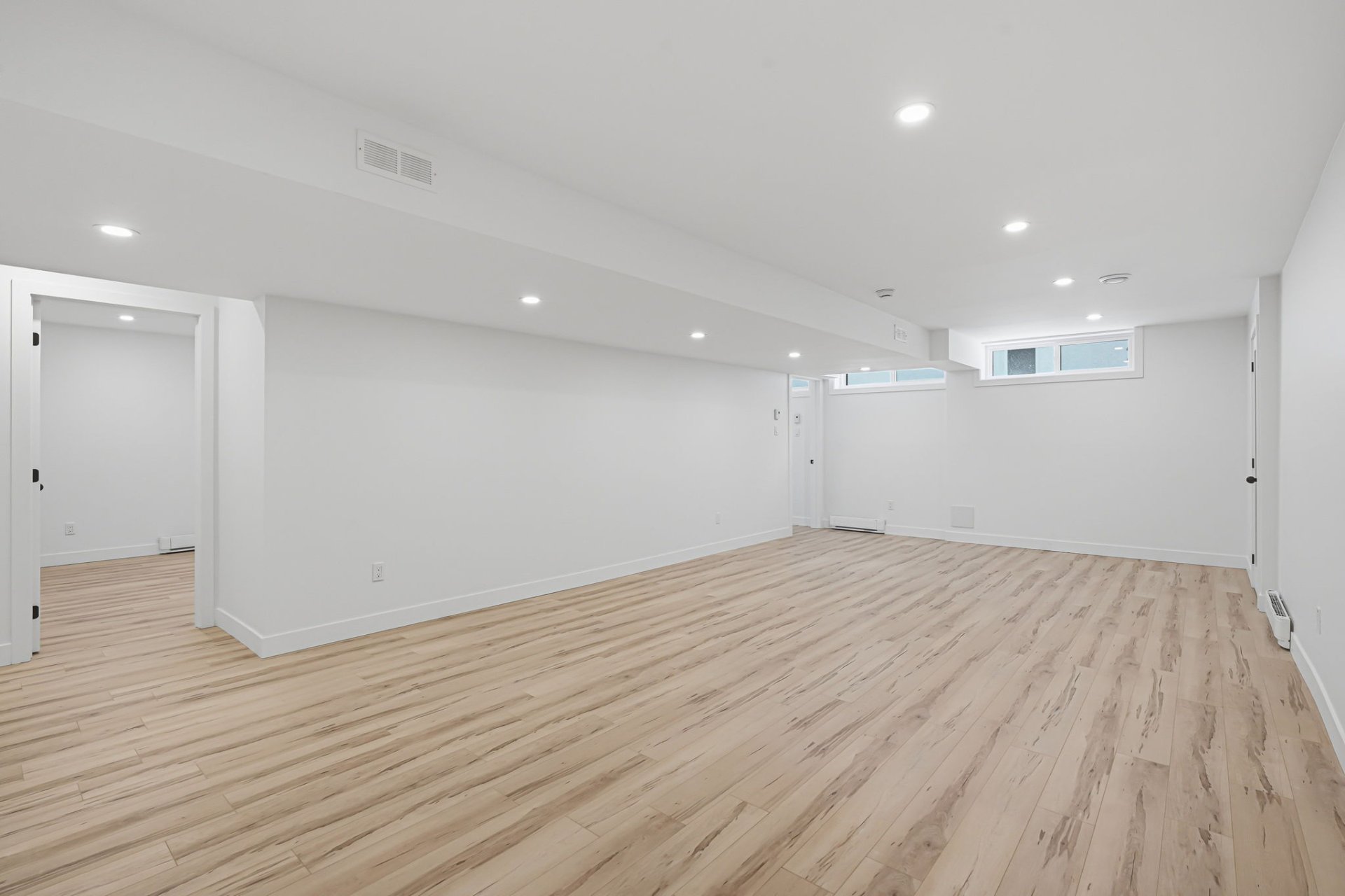 - Vaste sous-sol aux plafonds de 7'8, offrant une salle familiale de ±400 pi², deux chambres, une salle de bain, une entrée adjacente au garage, un walk-in aménagé et une cave à vin prête à accueillir vos crus les plus précieux.