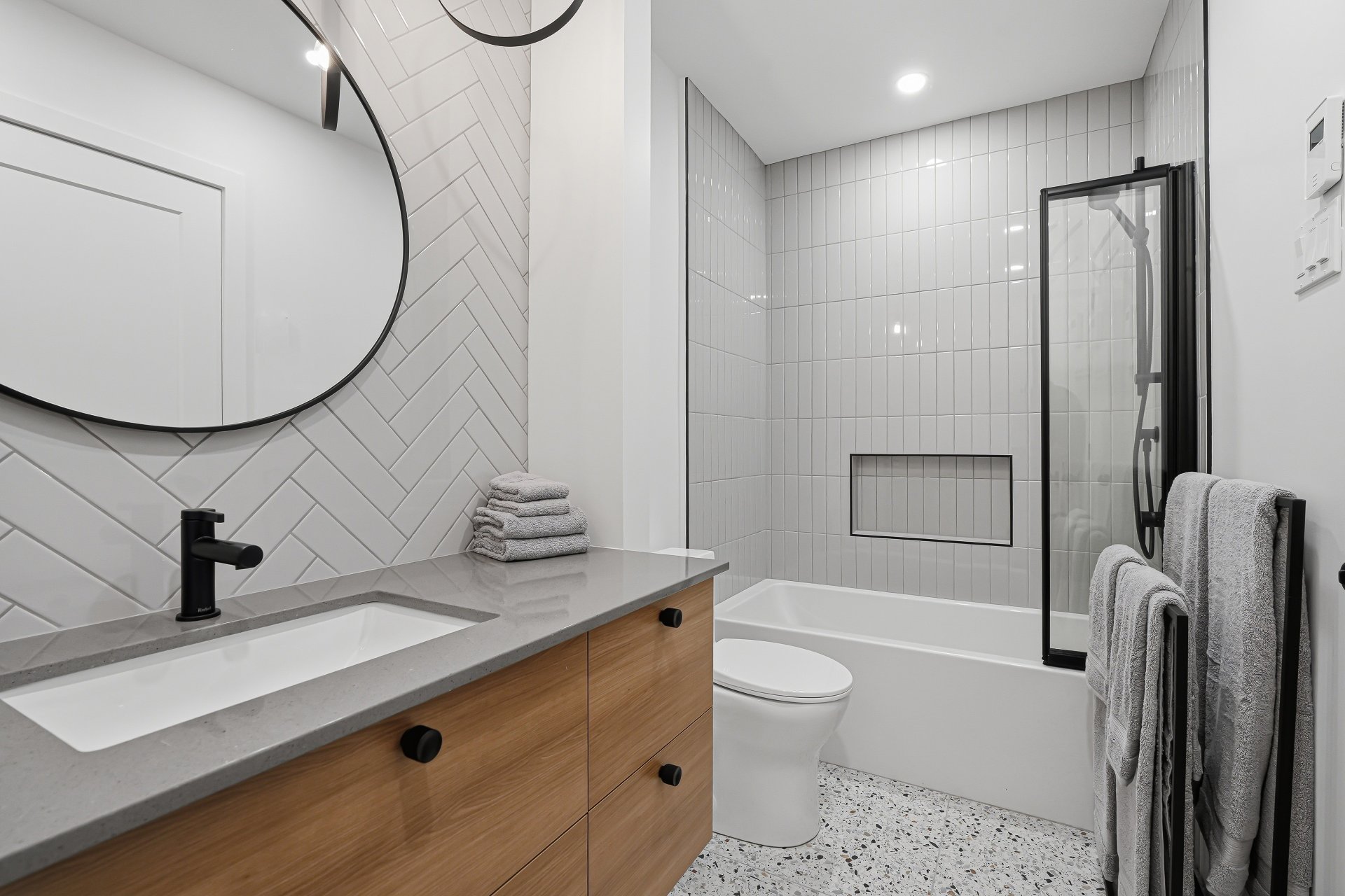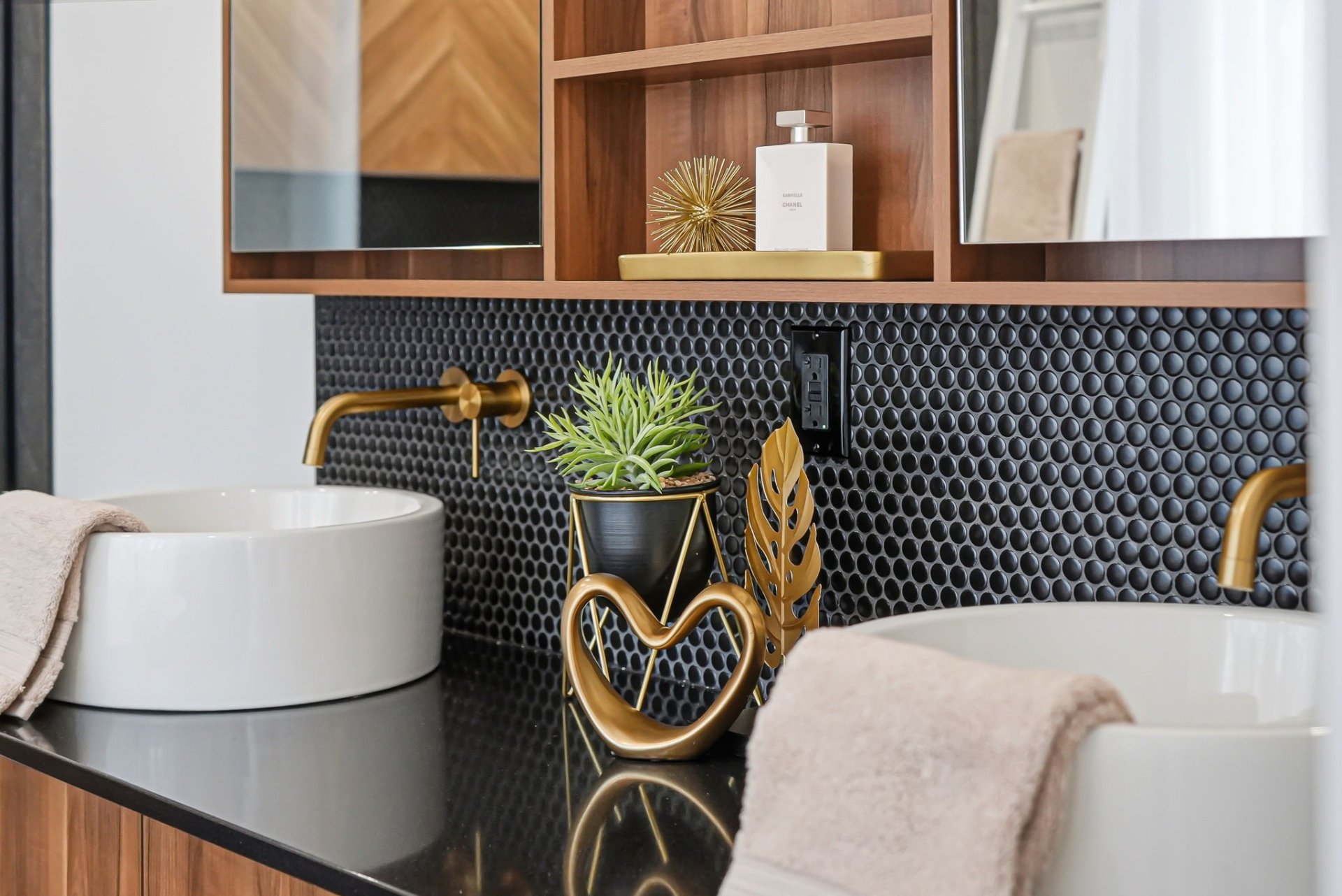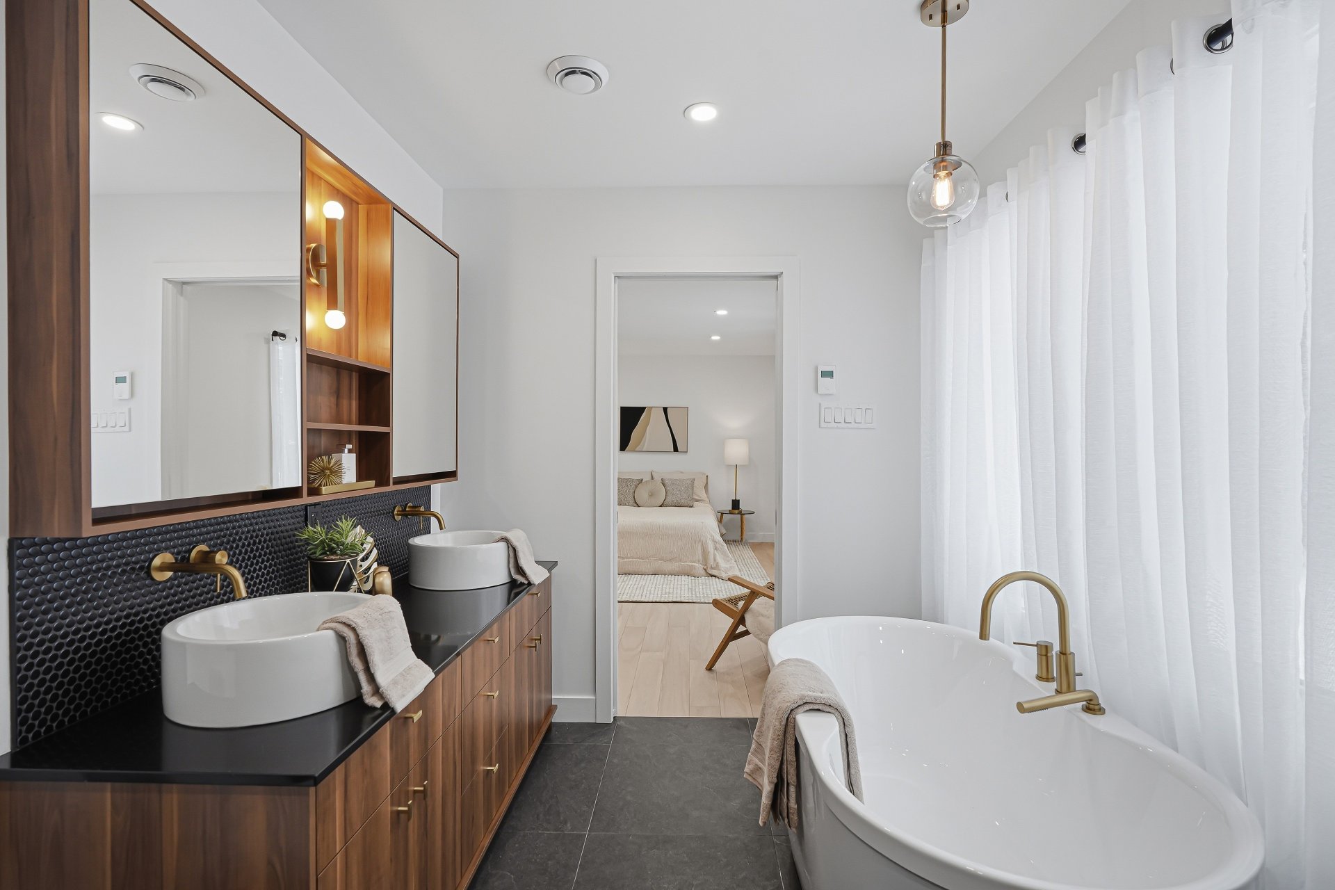 - La chambre principale spacieuse dispose d'un walk-in et d'une somptueuse salle de bain attenante avec double vasque sur comptoir en quartz, douche double à l'italienne et bain indépendant.