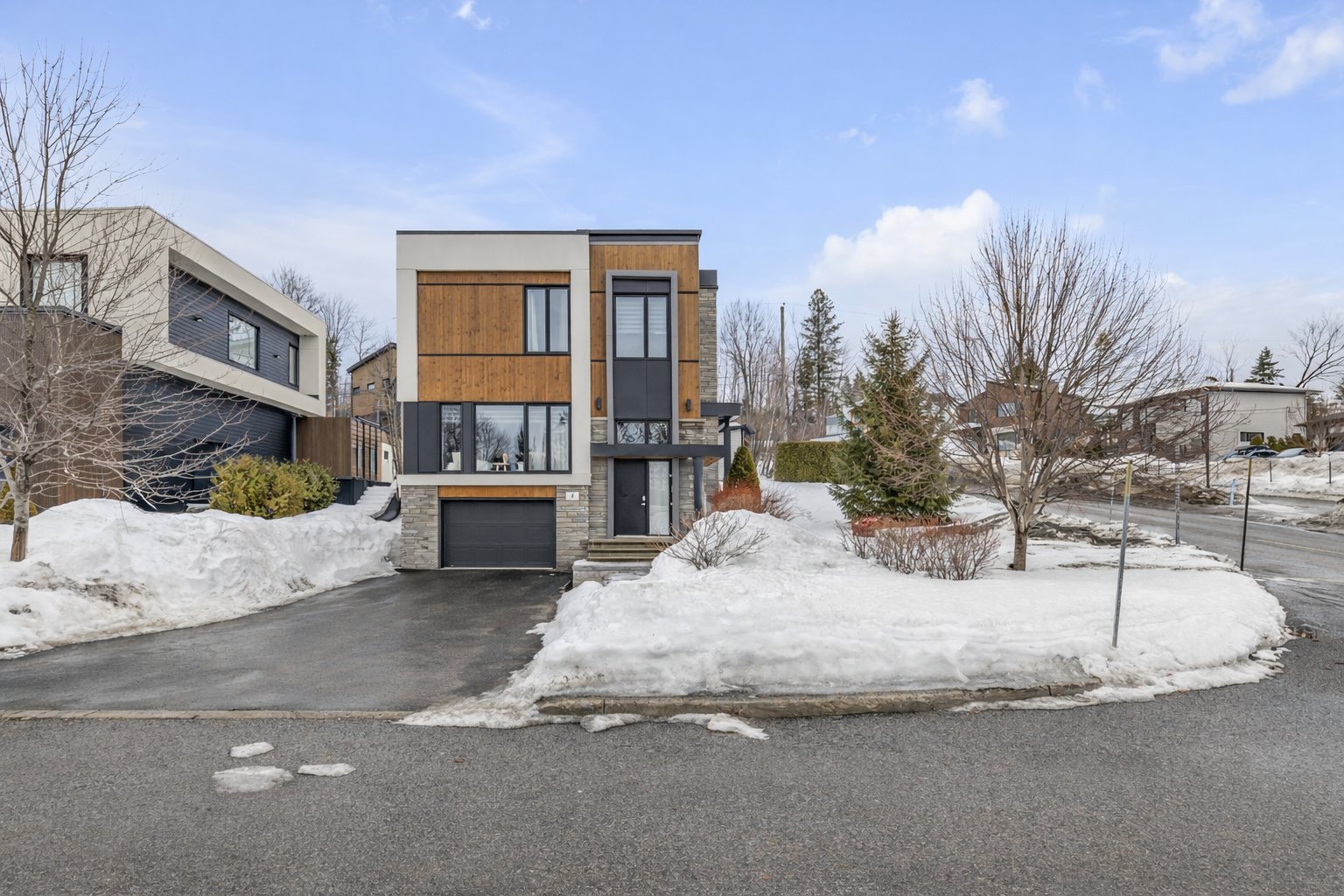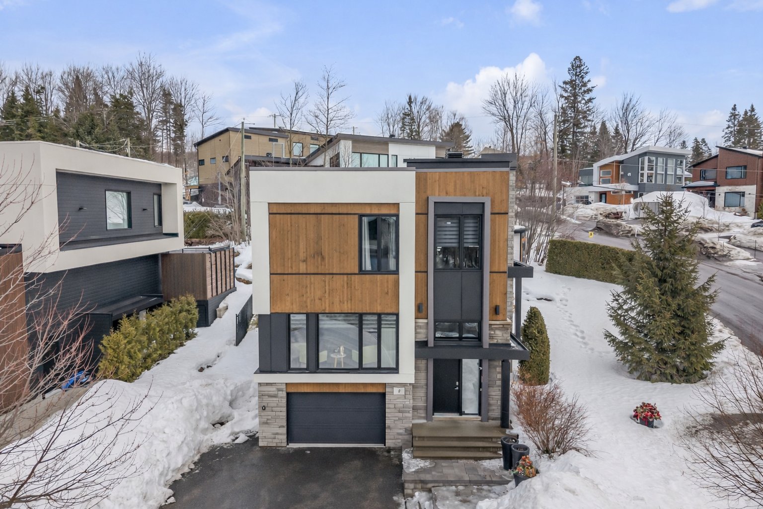 - Lac-Beauport - Située dans le quartier prisé EXALT à Lac-Beauport, cette superbe propriété contemporaine haut de gamme se distingue par son architecture élégante et sa luminosité exceptionnelle. Répartie sur trois niveaux, elle offre 3 chambres avec walk-in, une aire de vie conviviale aux plafonds de 9 pieds et une fenestration abondante. Cuisine moderne avec îlot, foyer au gaz au salon et salle familiale au sous-sol. Terrain paysager de plus de 8000 pi², garage intégré et terrasse couverte chauffée. Emplacement privilégié dans un rond-point avec vue sur la montagne, des services et des activités de plein air. À voir !