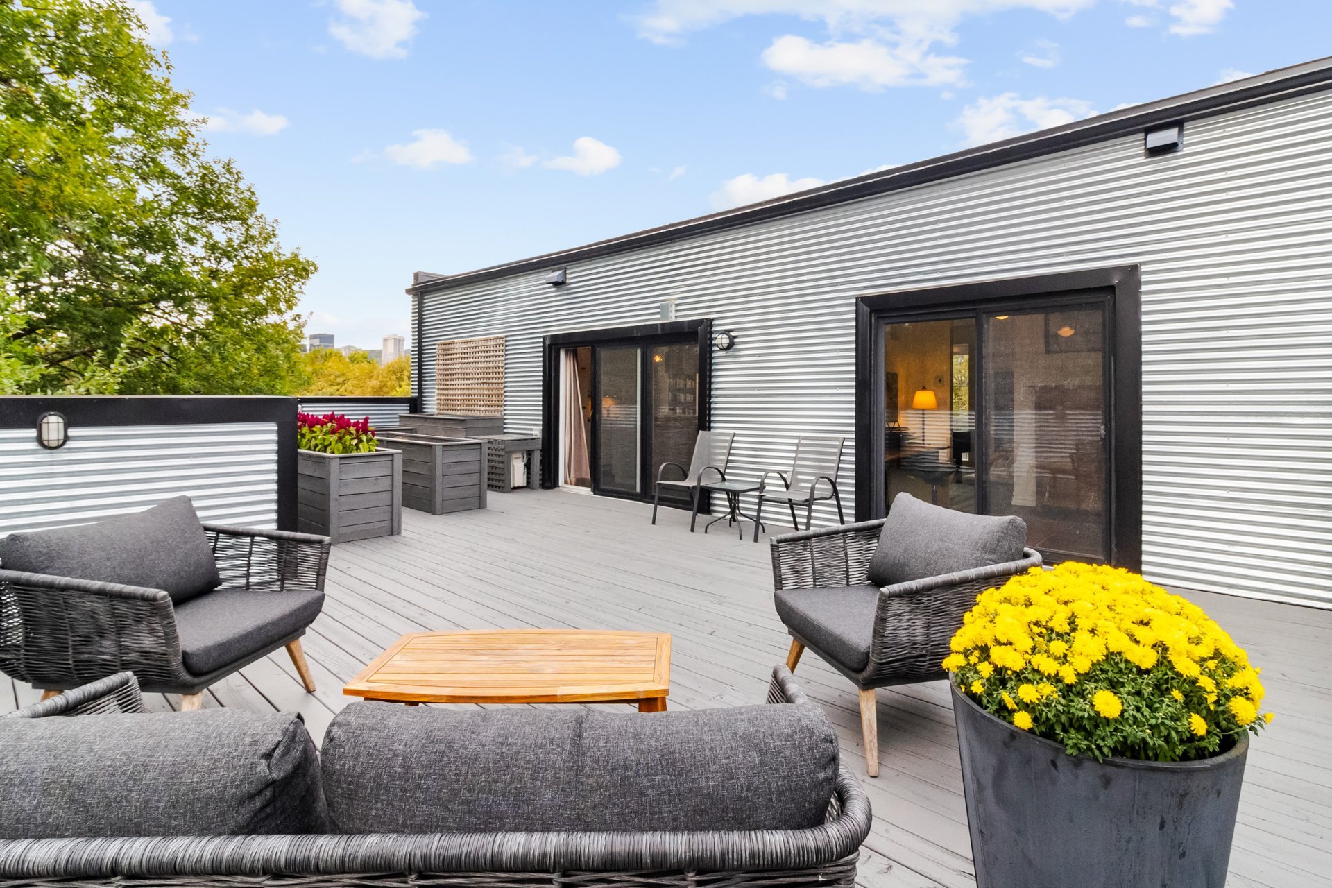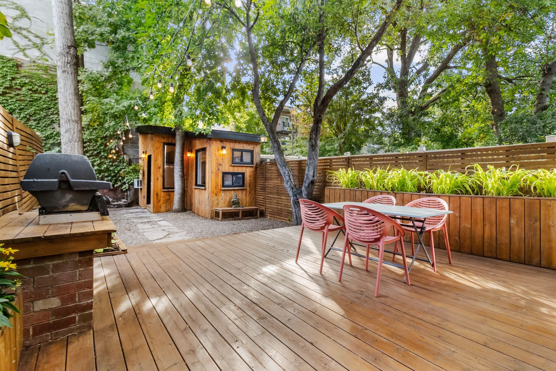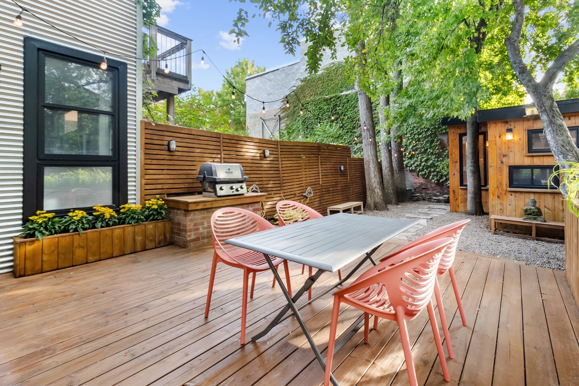 UNIQUE | Maison de ville sur 3 niveaux avec vaste cour privée et cabine. Rez-de-chaussée à aire ouverte (boudoir, salle à manger, grande cuisine avec îlot), trois chambres + bureau, deux salles de bains et une salle d'eau. Au 3e étage : salon principal avec 2e cuisine et accès à une grande terrasse privée. Cour arrière intime aménagée (terrasse de bois, petite cabine avec mezzanine). Située u coeur de Saint-Henri, à deux pas du marché Atwater, du canal de Lachine, de la piste cyclable, des cafés/restaurants, parcs et métro.