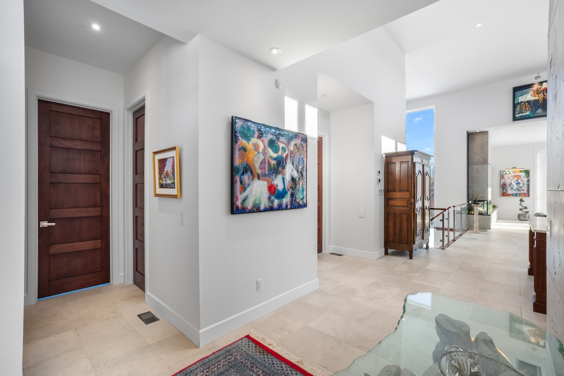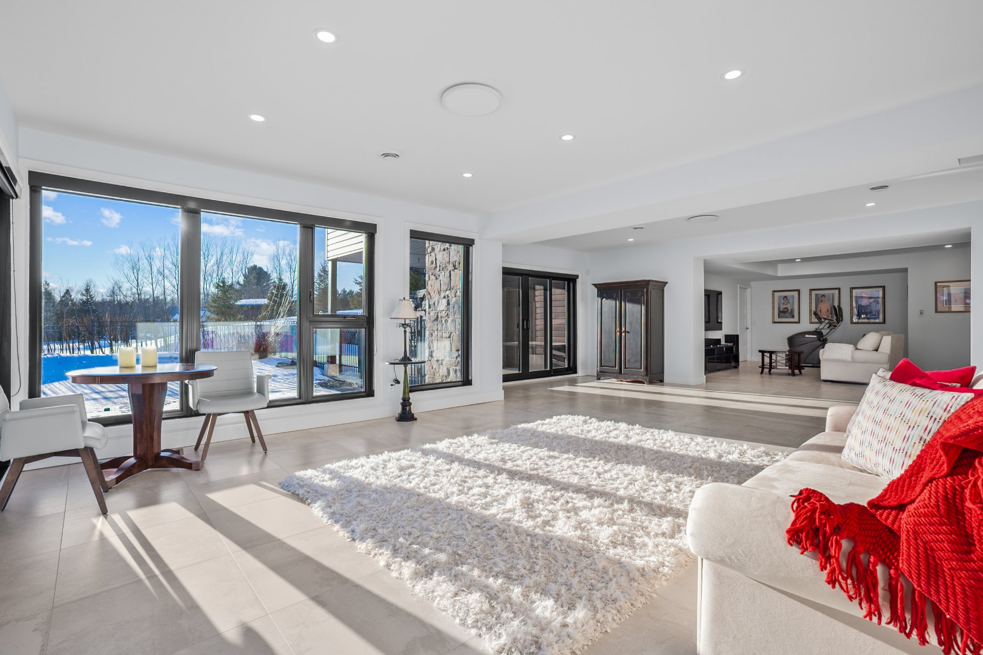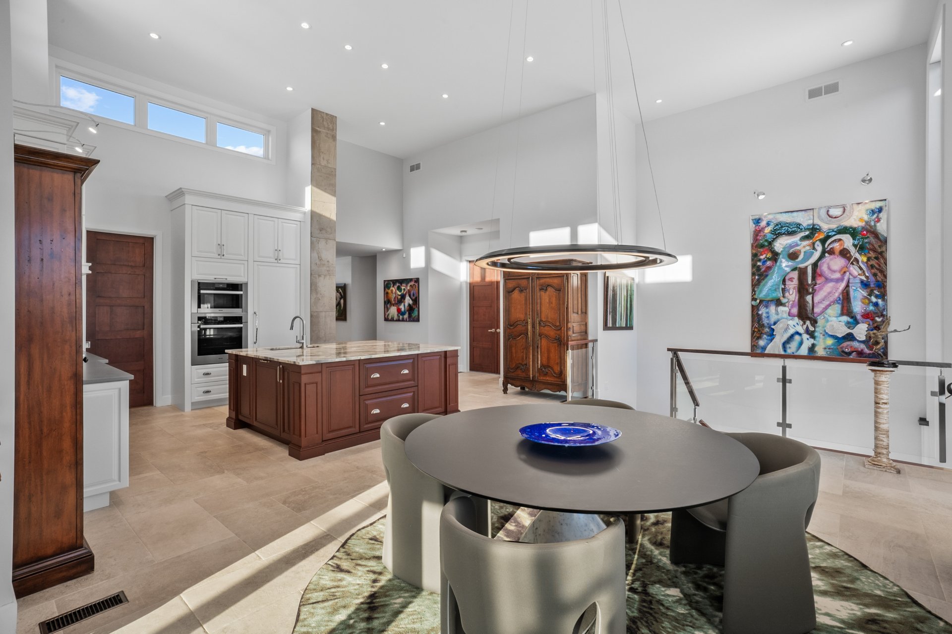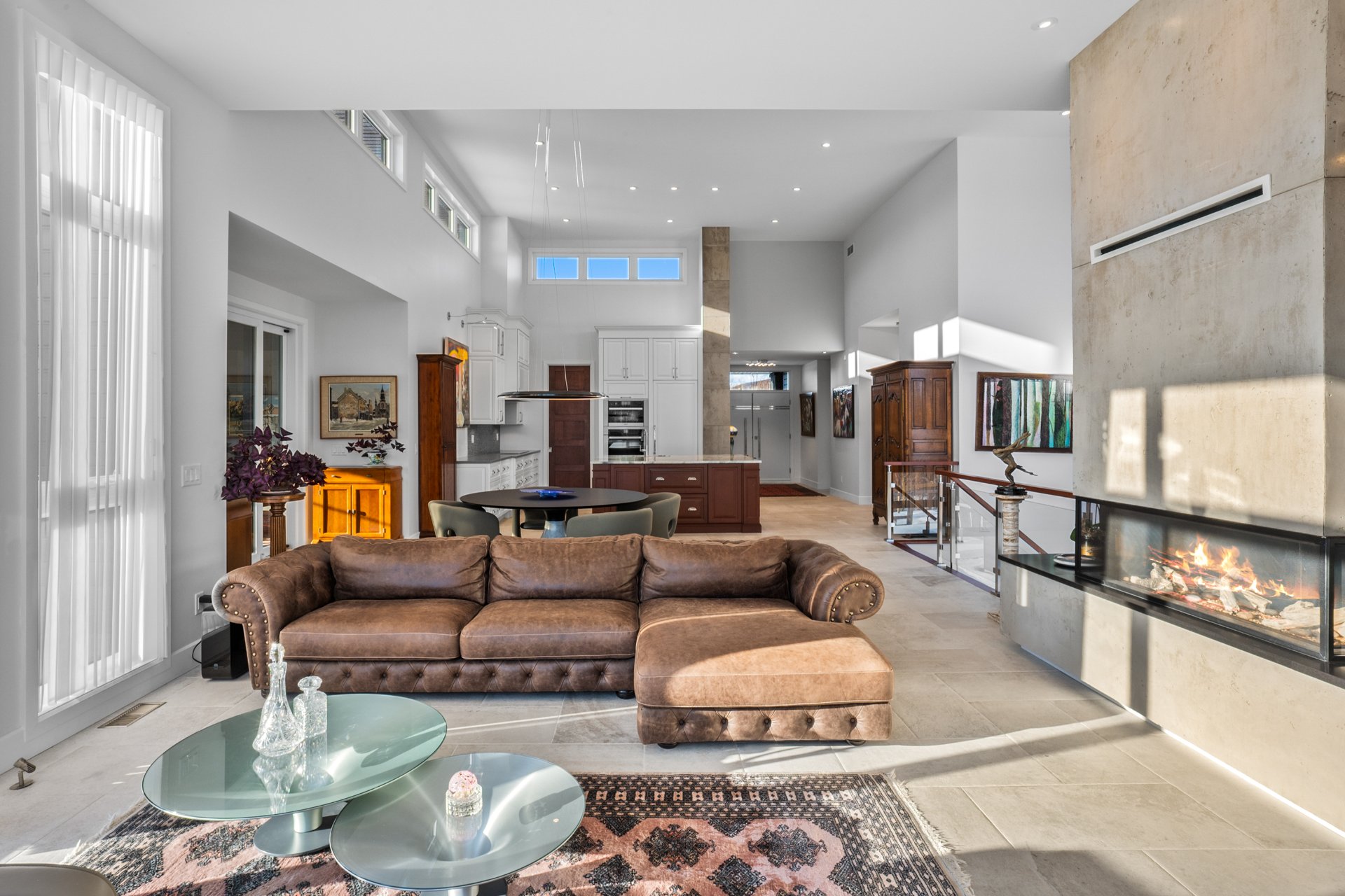 Dès l'entrée, le ton est donné : une aire de vie grandiose (plus de 3200pc habitables) baignée de lumière, sublimée par un plafond de 11 pieds au salon et un foyer au gaz créant une atmosphère chaleureuse et sophistiquée.