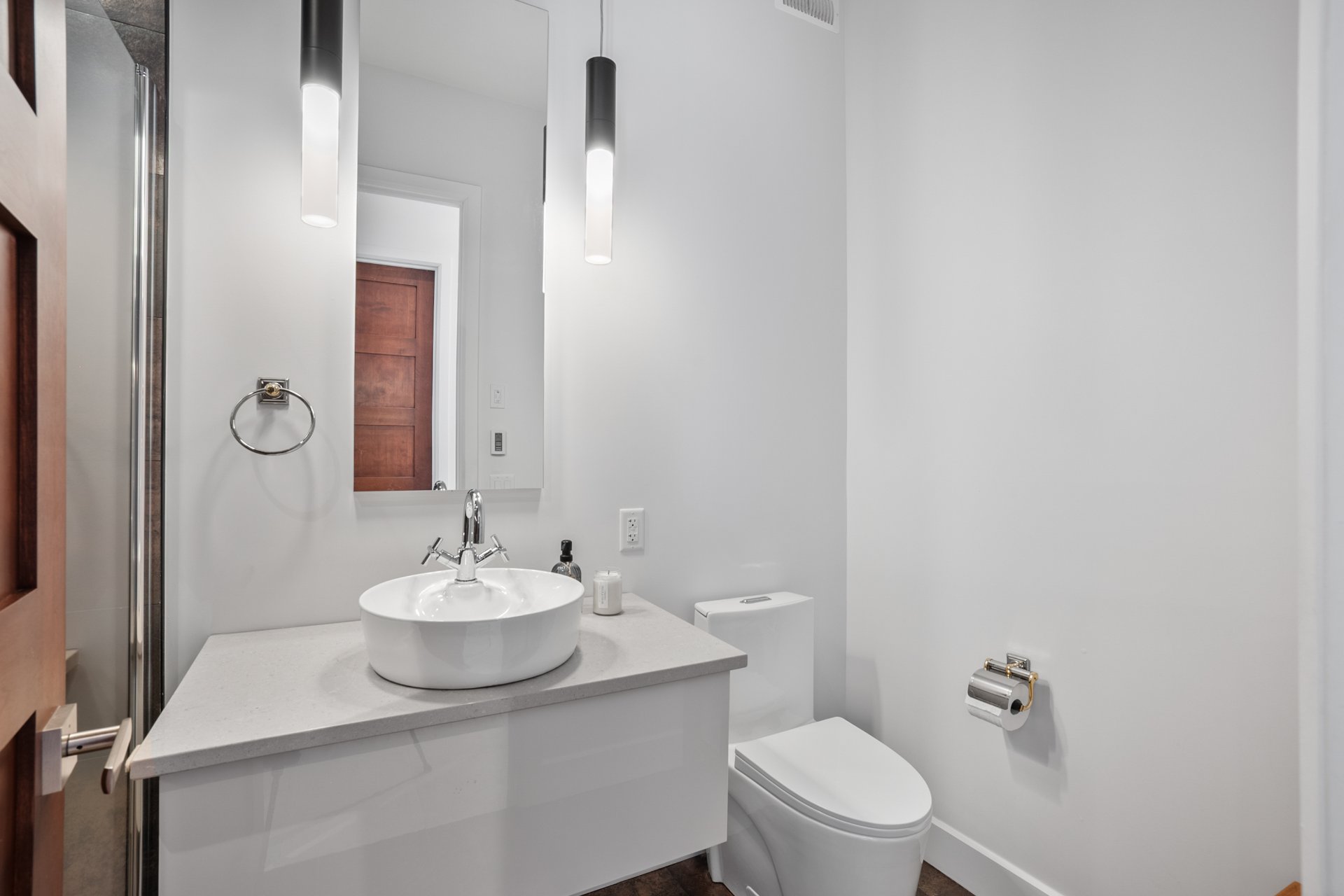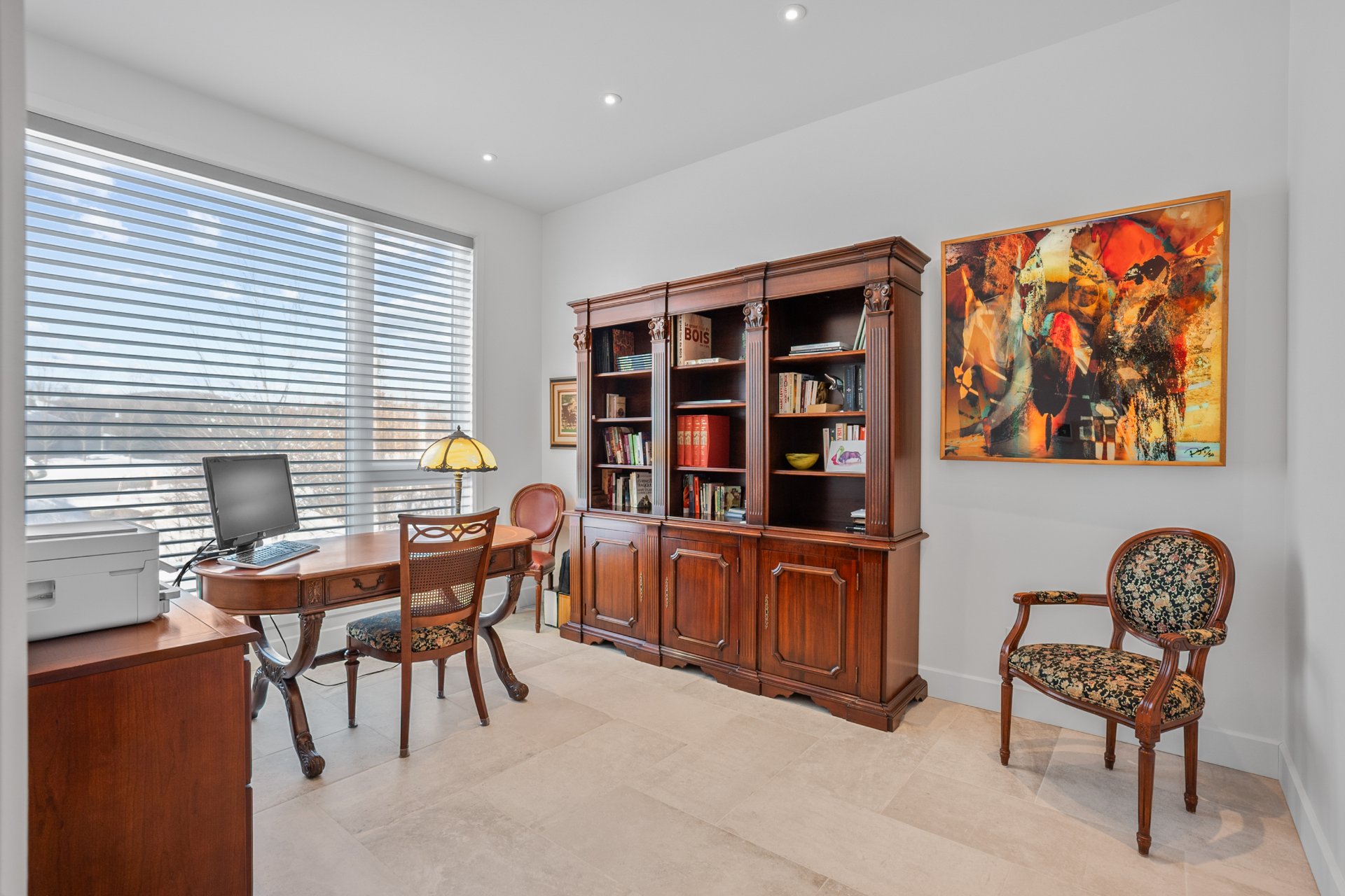 Le rez-de-chaussée propose également un bureau, une salle de bains avec douche en céramique, une salle de lavage entièrement aménagée ainsi qu'une somptueuse suite principale. Celle-ci comprend deux walk-in distincts et une salle de bains raffinée avec bain autoportant, douche en céramique et double vanité.