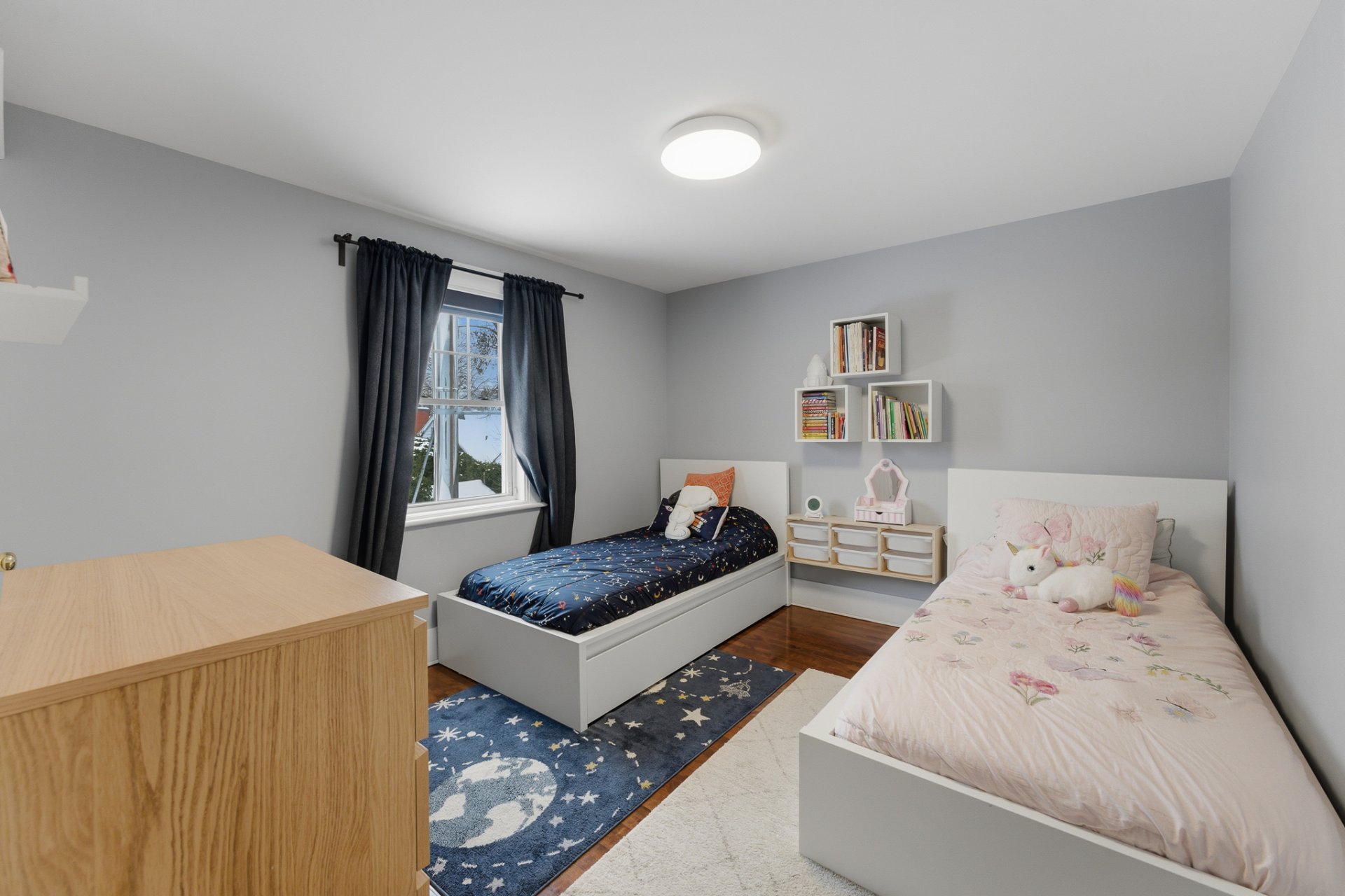 L'étage accueille trois chambres à coucher, toutes sur planchers de bois, incluant une chambre principale confortable ainsi que deux chambres parfaites pour enfants ou bureau à domicile. La salle de bain entièrement rénovée se démarque par sa superficie généreuse et son aménagement fonctionnel avec bain et douche indépendants, idéal pour répondre aux besoins d'une famille.