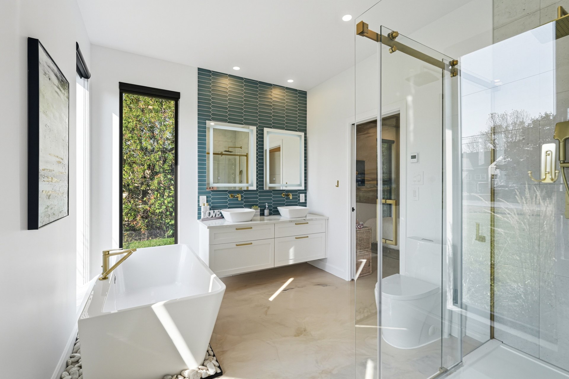 La suite principale est un véritable sanctuaire : bain autoportant, vaste walk-in et salle de bains attenante avec douche double vitrée et double vanité. Chaque chambre additionnelle se distingue par sa luminosité et son confort, chacune offrant un accès direct à l'une des salles de bain de la maison.