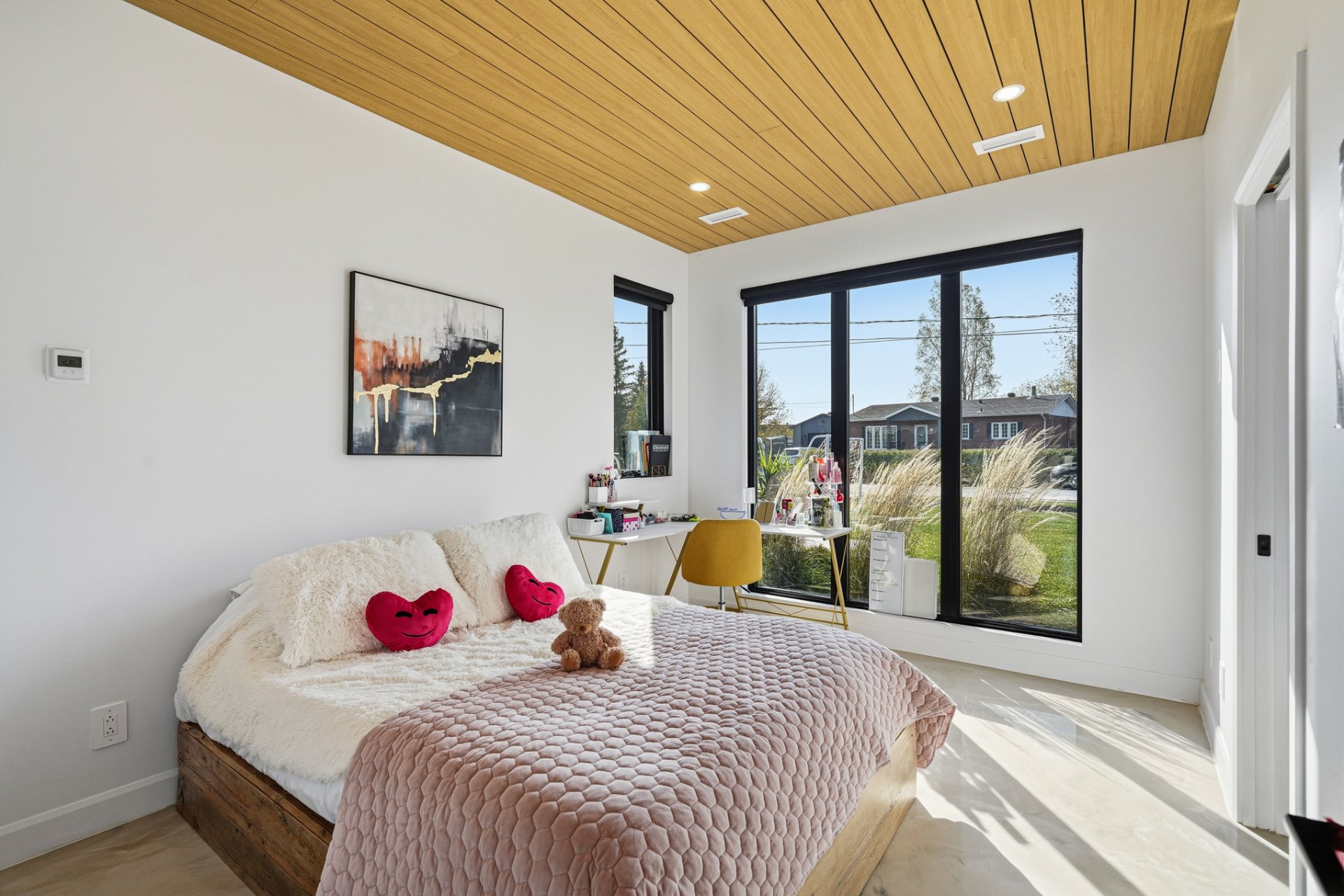 Située sur une rue paisible de Saint-Jean-sur-Richelieu, cette résidence d'architecture contemporaine, construite en 2024, incarne l'élégance et la fonctionnalité dans leurs plus belles expressions. Son impressionnante fenestration, déployée sur toutes les façades, inonde les pièces de lumière naturelle et crée une continuité visuelle remarquable entre l'intérieur et l'extérieur. Peu importe l'endroit où l'on se trouve dans la maison, la vue sur la cour, magnifiquement aménagée, s'impose comme un élément central du décor.