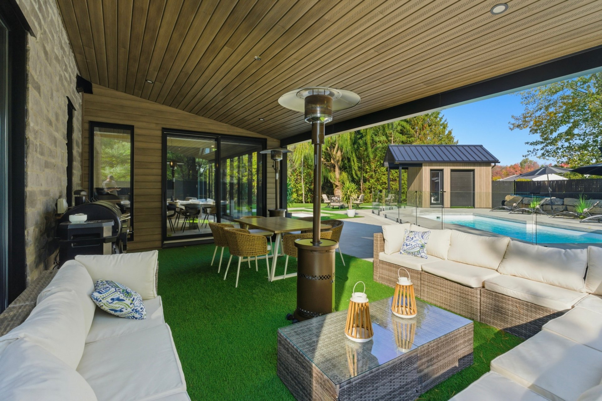 À l'extérieur, la cour est une véritable oasis de détente. Entièrement clôturée, elle offre une intimité incomparable, sans aucun vis-à-vis. On y retrouve une piscine creusée et chauffée au sel, un spa encastré, un coin feu et une superbe terrasse couverte pour prolonger les soirées d'été. Chaque détail a été pensé pour conjuguer confort, esthétisme et bien-être.