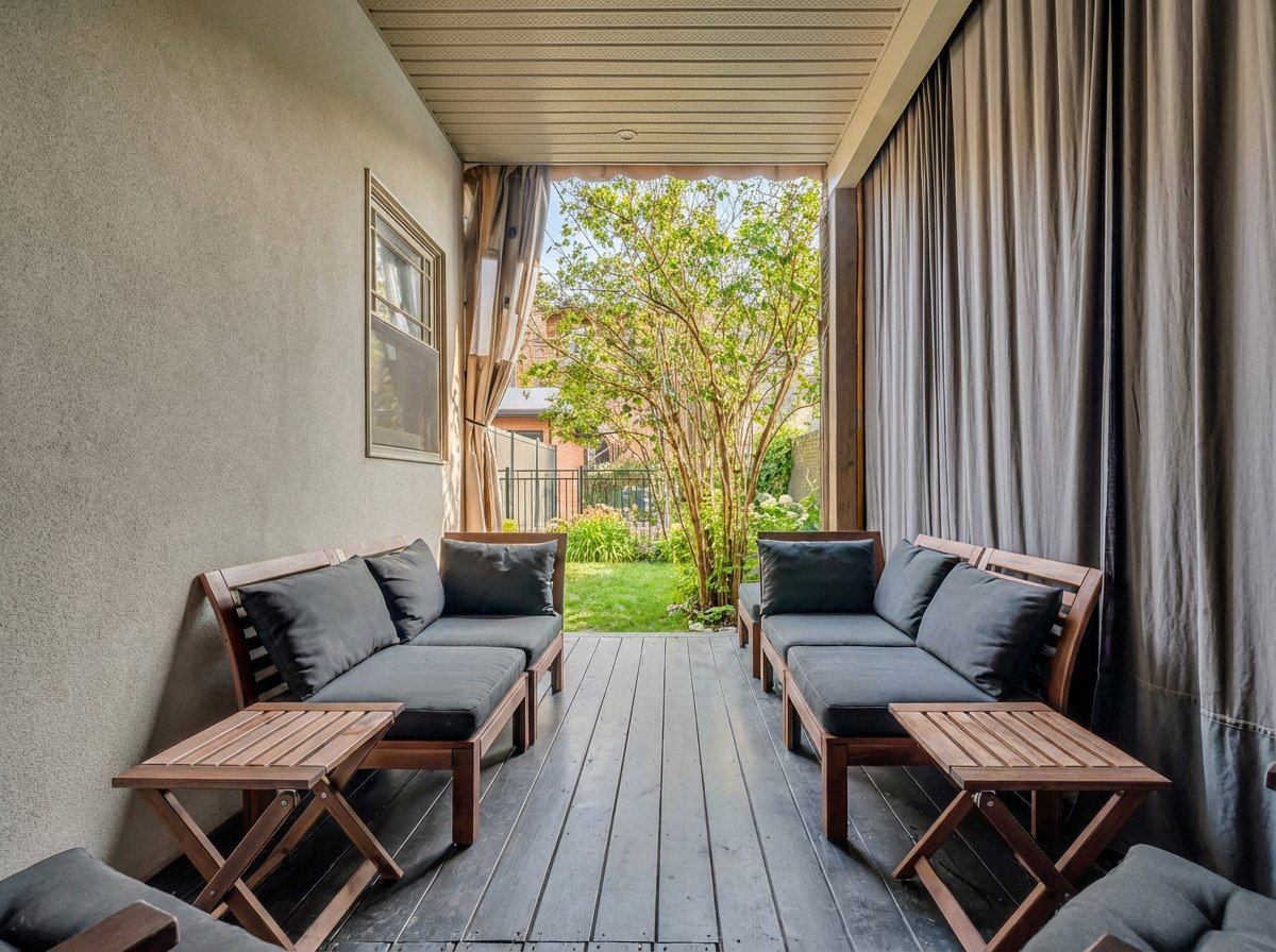L'immeuble a fait l'objet d'un entretien méticuleux et de nombreuses améliorations au fil des ans : drain de fondation, remplacement des portes et fenêtres, construction du garage et entretien général soigné. La cour arrière, intime et joliment aménagée, abrite une piscine pour des moments de détente en toute tranquillité. Le garage double, rarissime dans ce secteur, offre un atout majeur pour les occupants.