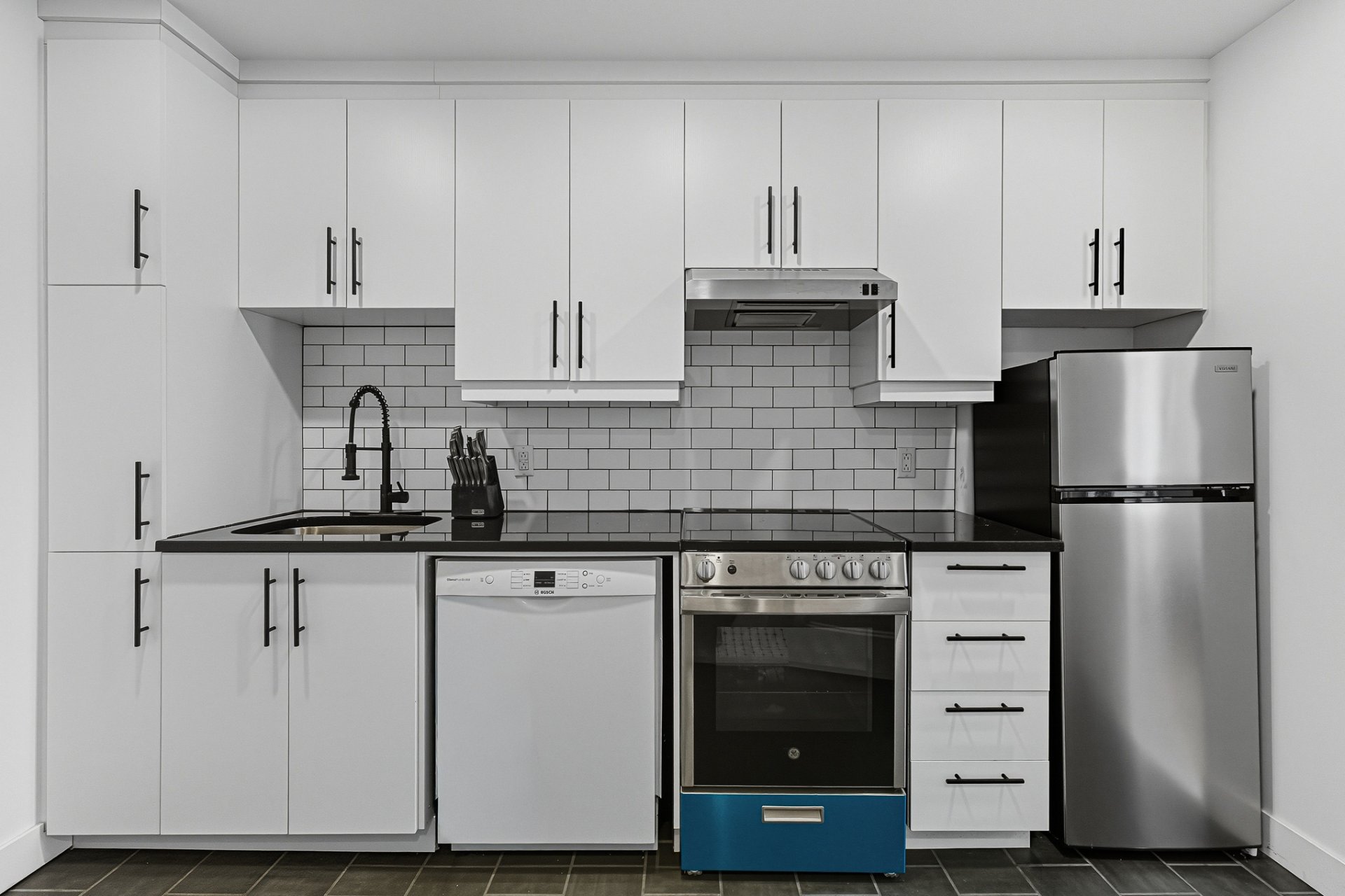 - Réfrigérateur, cuisinière, lave-vaisselle, laveuse, sécheuse (dans chaque appartement)