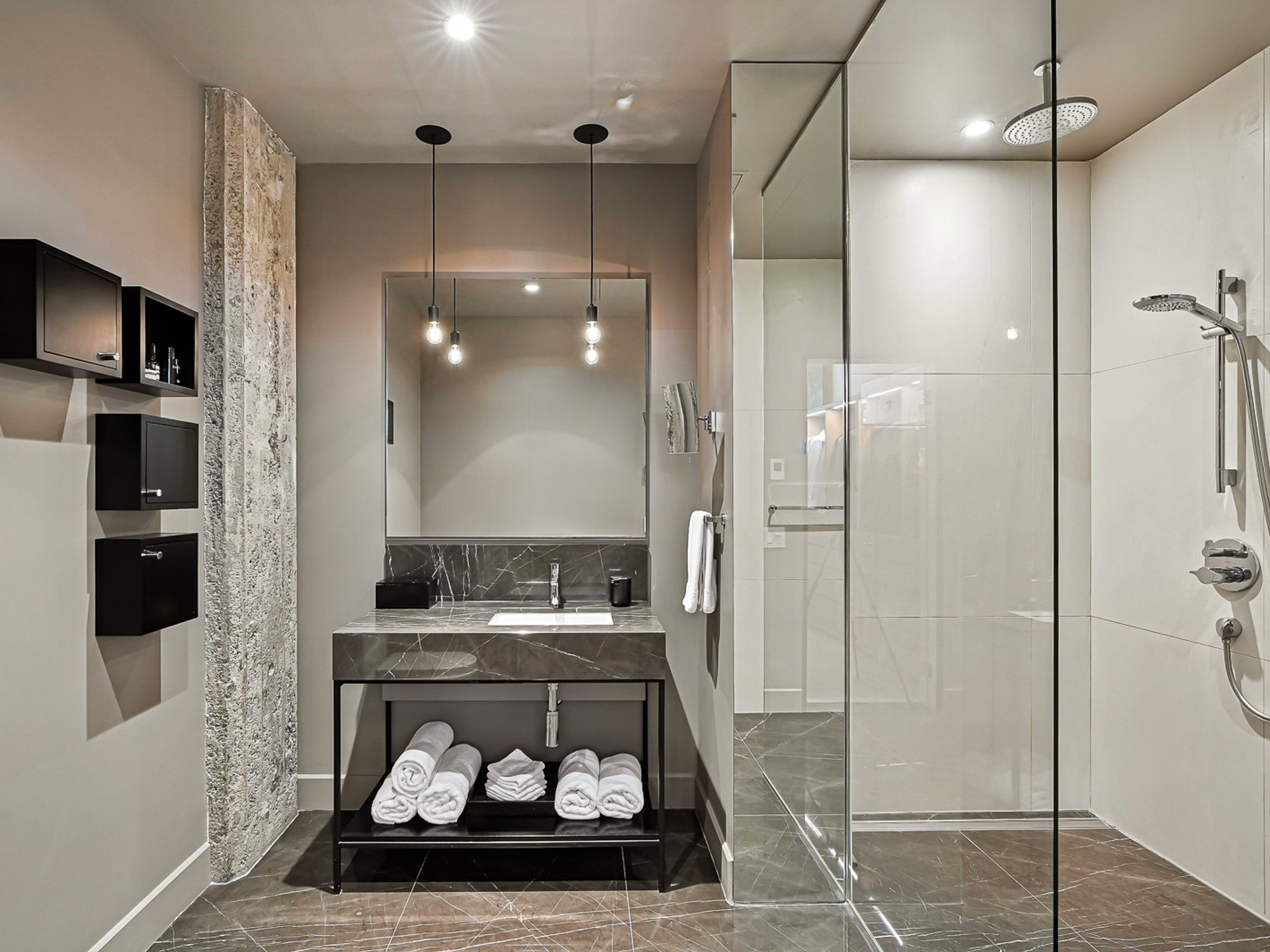 Pour les acheteurs les plus exigeants : deux unités réunies pour offrir une propriété rare et exceptionnelle, digne de Berlin ou du Tribeca new-yorkais. Planchers de béton poli, hauts plafonds et grandes fenêtres de style loft orientées à l'ouest posent le décor. Le plan raffiné comprend une cuisine contemporaine épurée, des salles de bains luxueuses et de nombreux rangements sur mesure, dont un dressing de rêve. Les chambres sont situées aux extrémités pour une parfaite intimité. Emplacement idéal dans le dynamique Quartier international, pour un mode de vie européen où tout se fait à pied. Garage inclus.