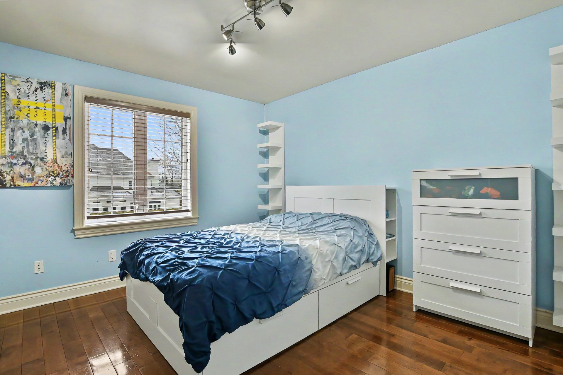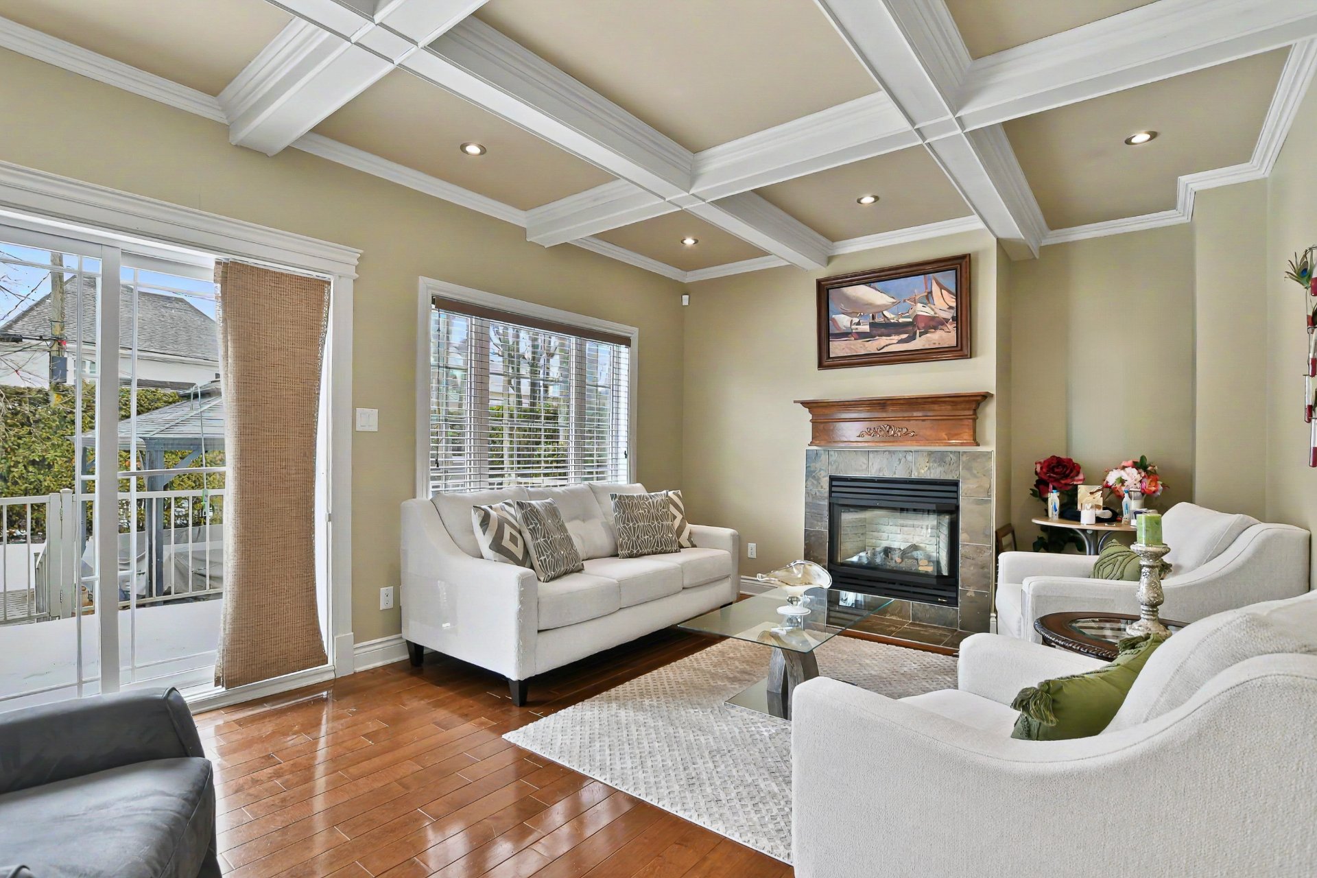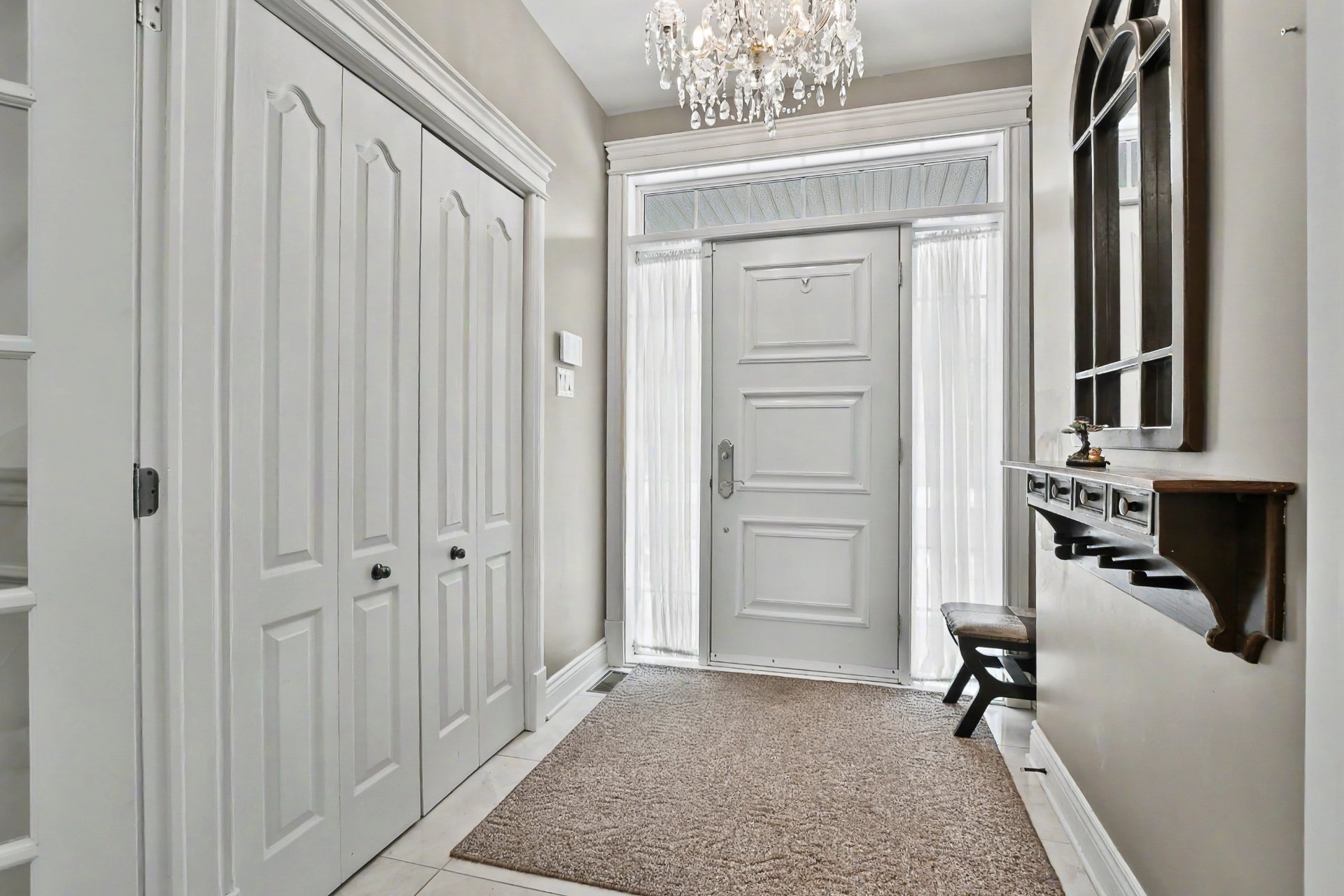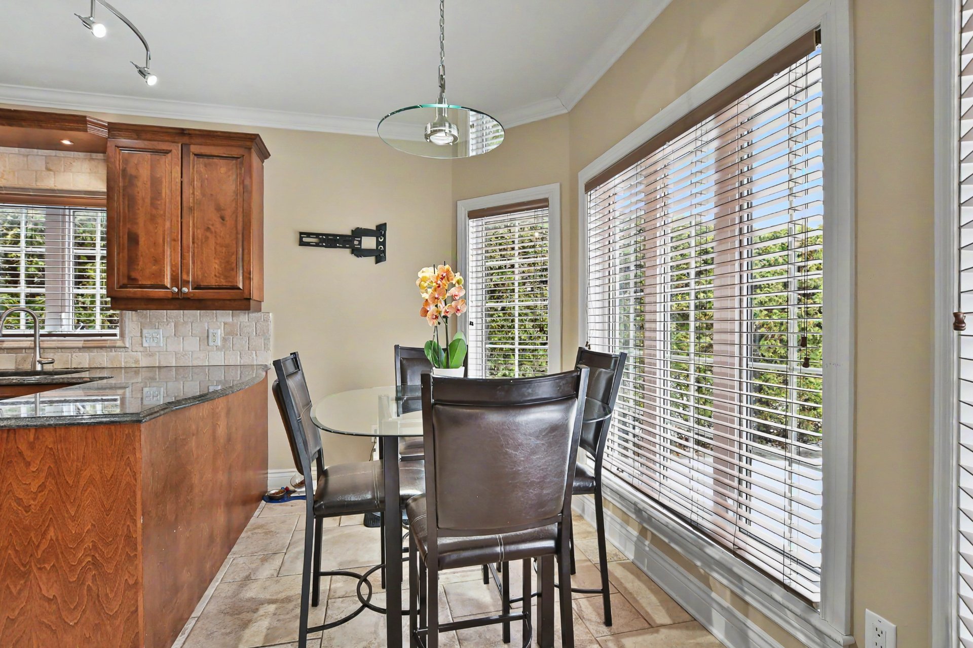 La cuisine propose de riches armoires de bois, des comptoirs de granit et une céramique au goût du jour, ouverte sur une salle à manger lumineuse. Le salon se distingue par son plafond à caissons et son foyer au gaz, créant une atmosphère chaleureuse et sophistiquée. Une salle d'eau rénovée avec espace laveuse-sécheuse complète ce niveau.