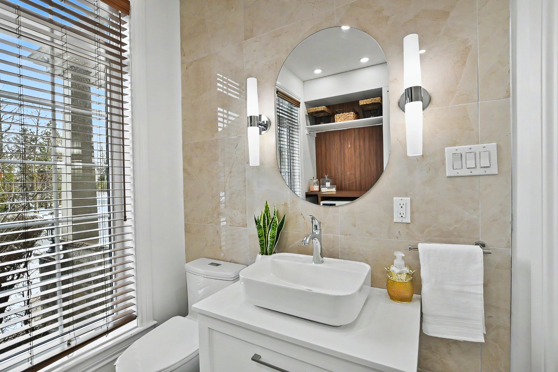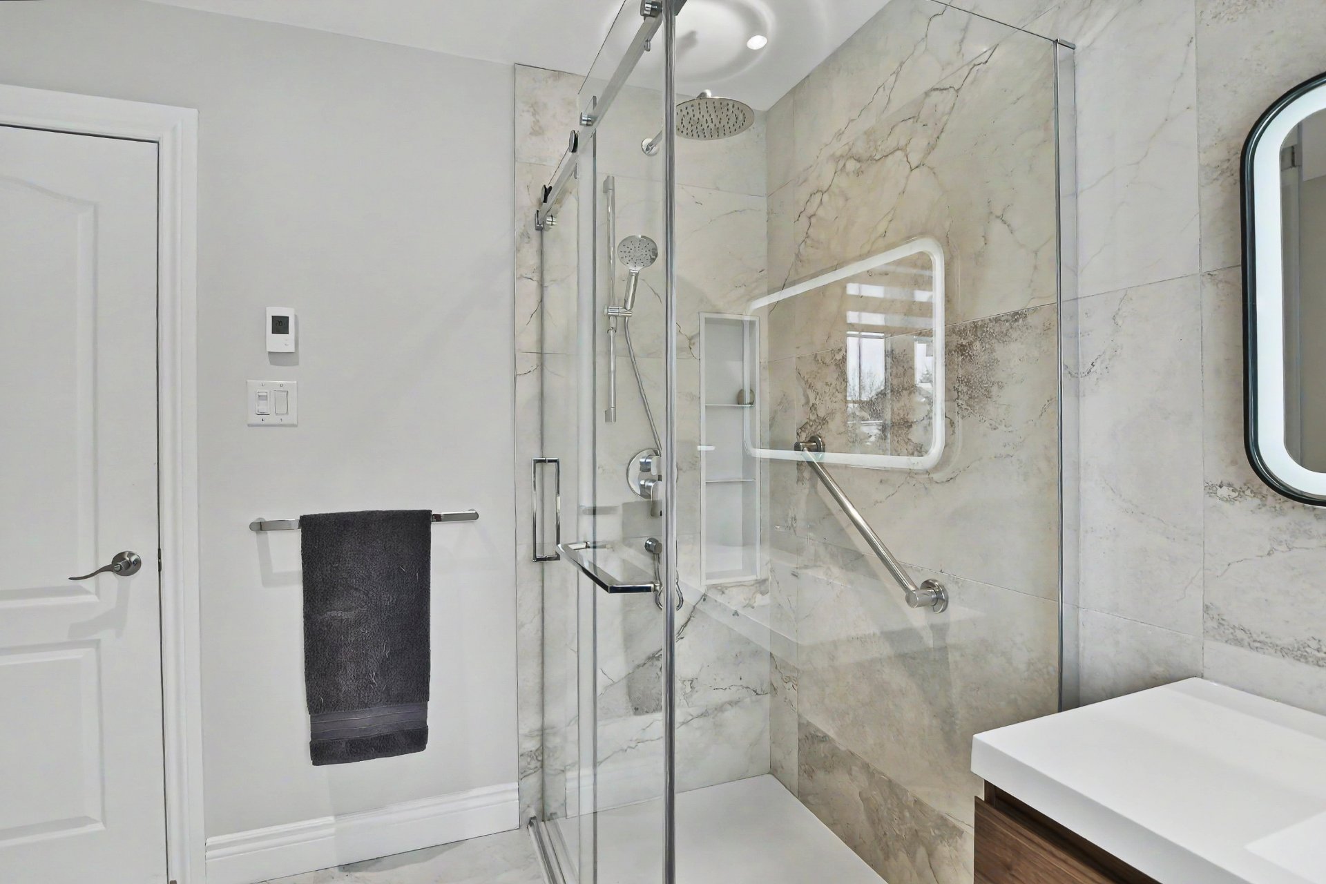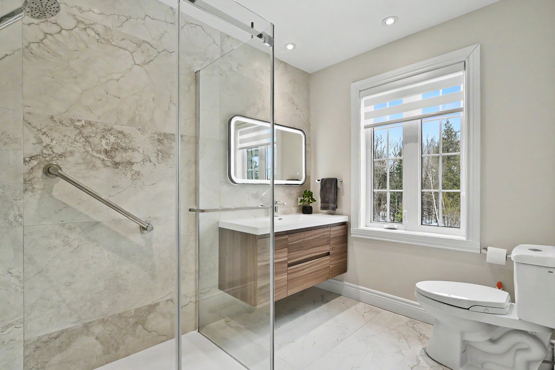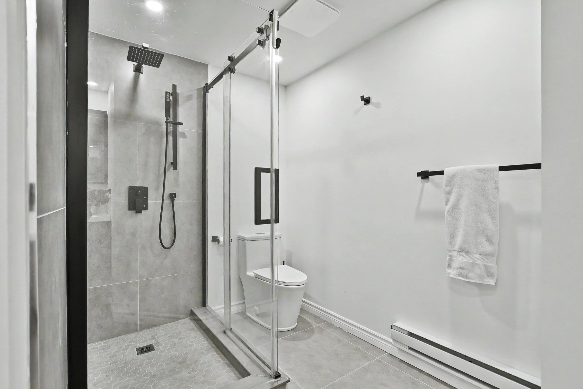Deux salles de bain entièrement rénovées avec planchers chauffants procurent une expérience agréable, mariant design moderne et confort.