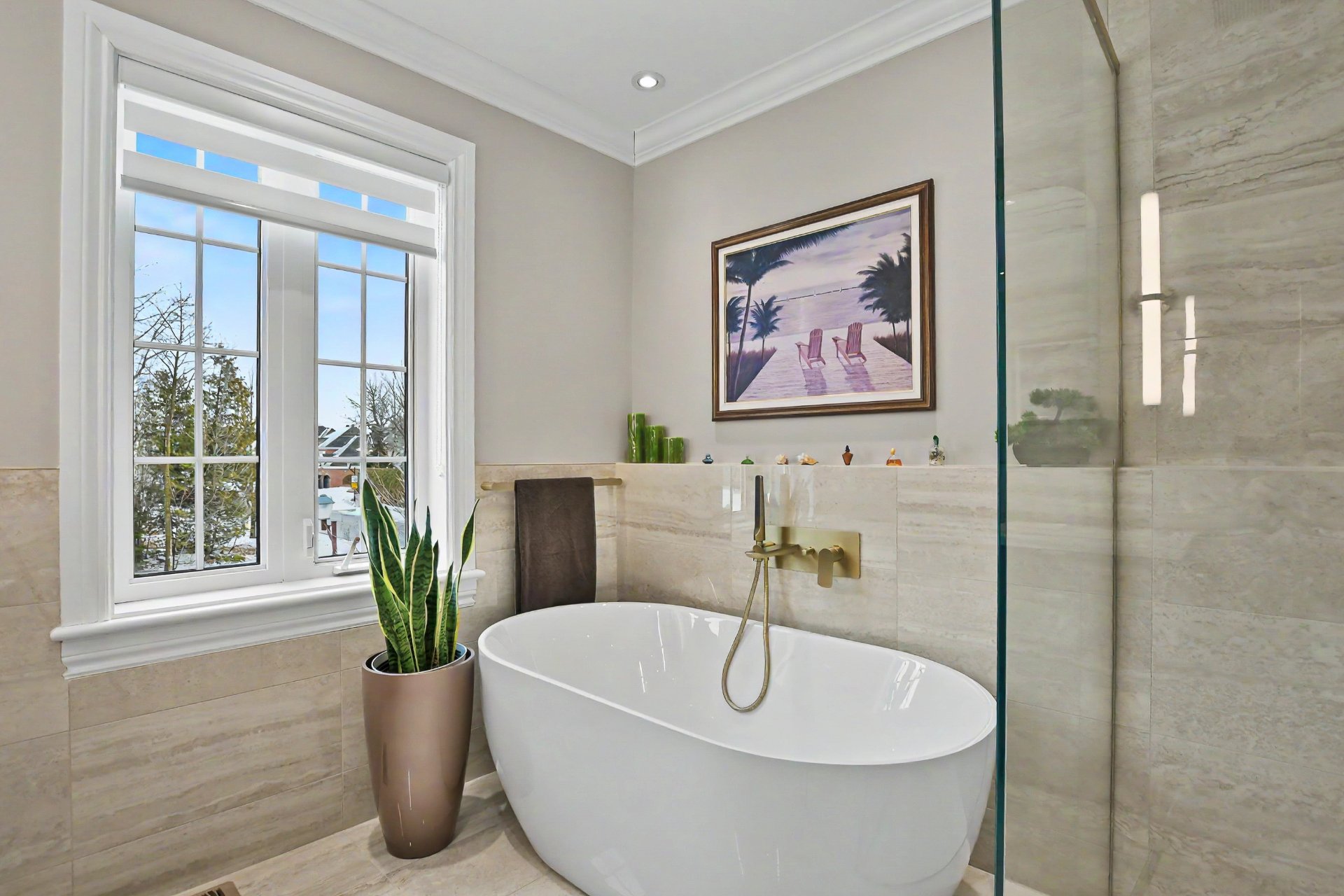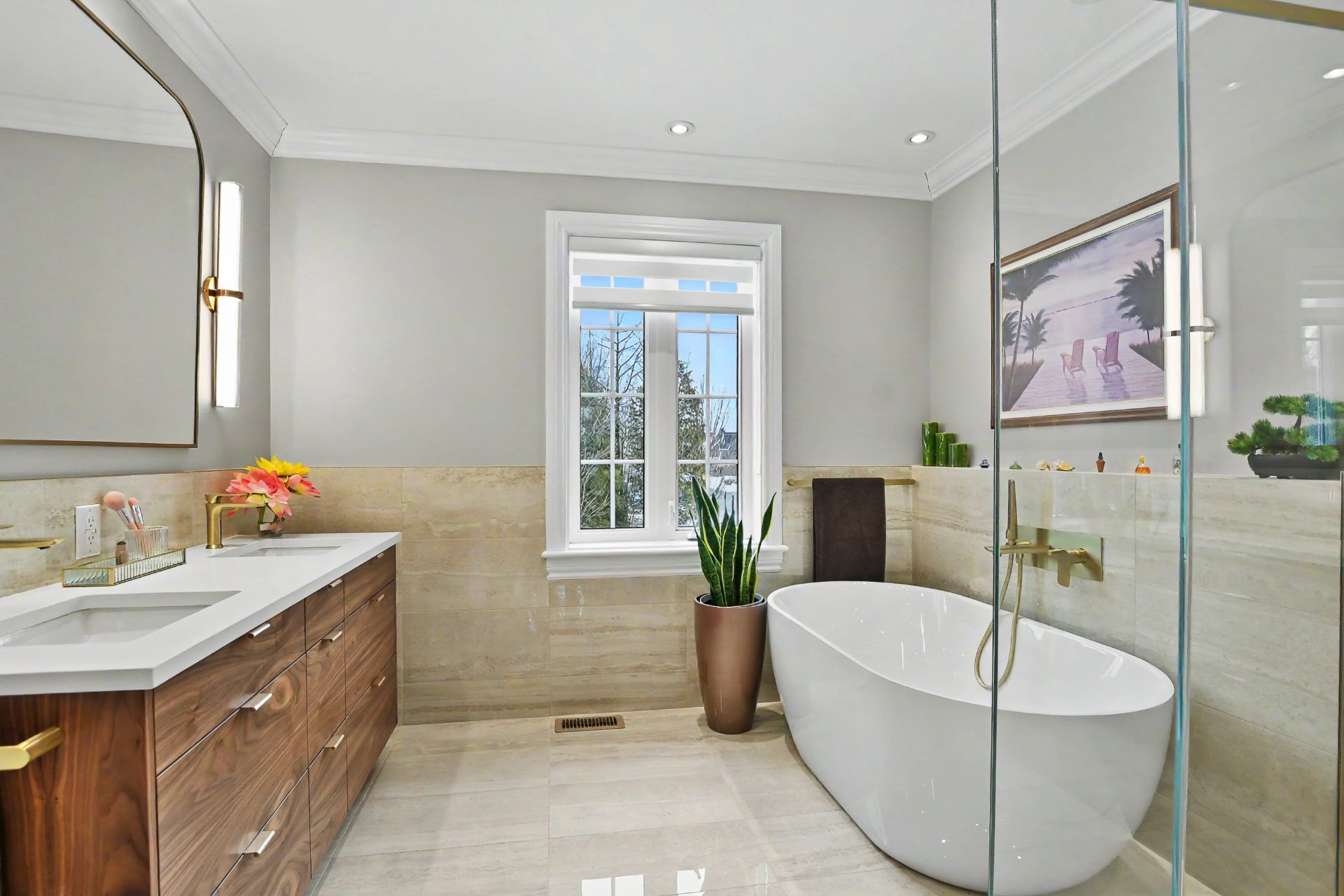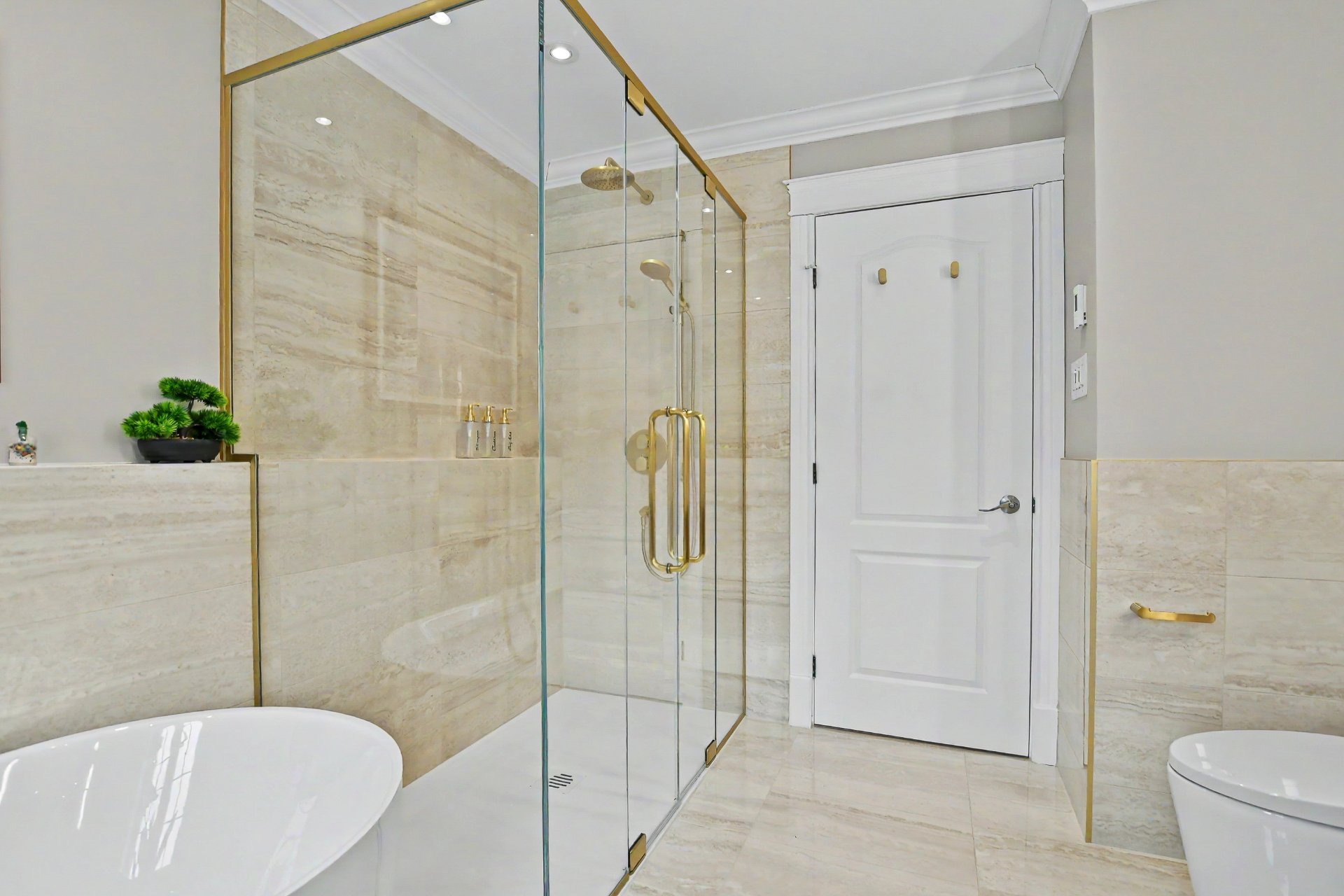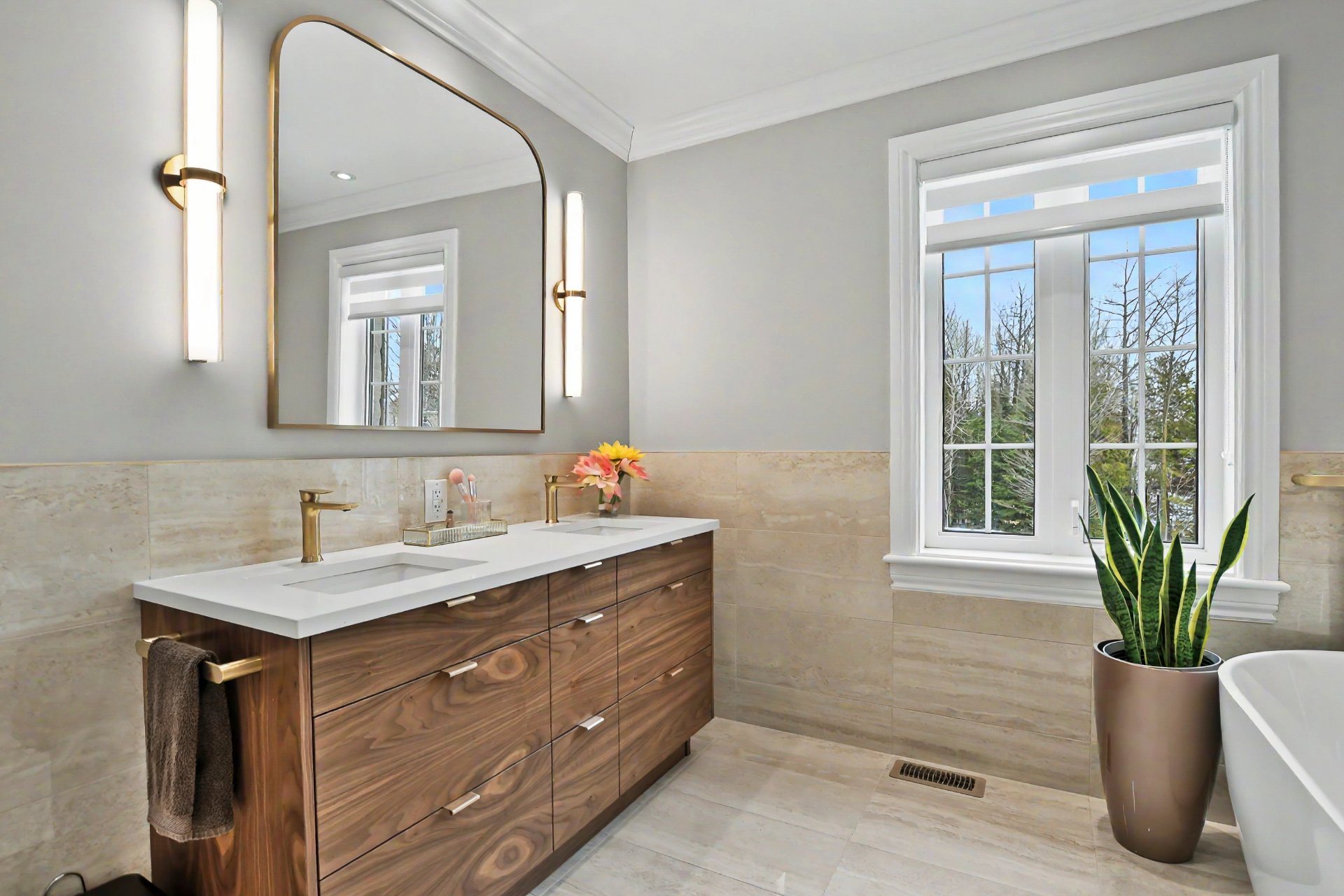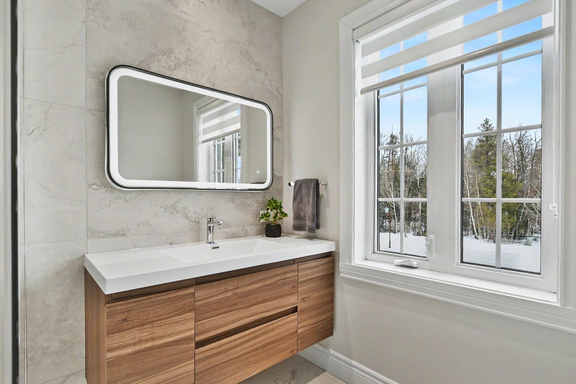 Deux salles de bain entièrement rénovées avec planchers chauffants procurent une expérience agréable, mariant design moderne et confort.