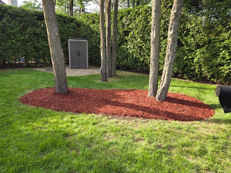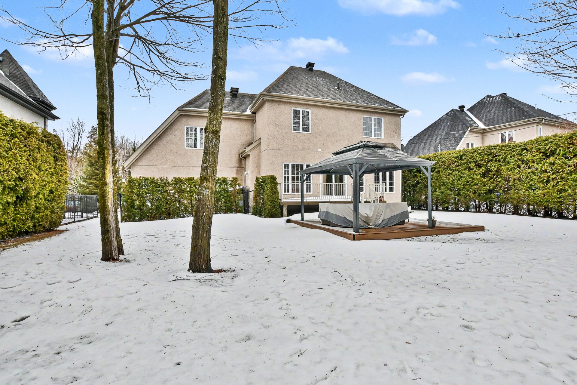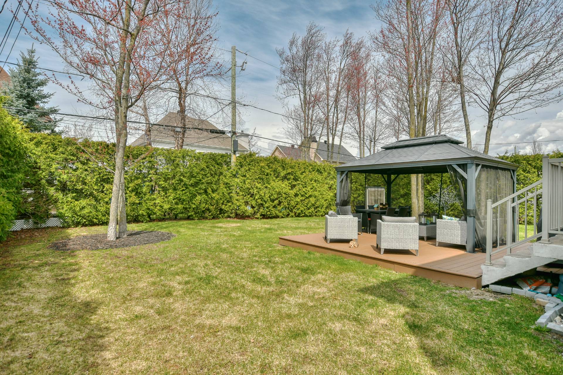 La cour arrière constitue un véritable havre de paix, bordée de haies de cèdres matures assurant une belle intimité.