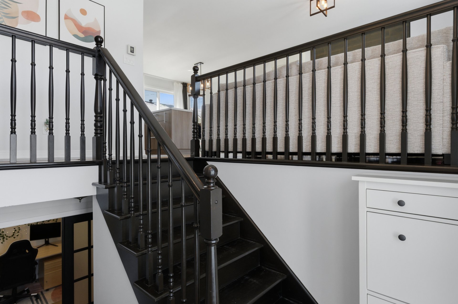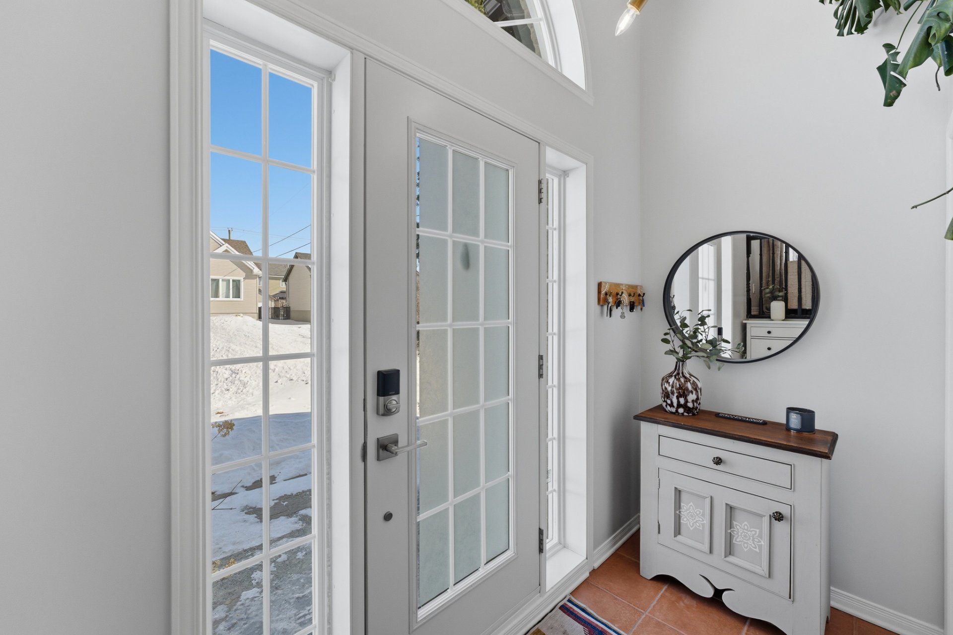 - Hall d'entrée de type split, lumineux, avec plancher en céramique offrant un espace pratique et accueillant.