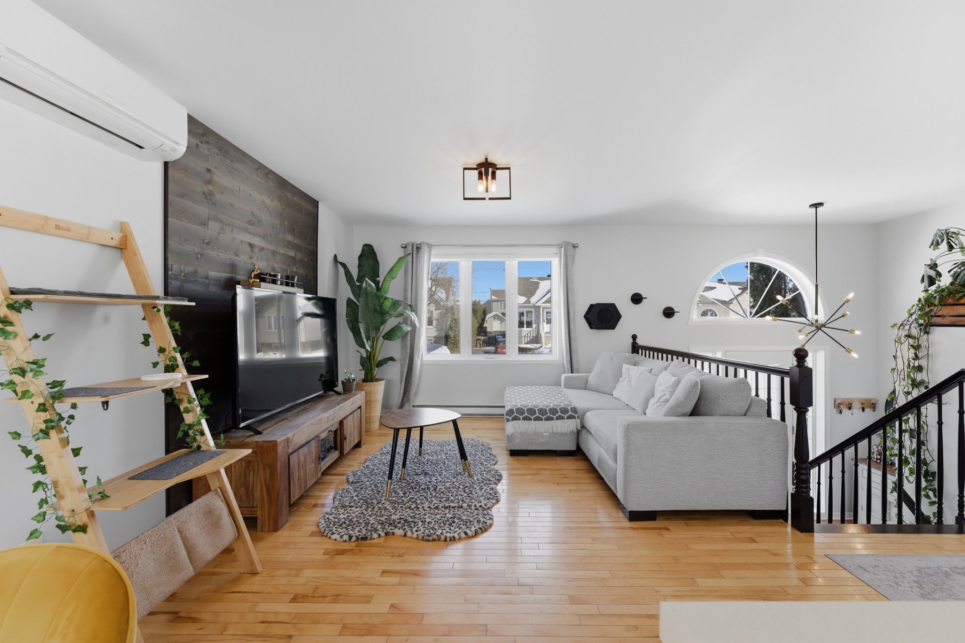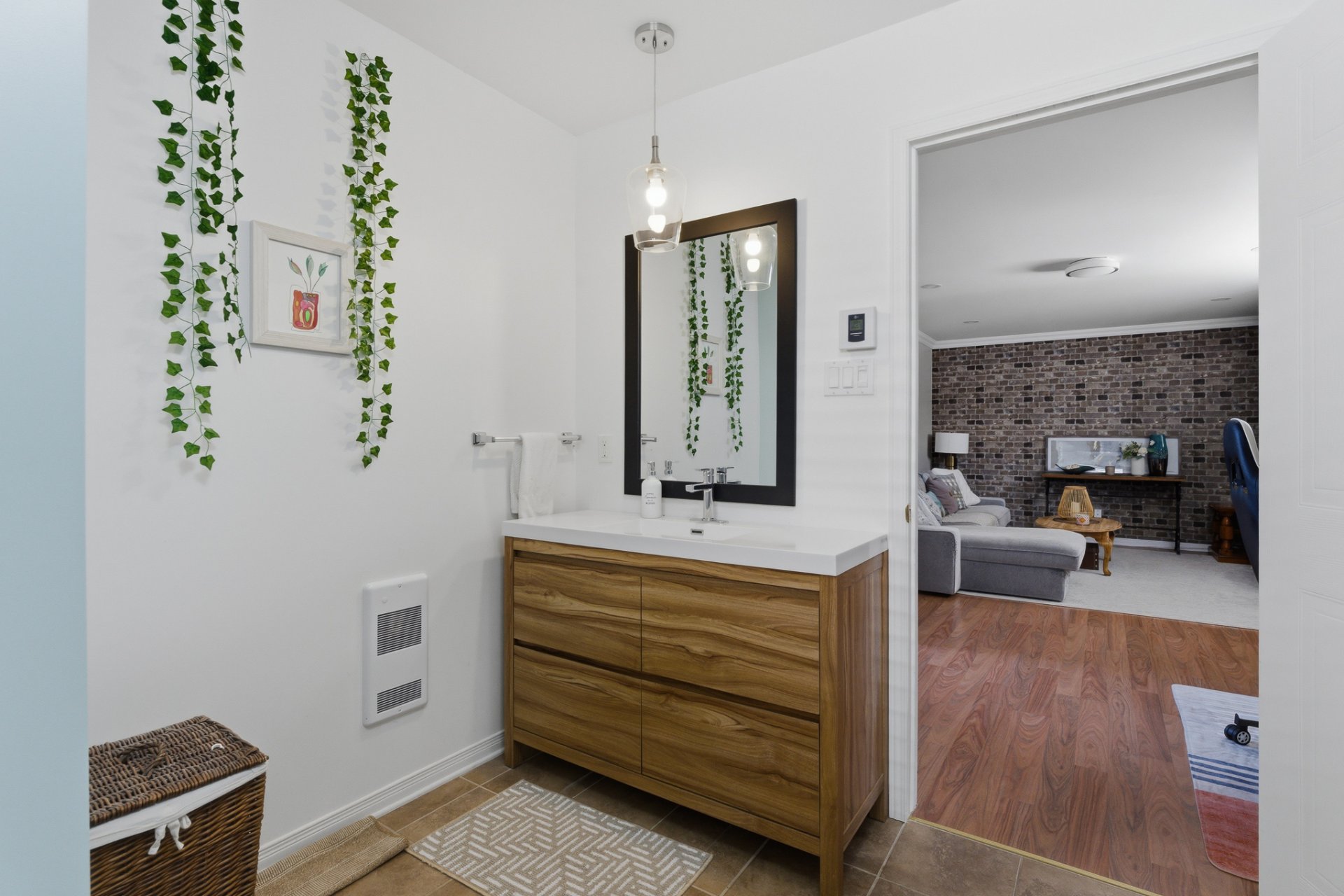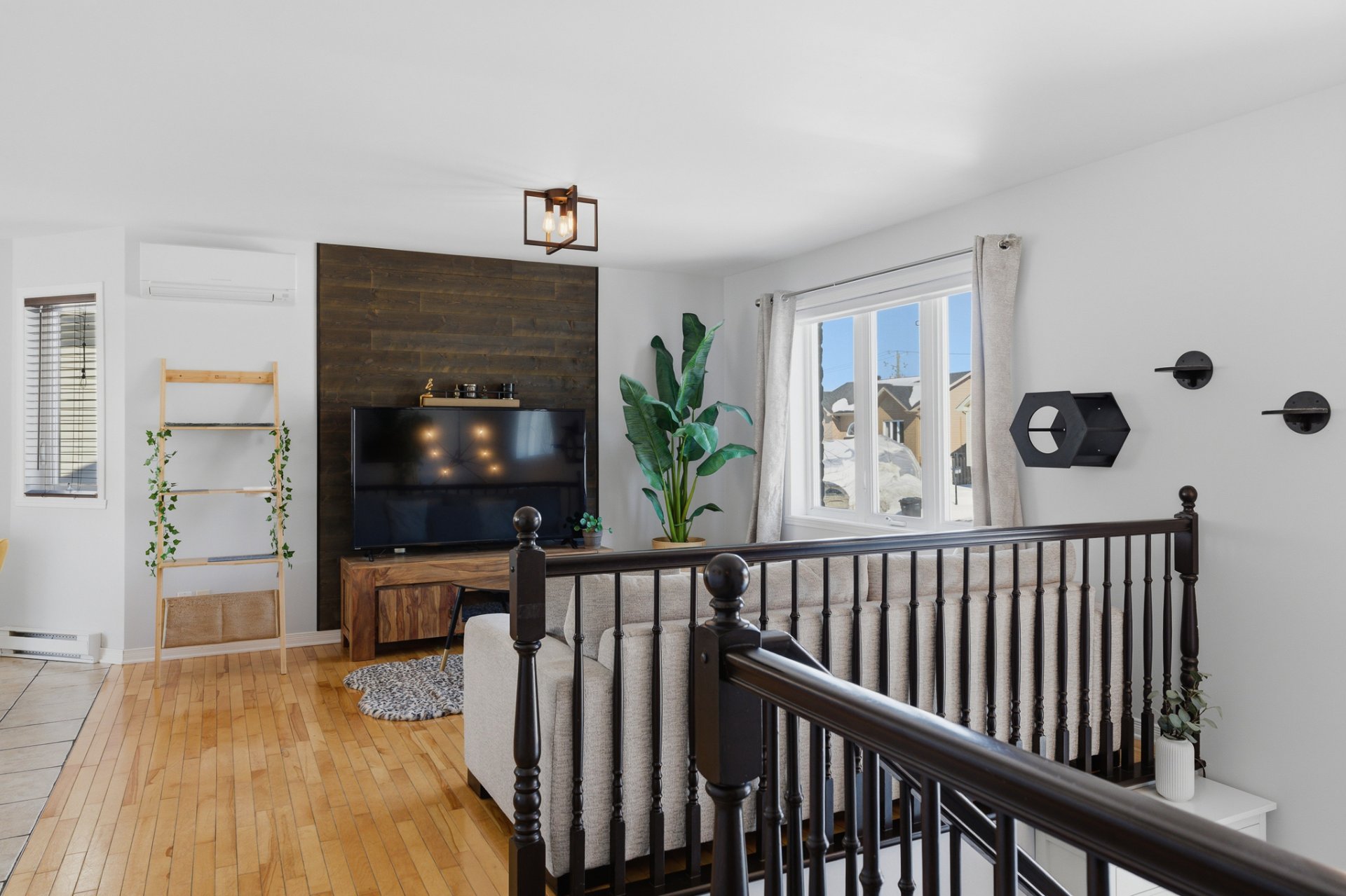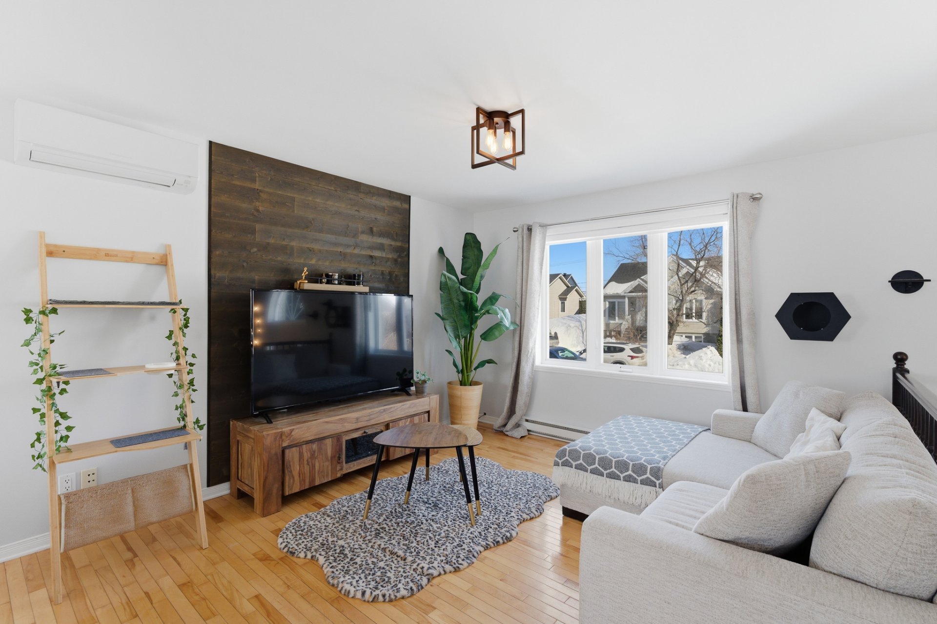 - Salon agrémenté d'un élégant mur décoratif.